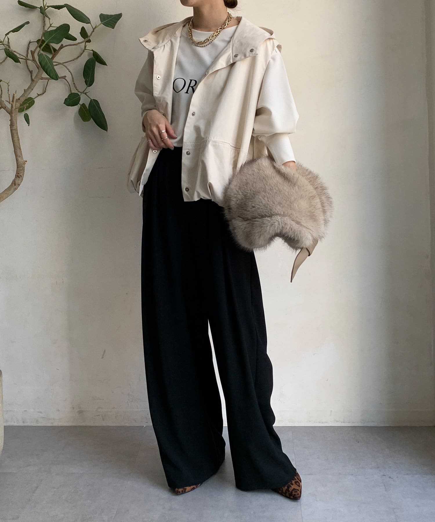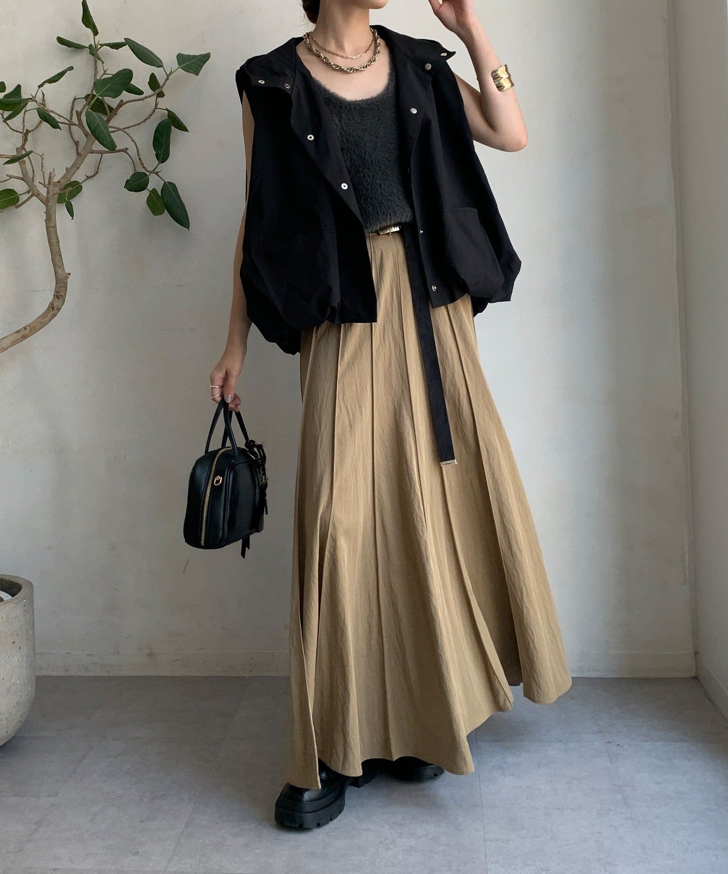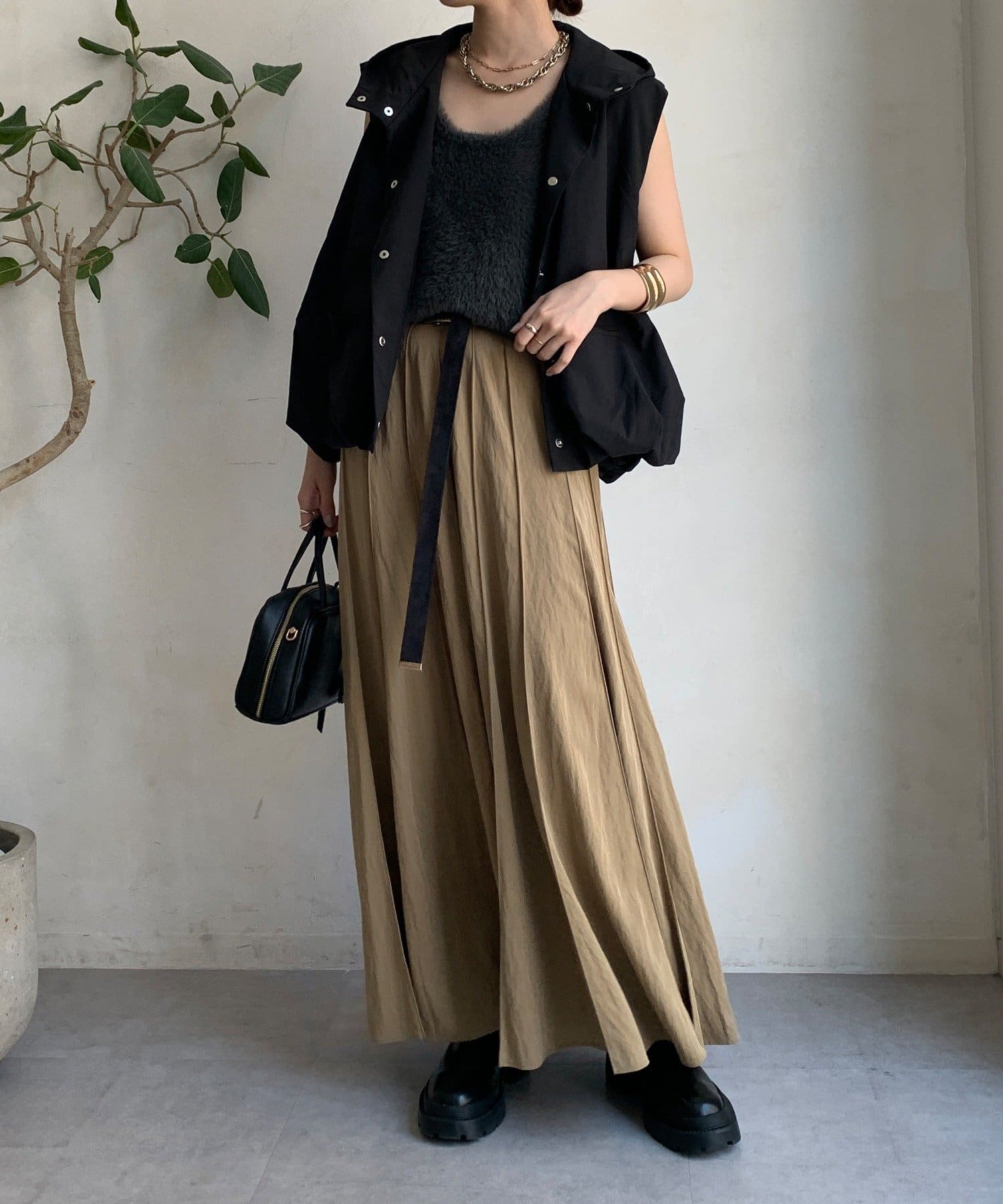 ノースリーブデザインなので、様々なアイテムとのレイヤードを楽しめます。