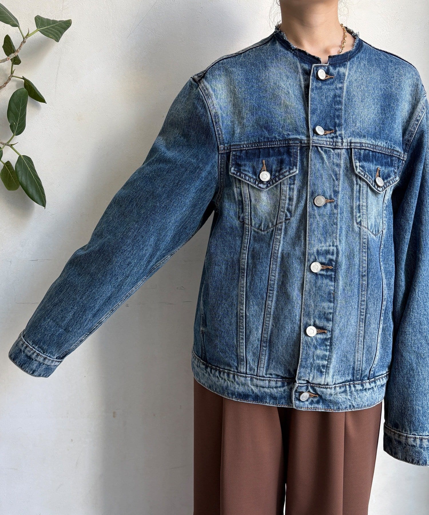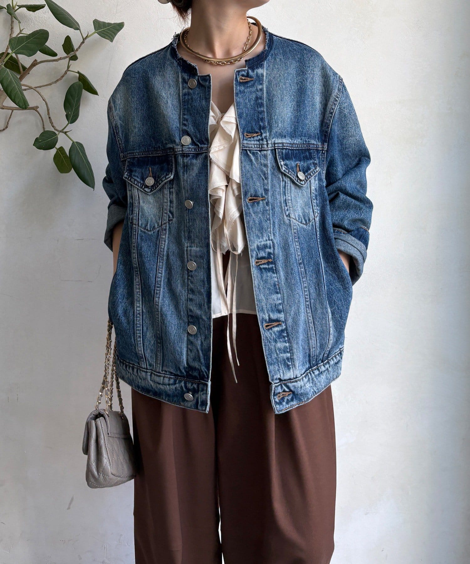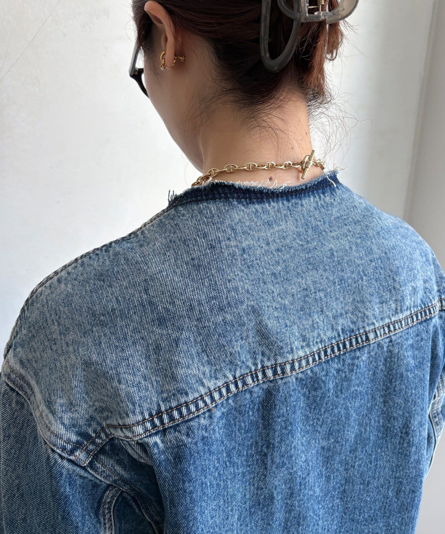 DOUDOU(ドゥドゥ) 【WEB限定】ノーカラーデニムジャケット