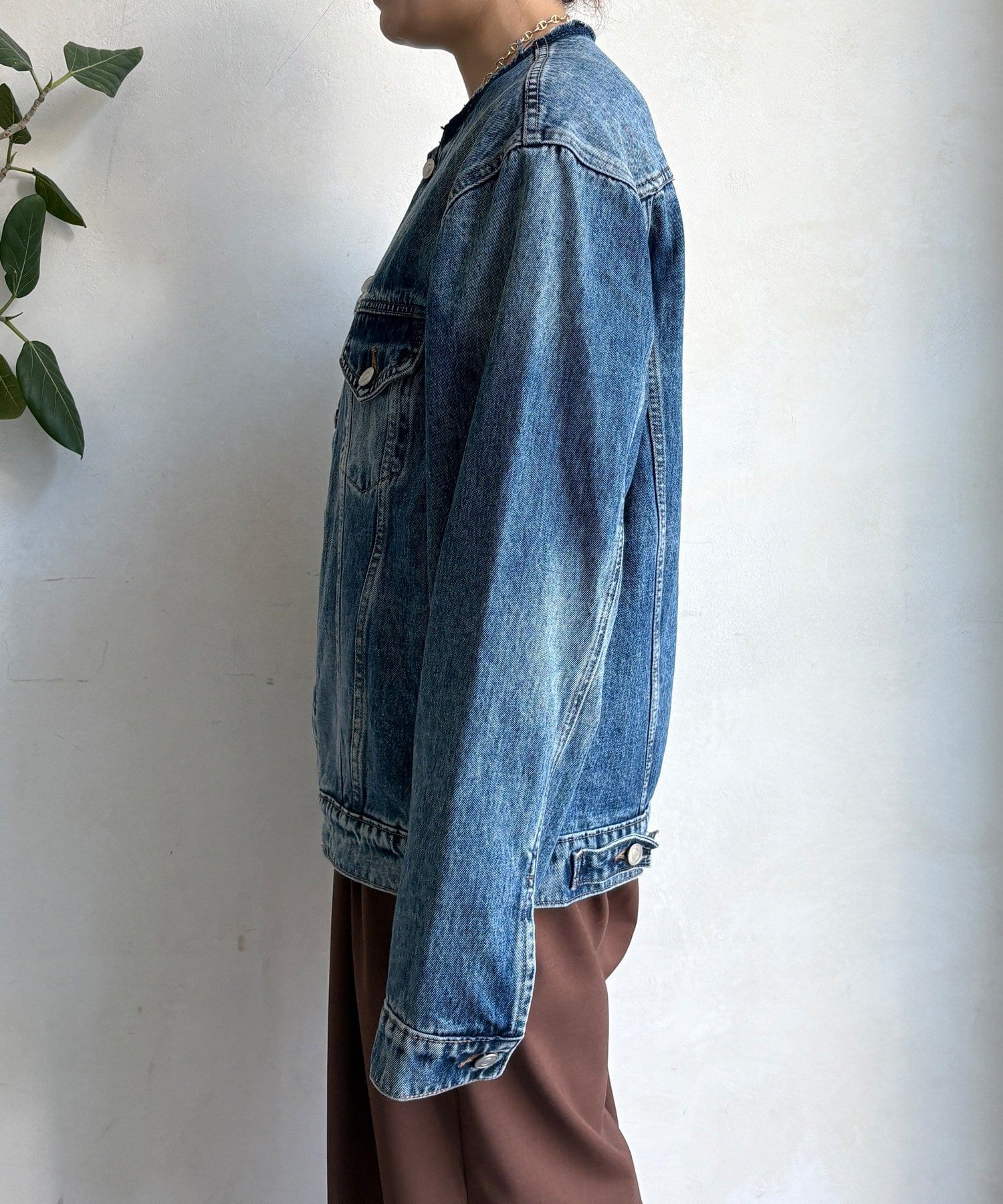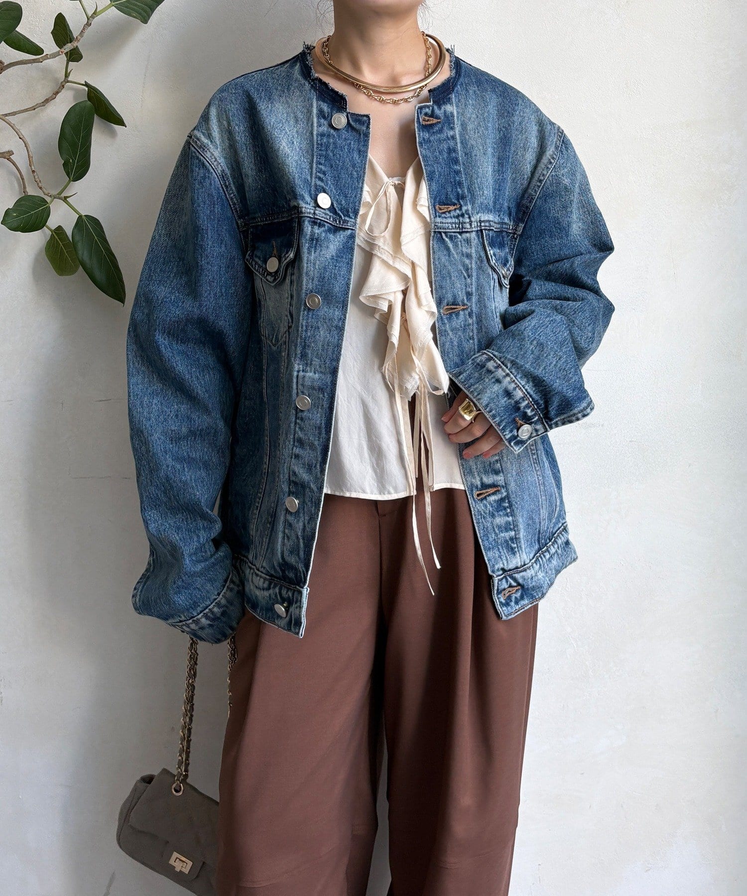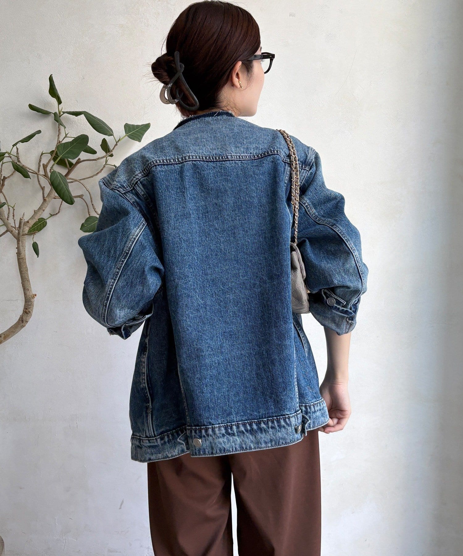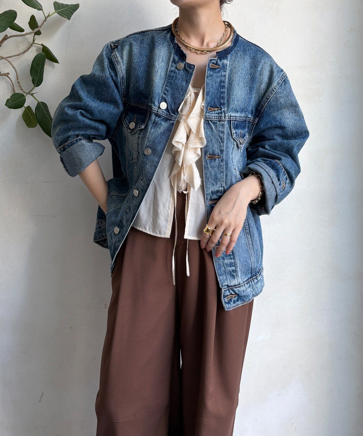 DOUDOU(ドゥドゥ) 【WEB限定】ノーカラーデニムジャケット