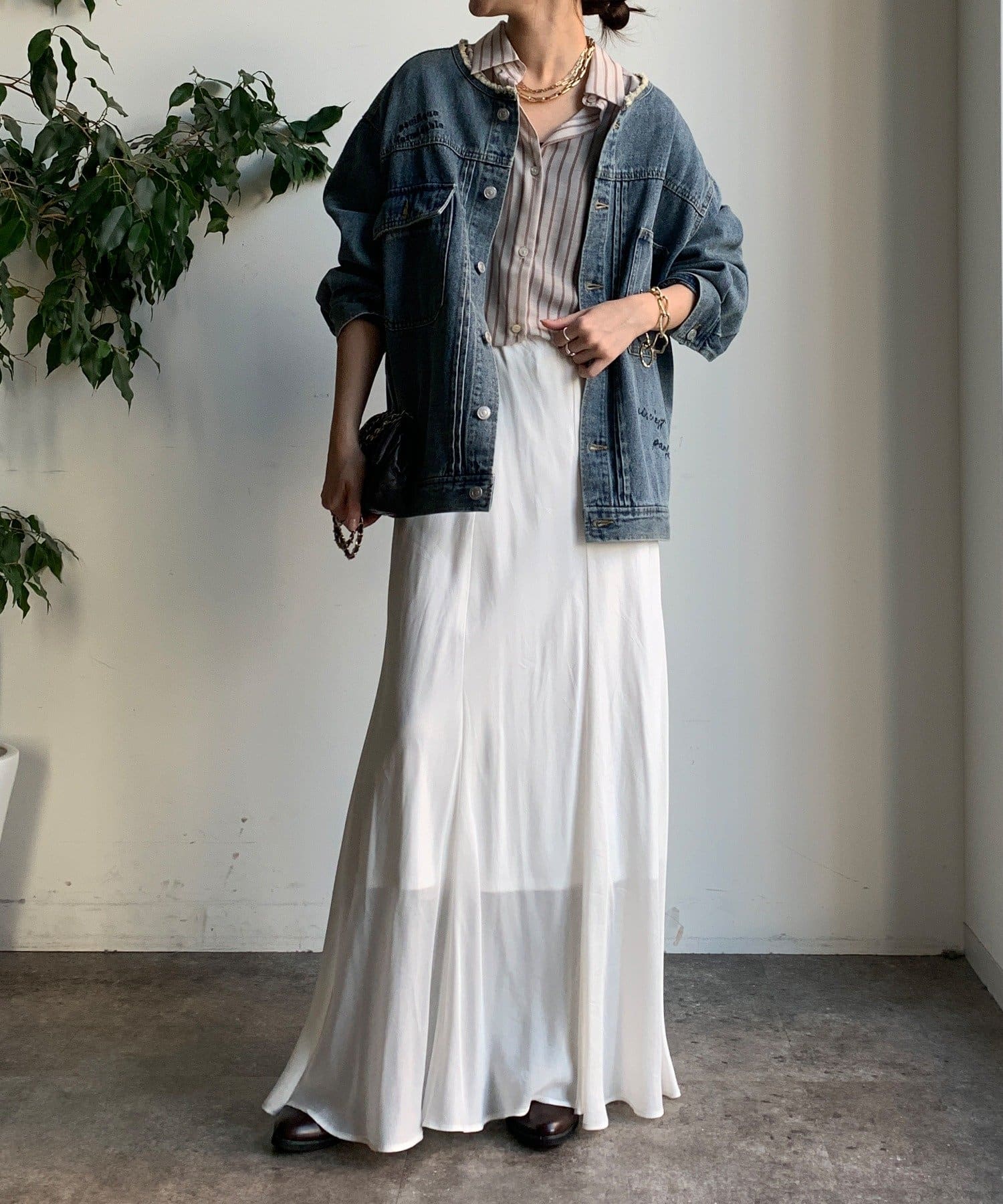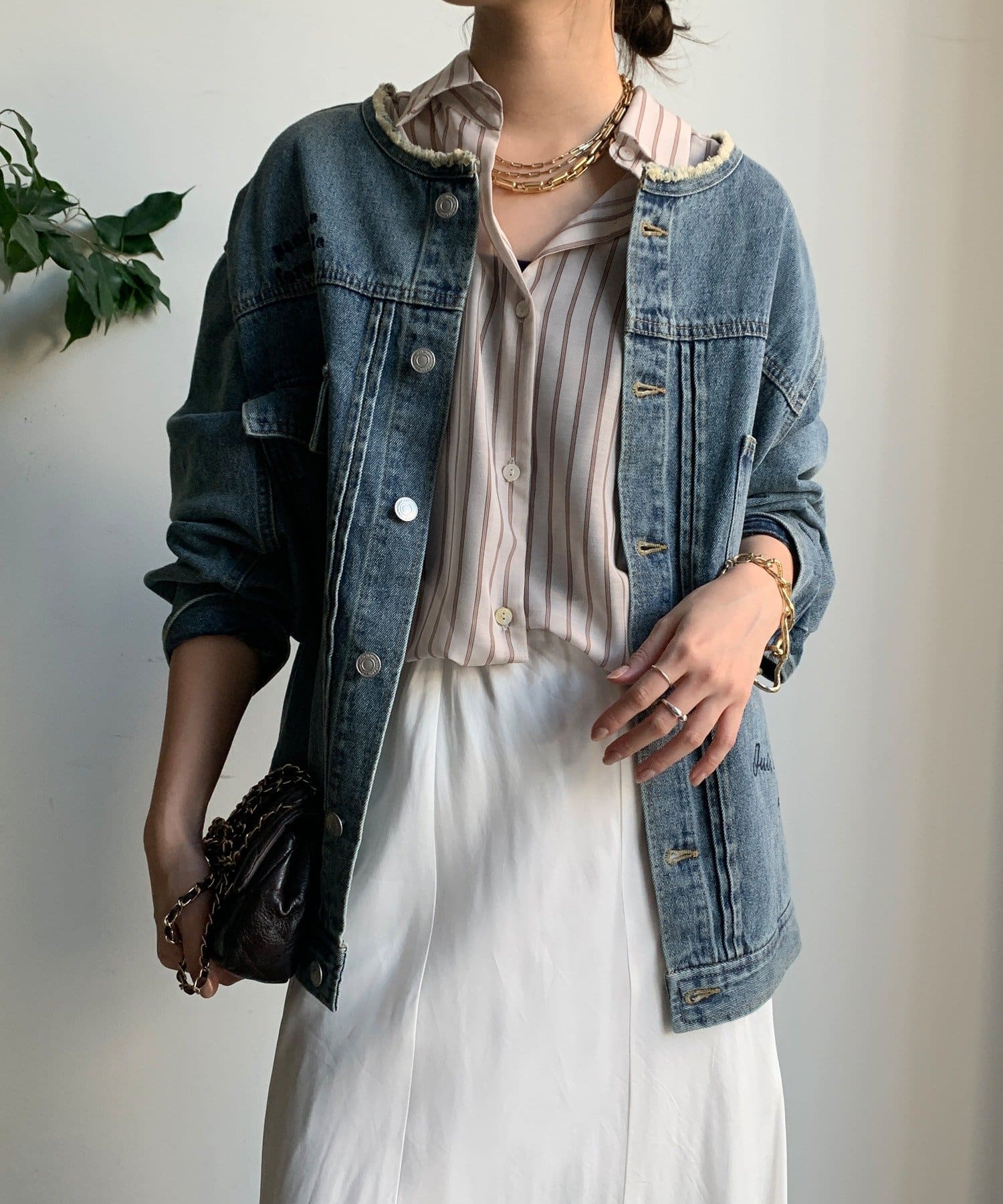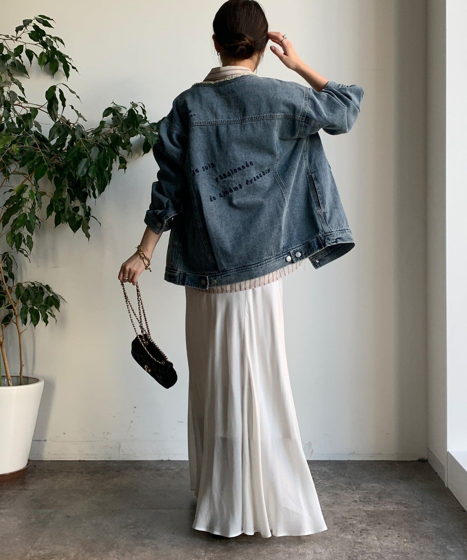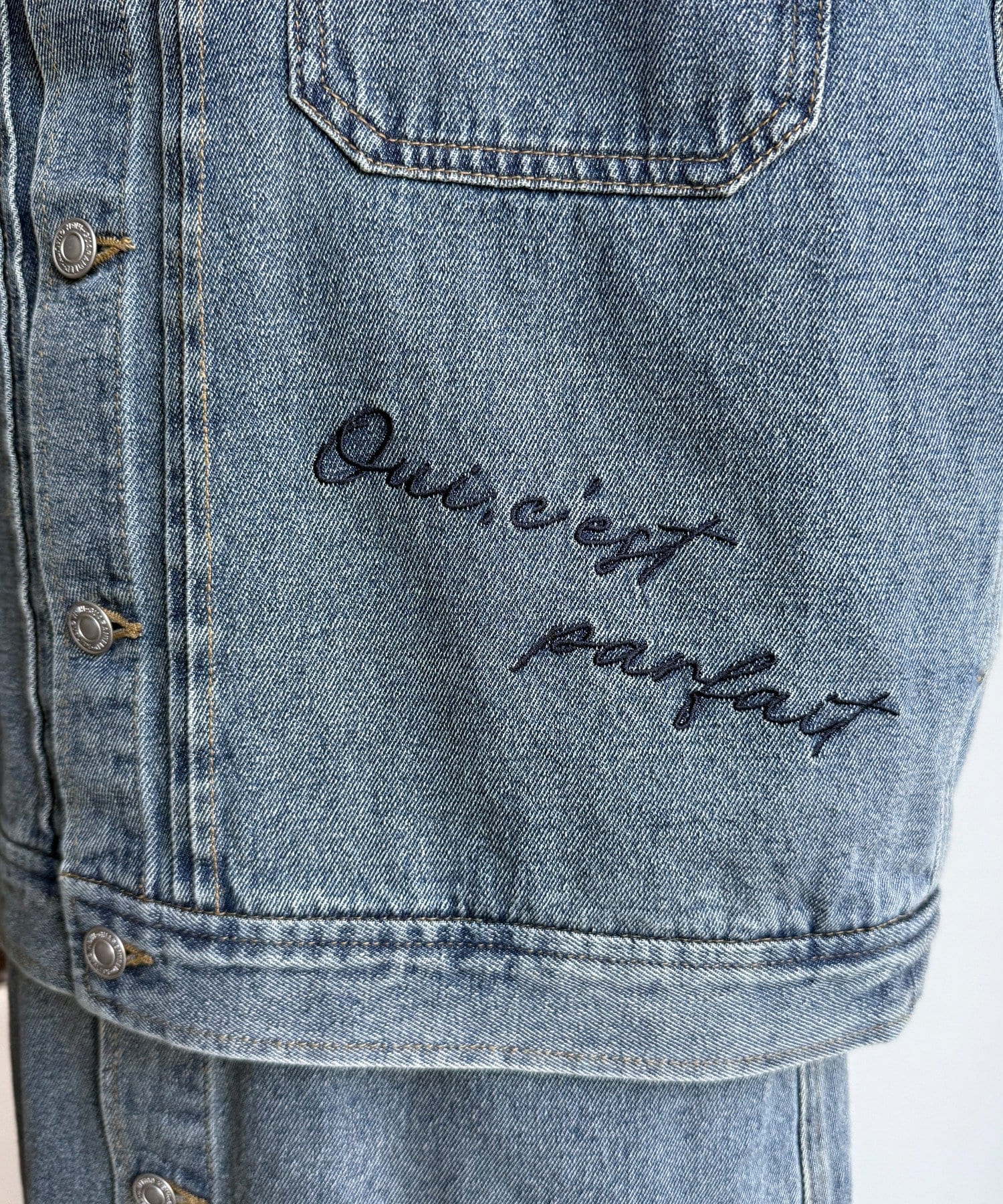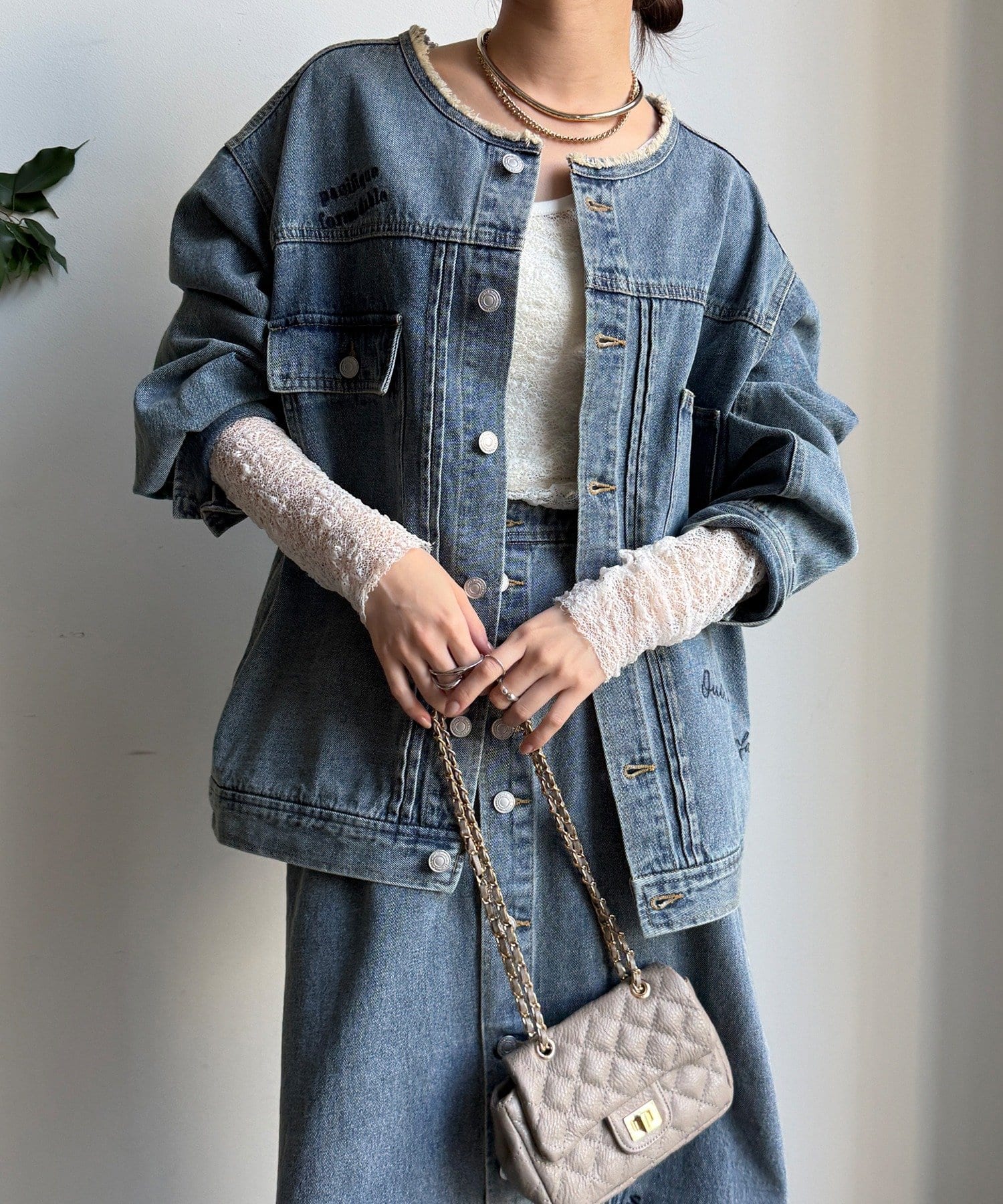 デニム刺繍フロントボタンスカートとセットアップで合わせるのもおすすめです◎