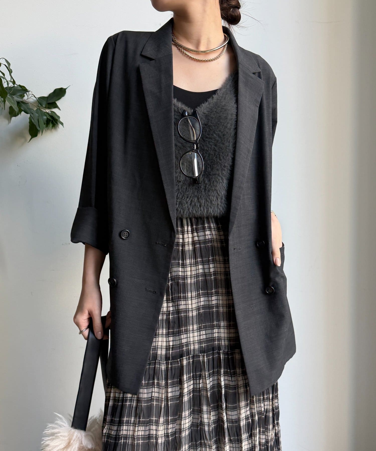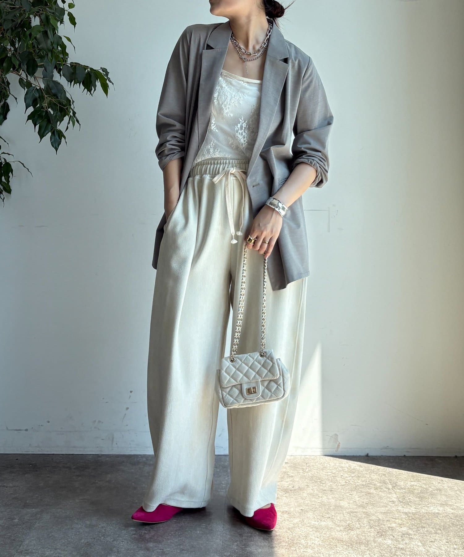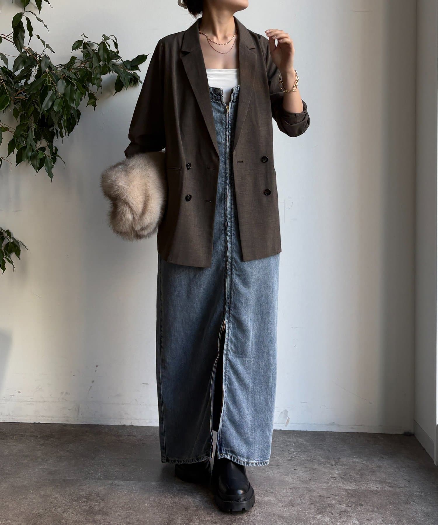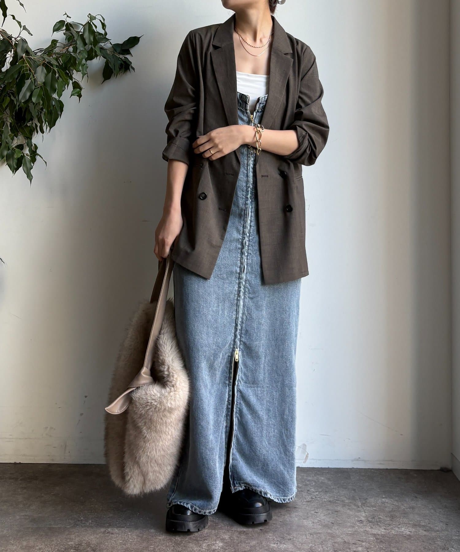 ボタンを留めてきちんと感を演出したり、ラフに羽織ってこなれ感を出すこともできますよ。