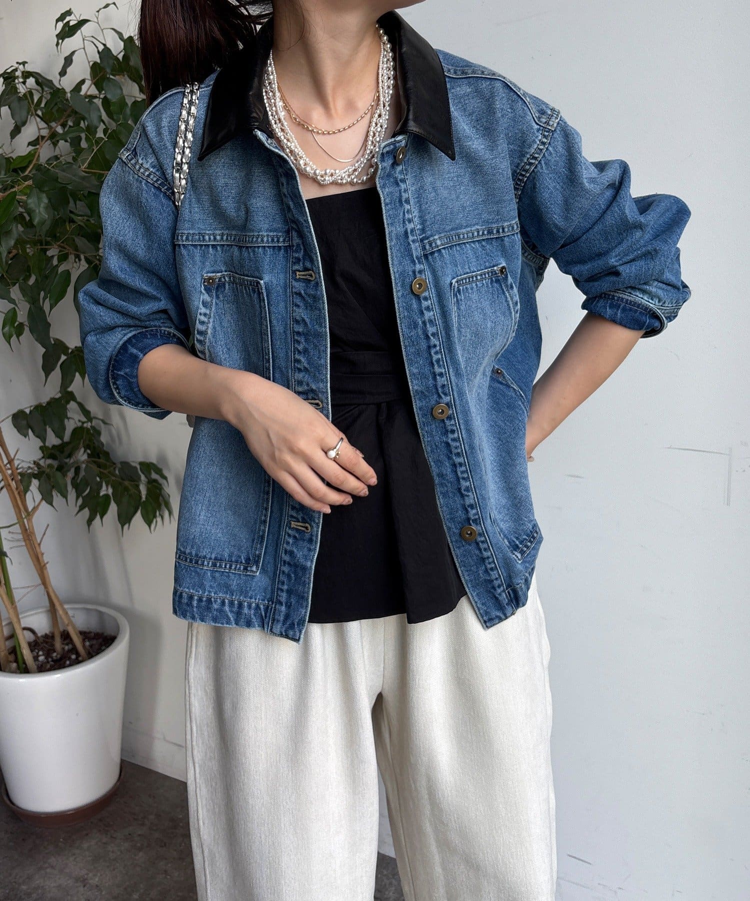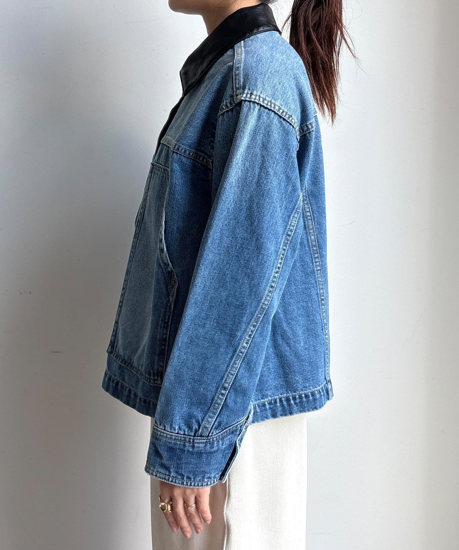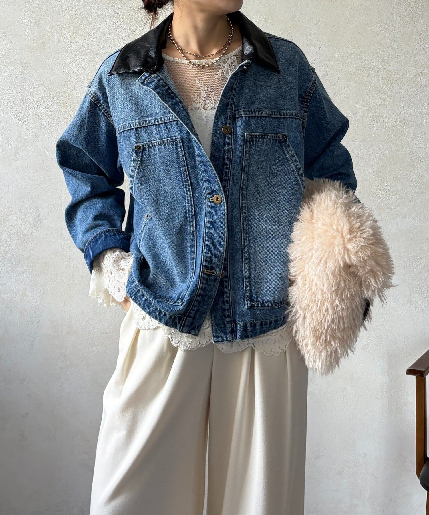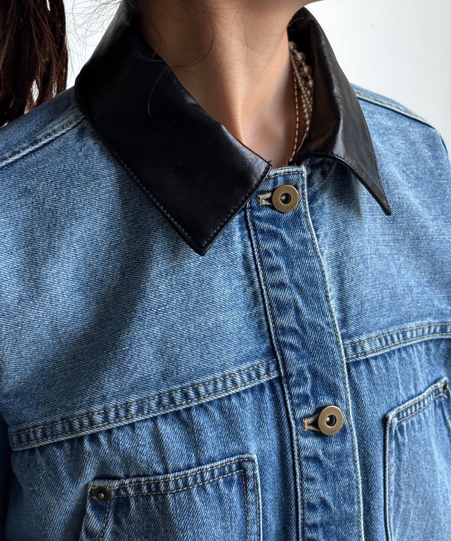 【襟の取り外しが可能!】レザーカラーデニムジャケット