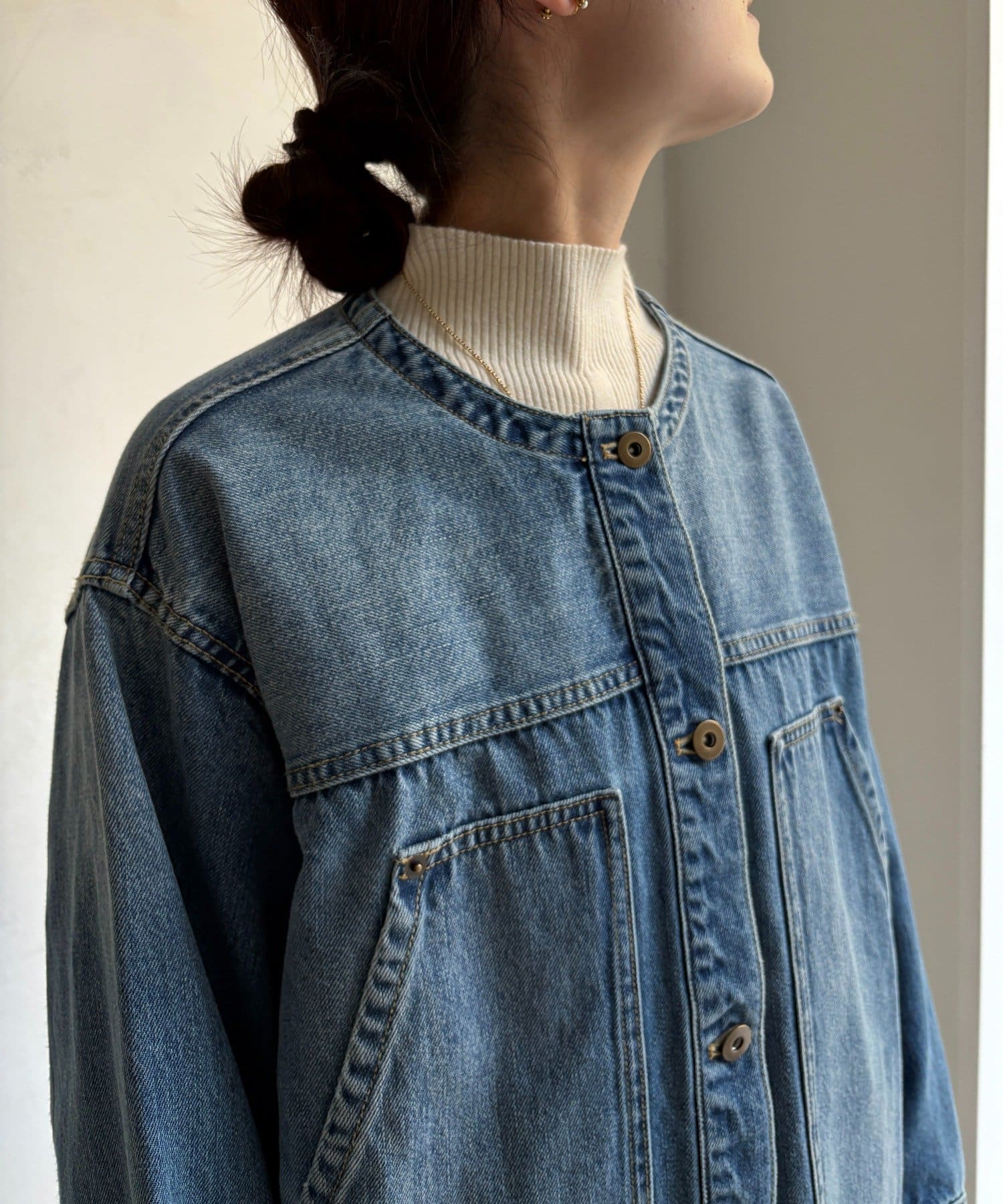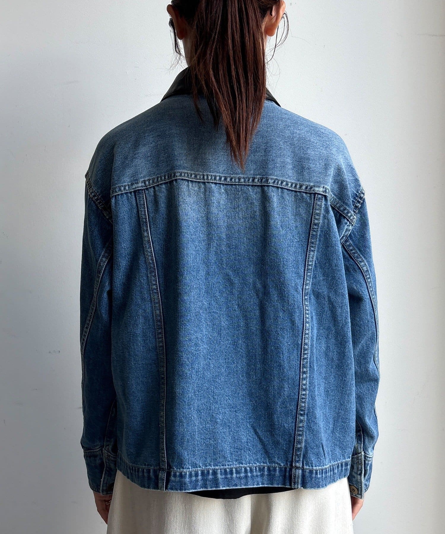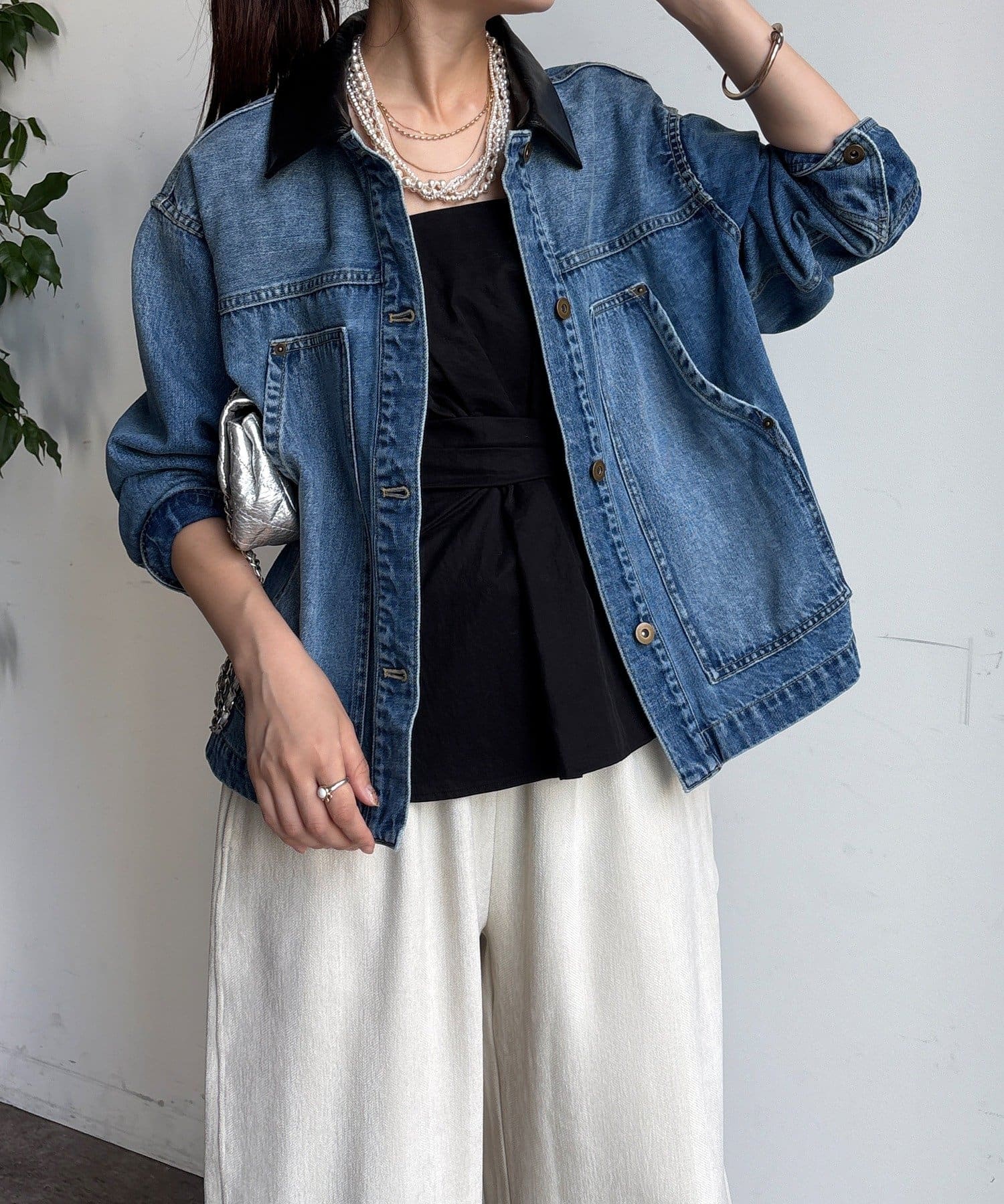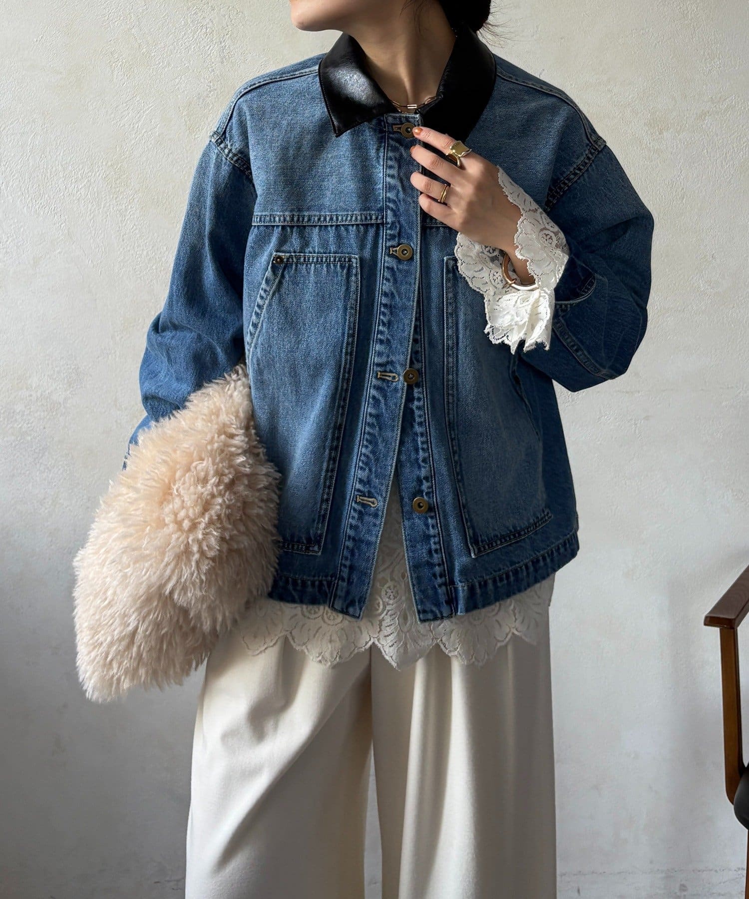 【襟の取り外しが可能!】レザーカラーデニムジャケット