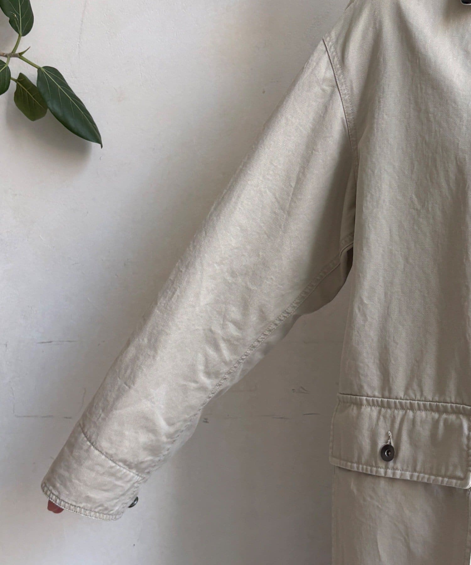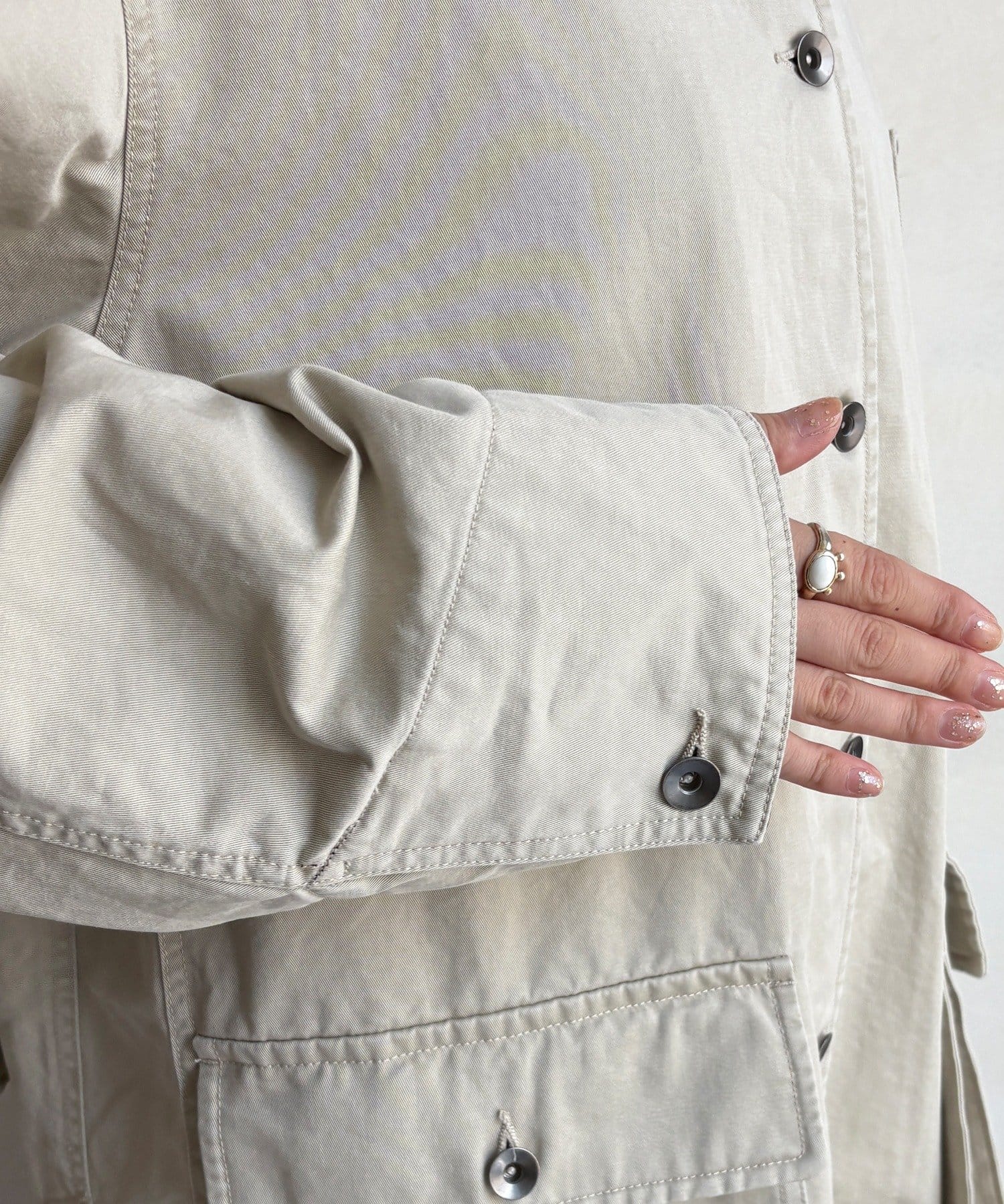 しっかりとしたコットンツイル素材を使用し、程よいハリ感を備えた1着に。