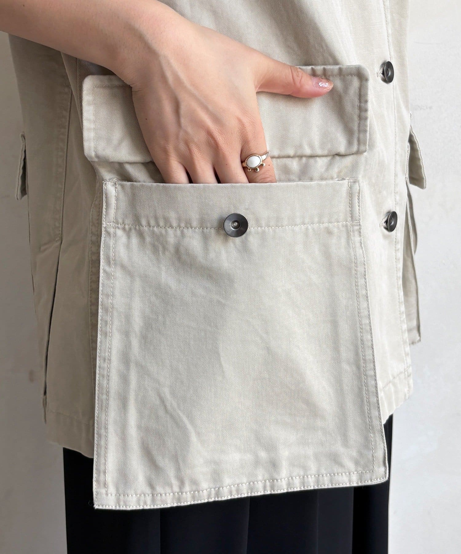 大き目のフラップポケットのデザインや、ルーズなサイズ感でカジュアルな印象を与えながらも、