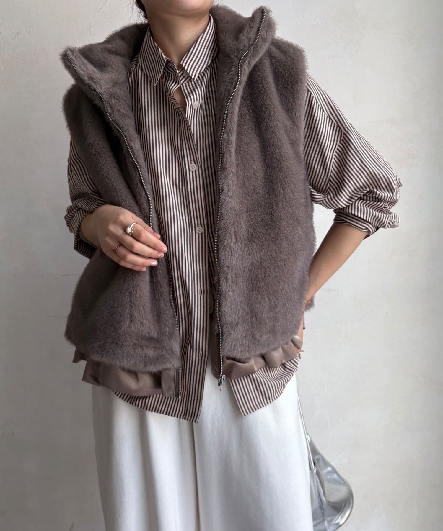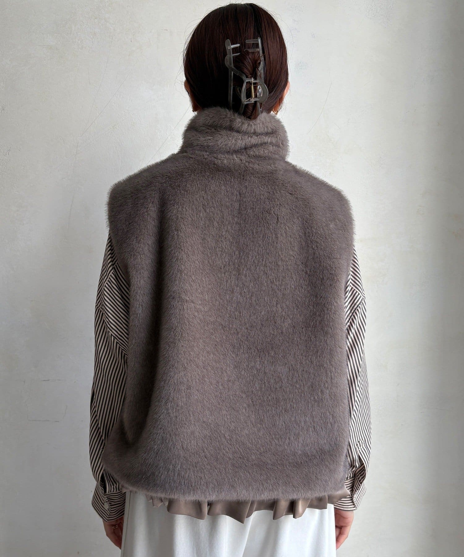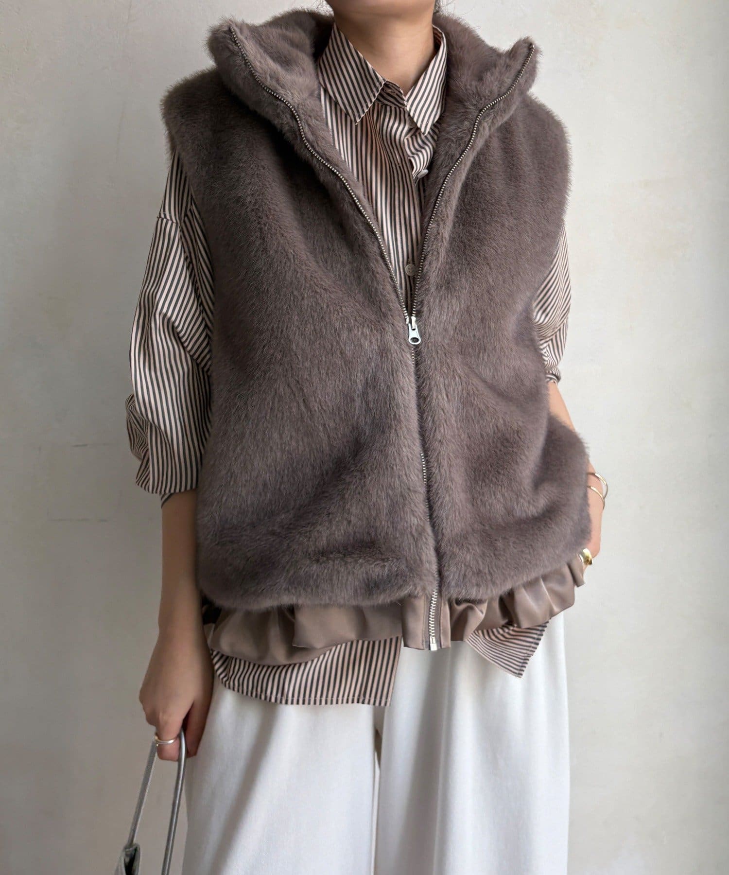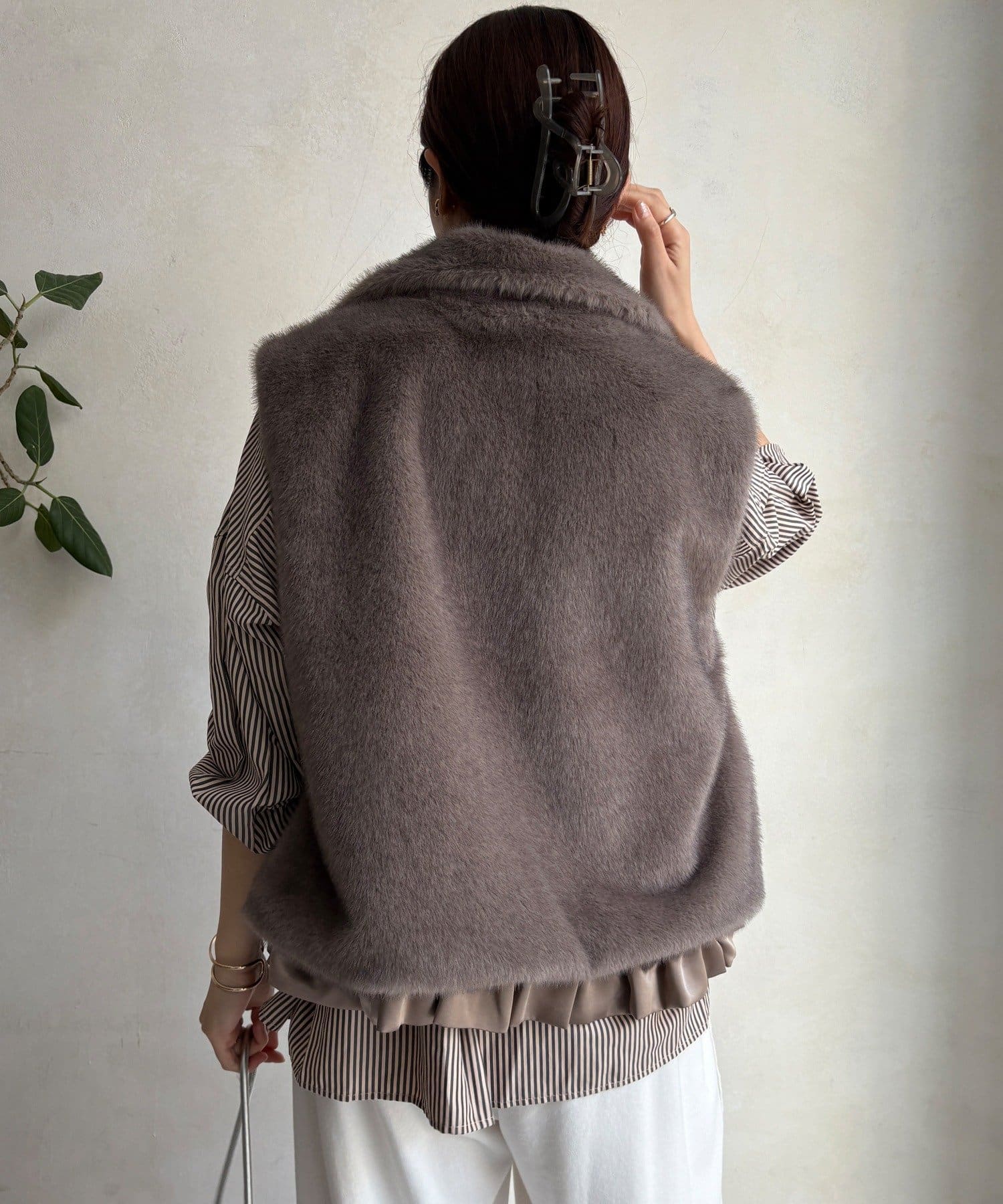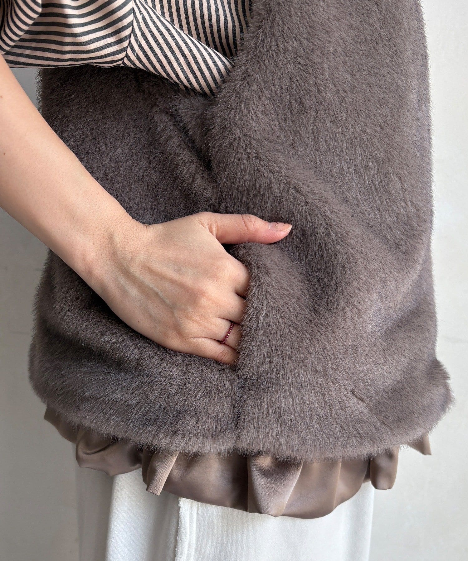 上品なカラーのふわふわファーベスト