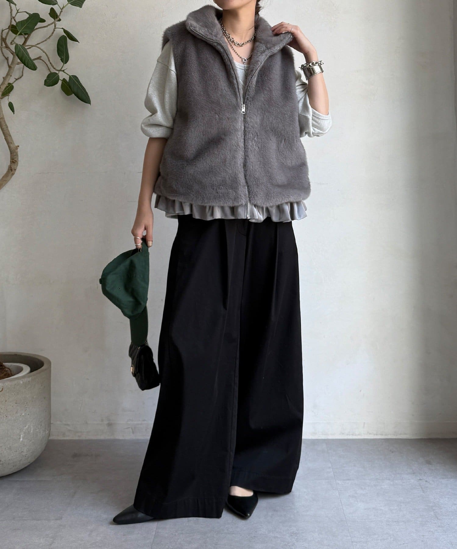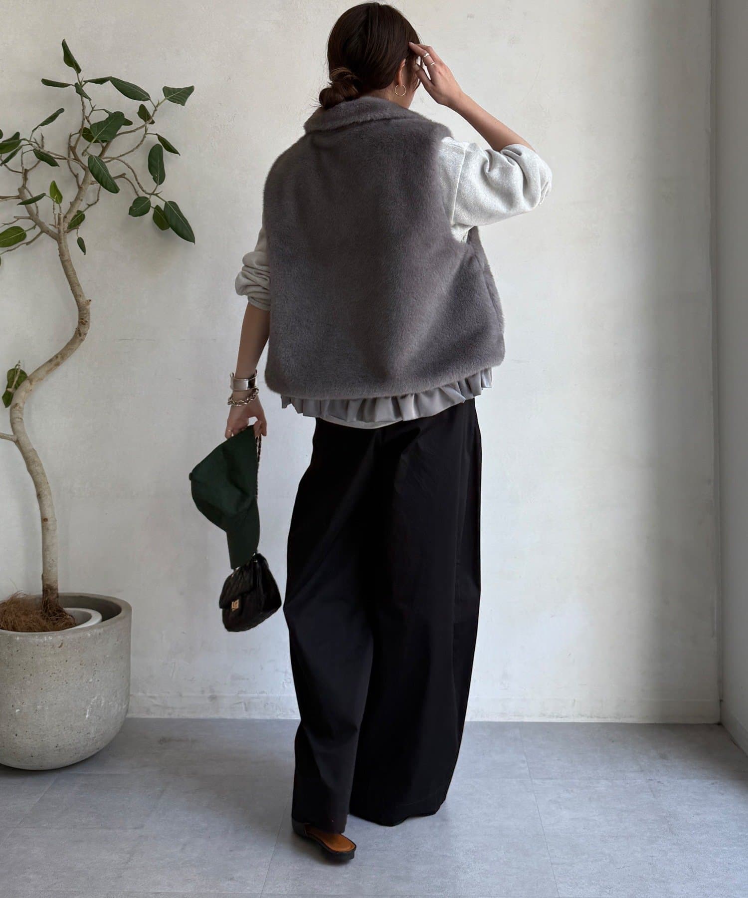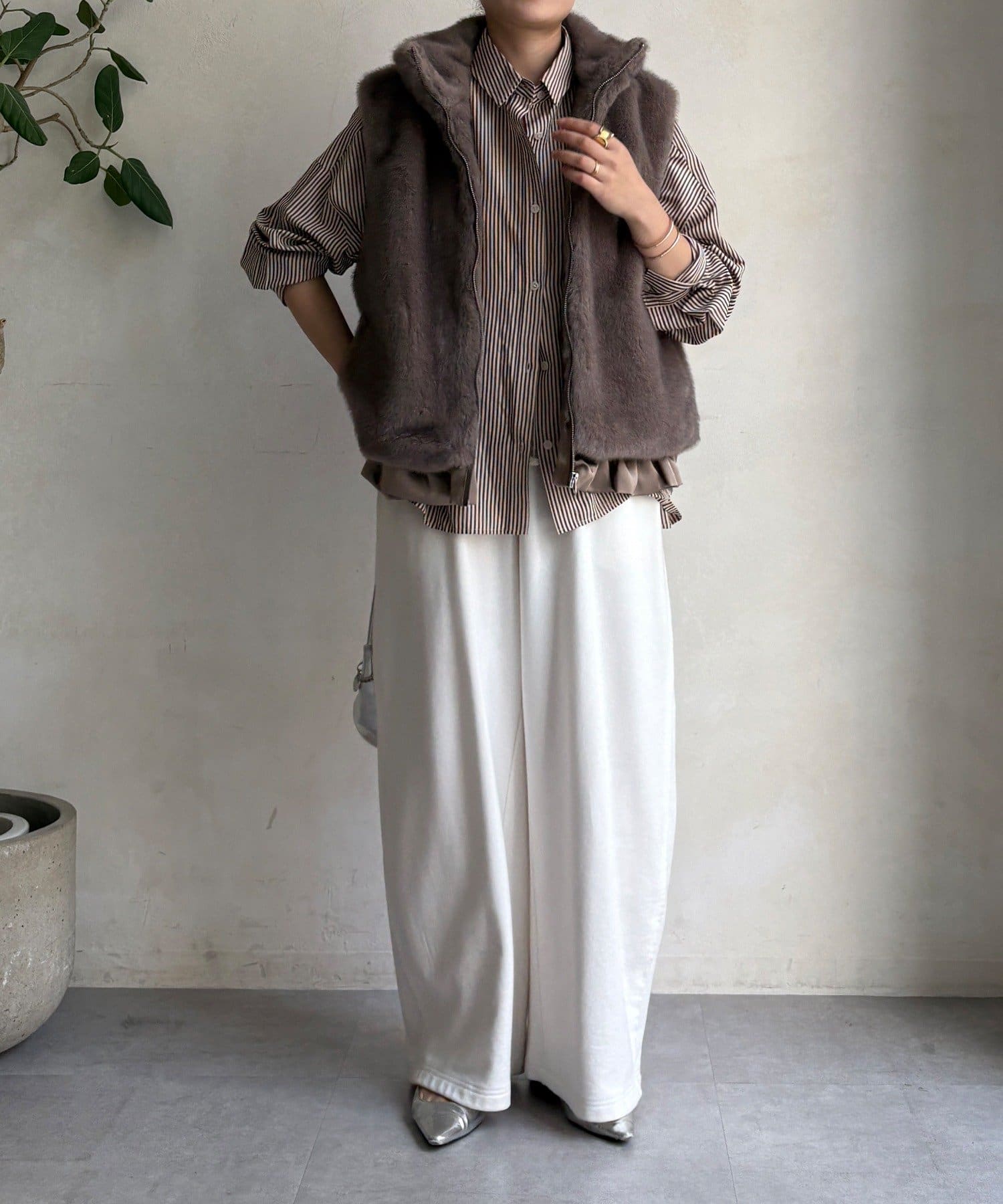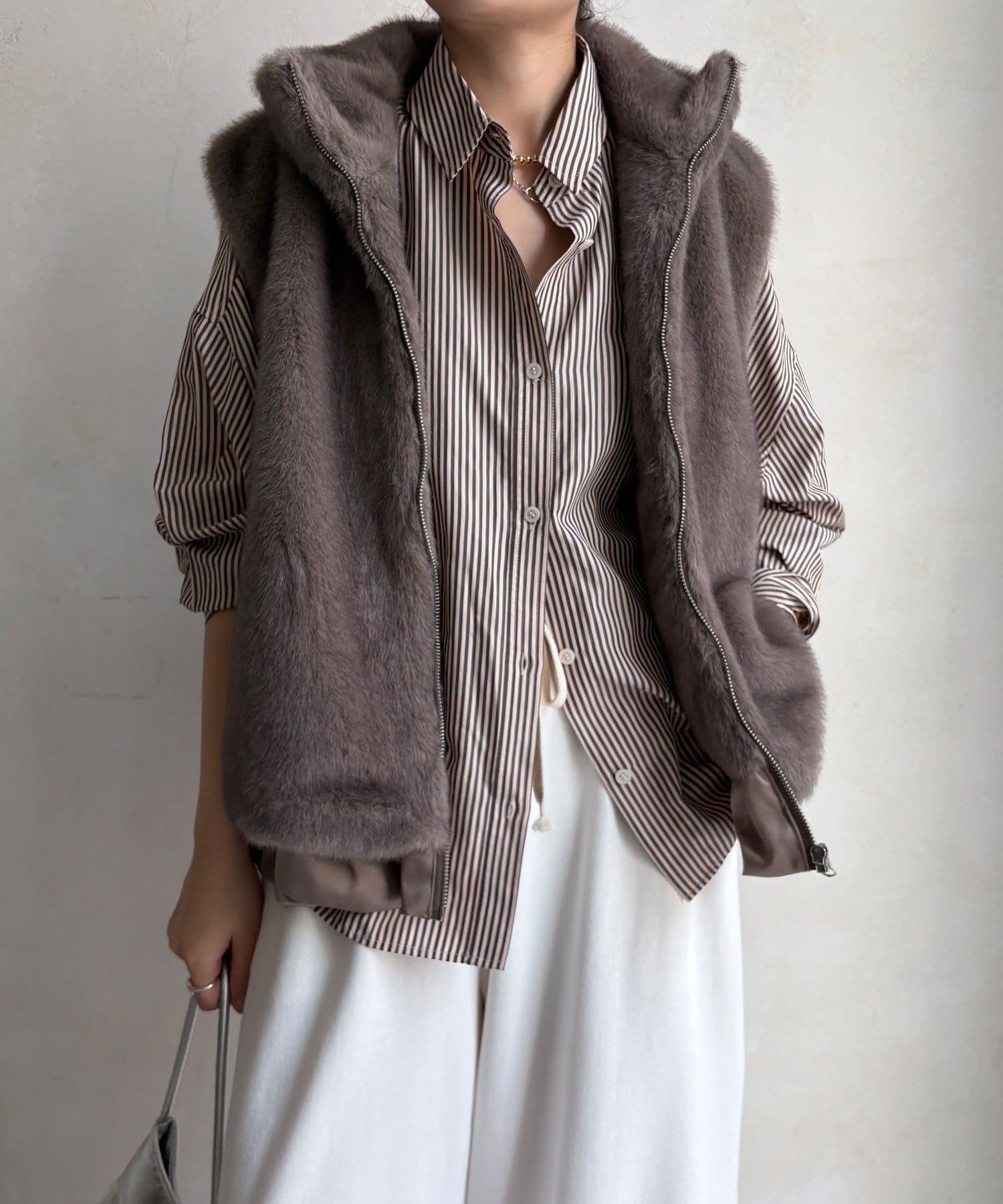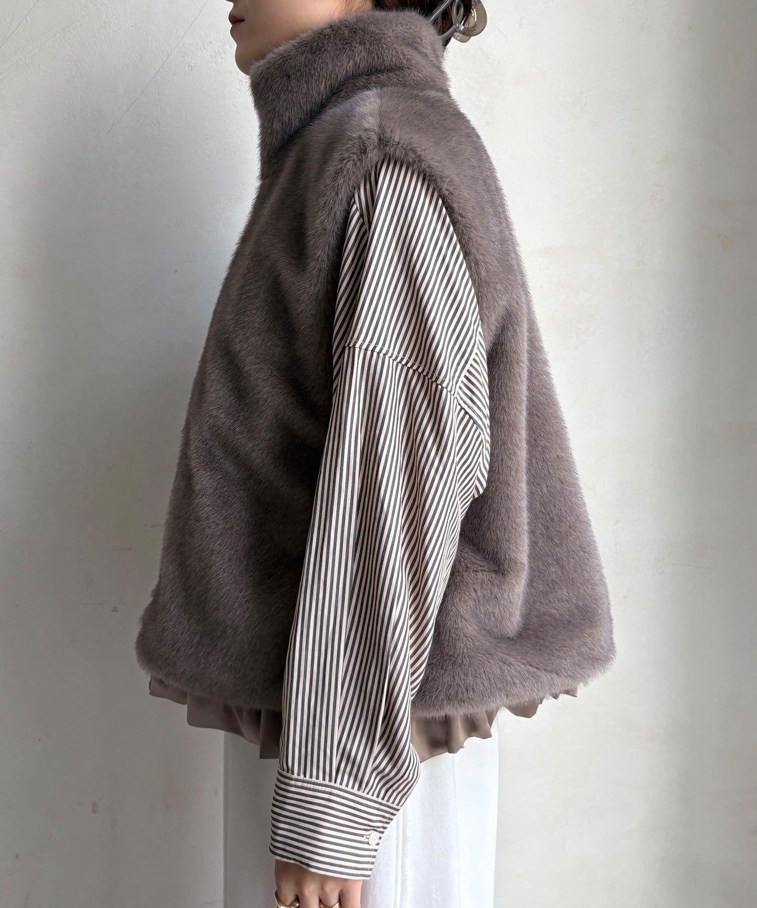 上品なカラーのふわふわファーベスト