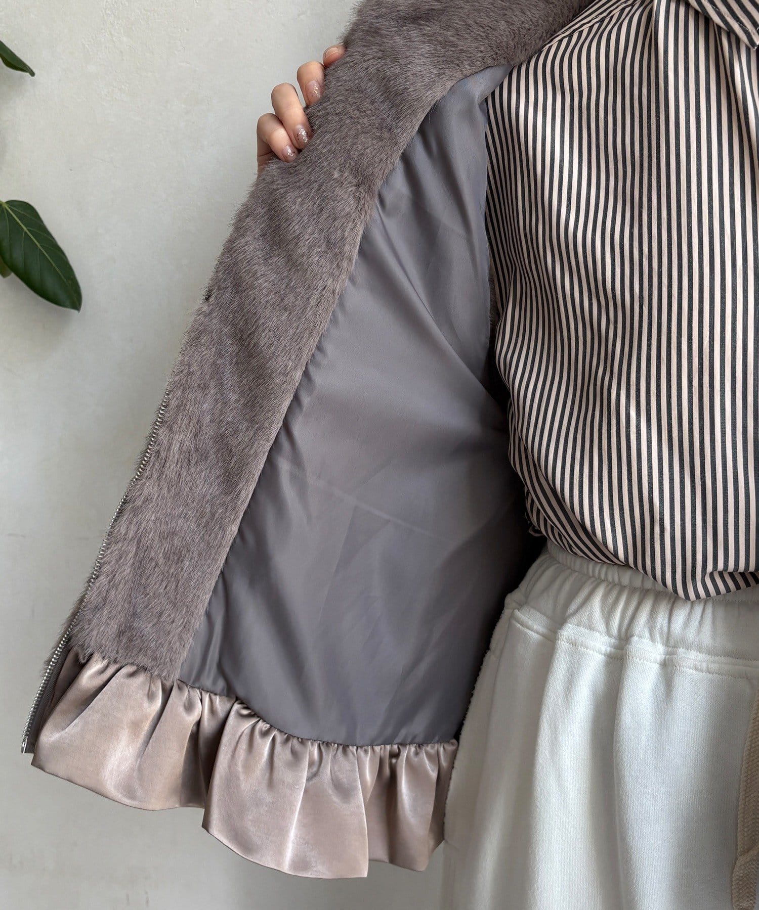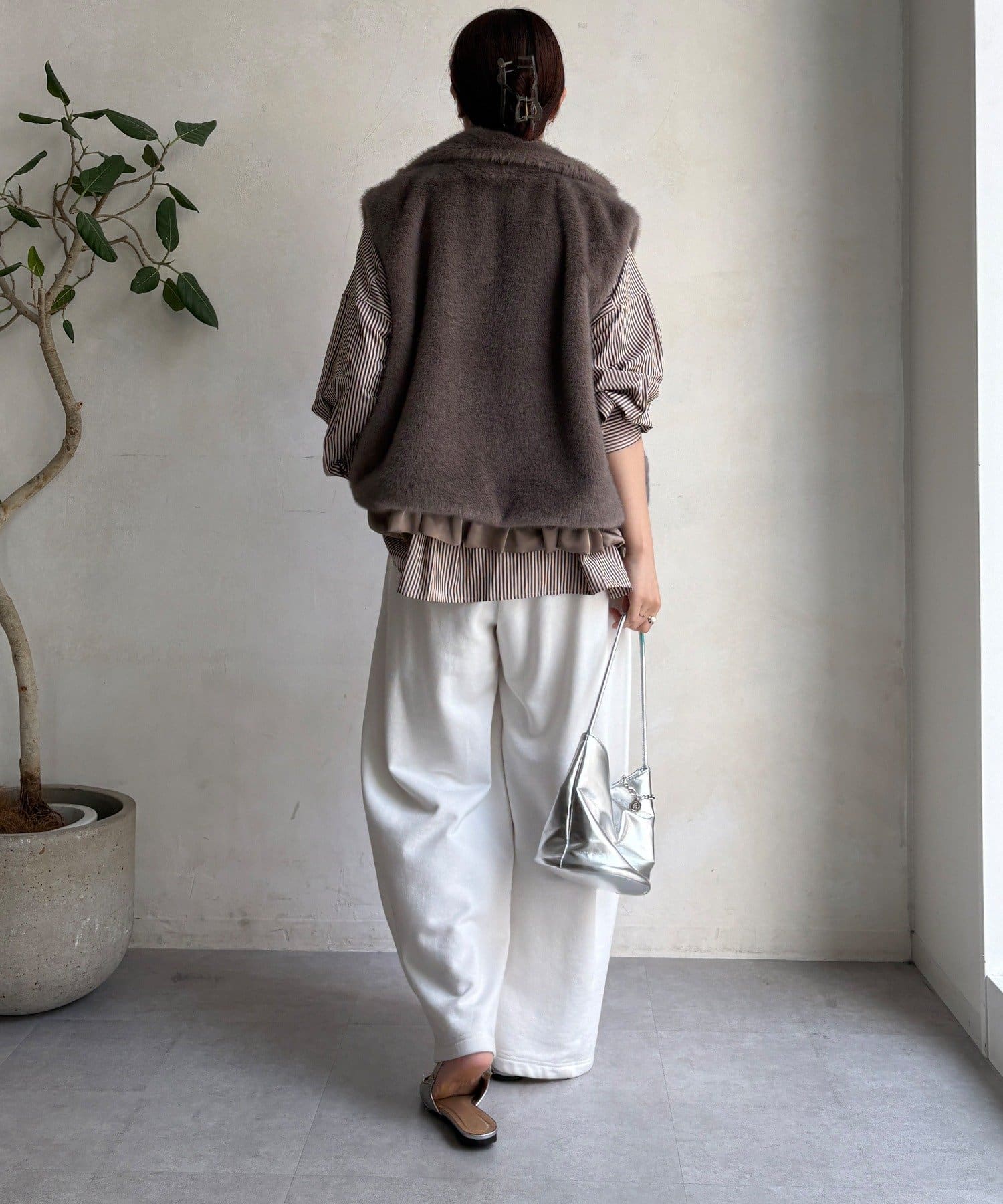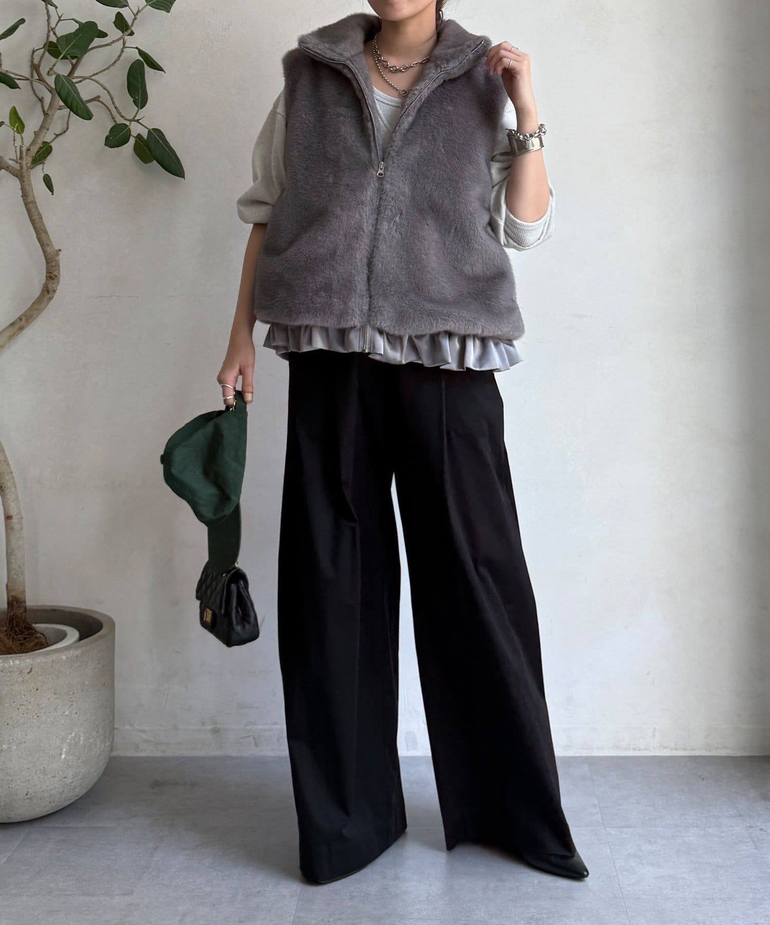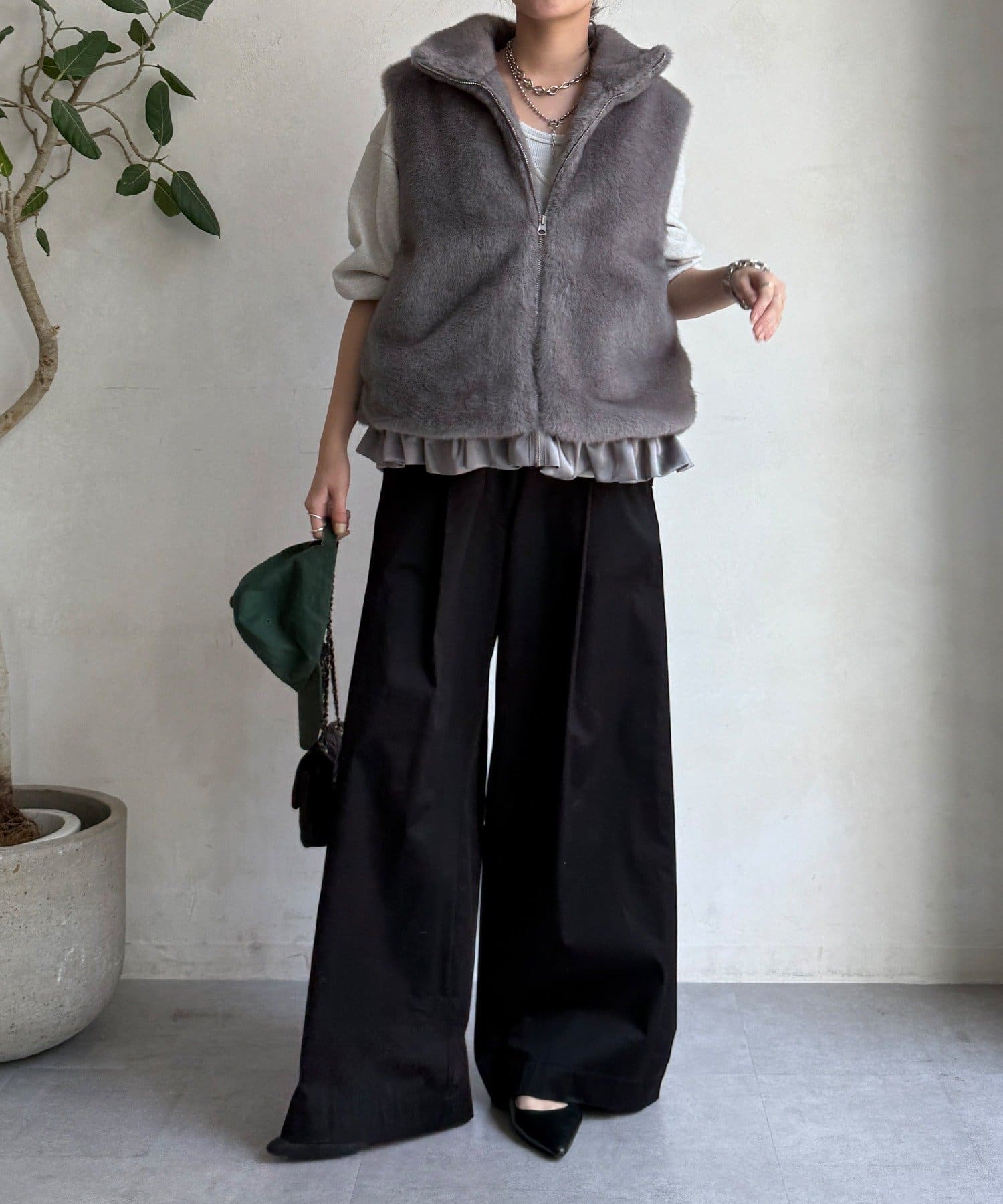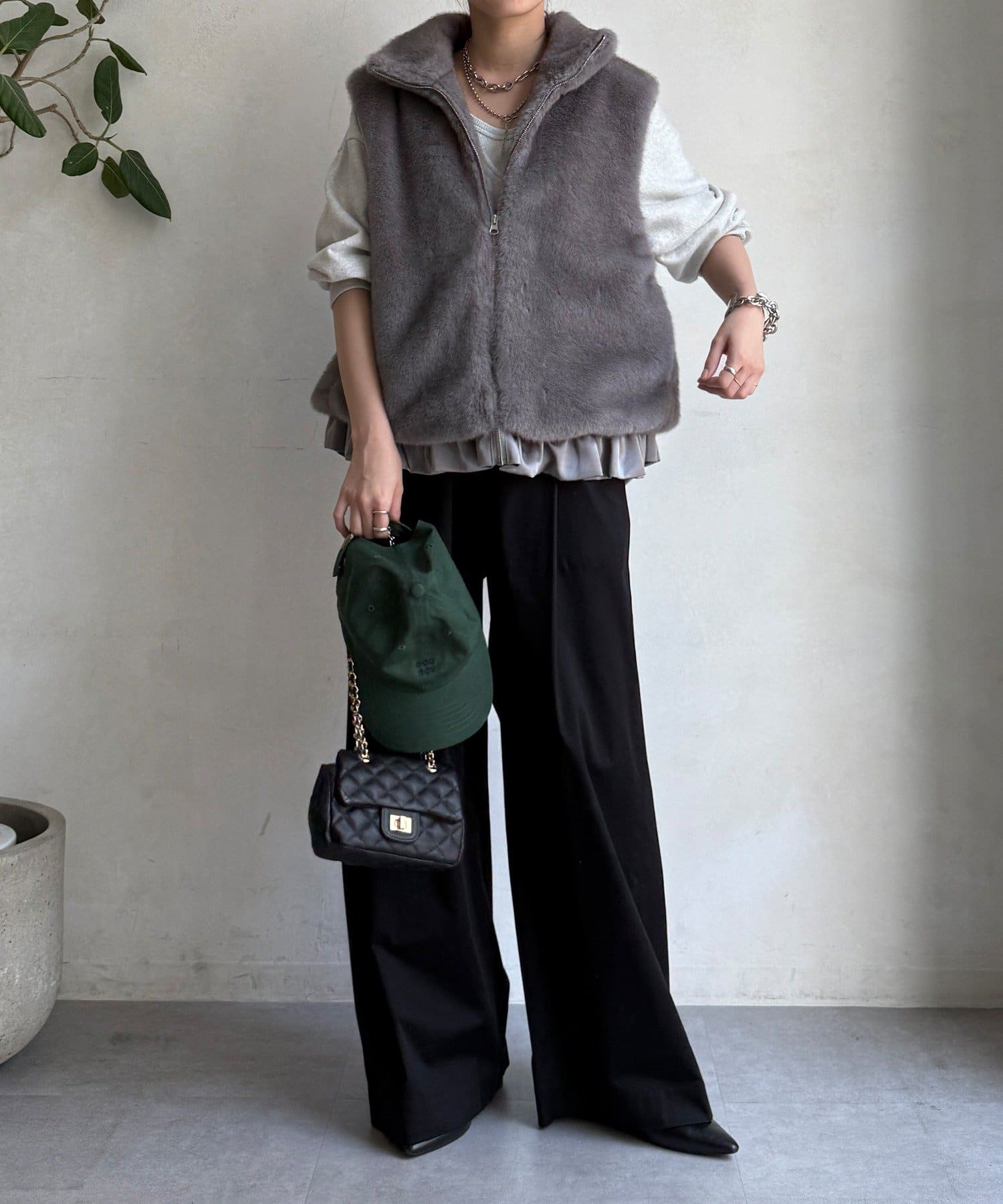 上品なカラーのふわふわファーベスト