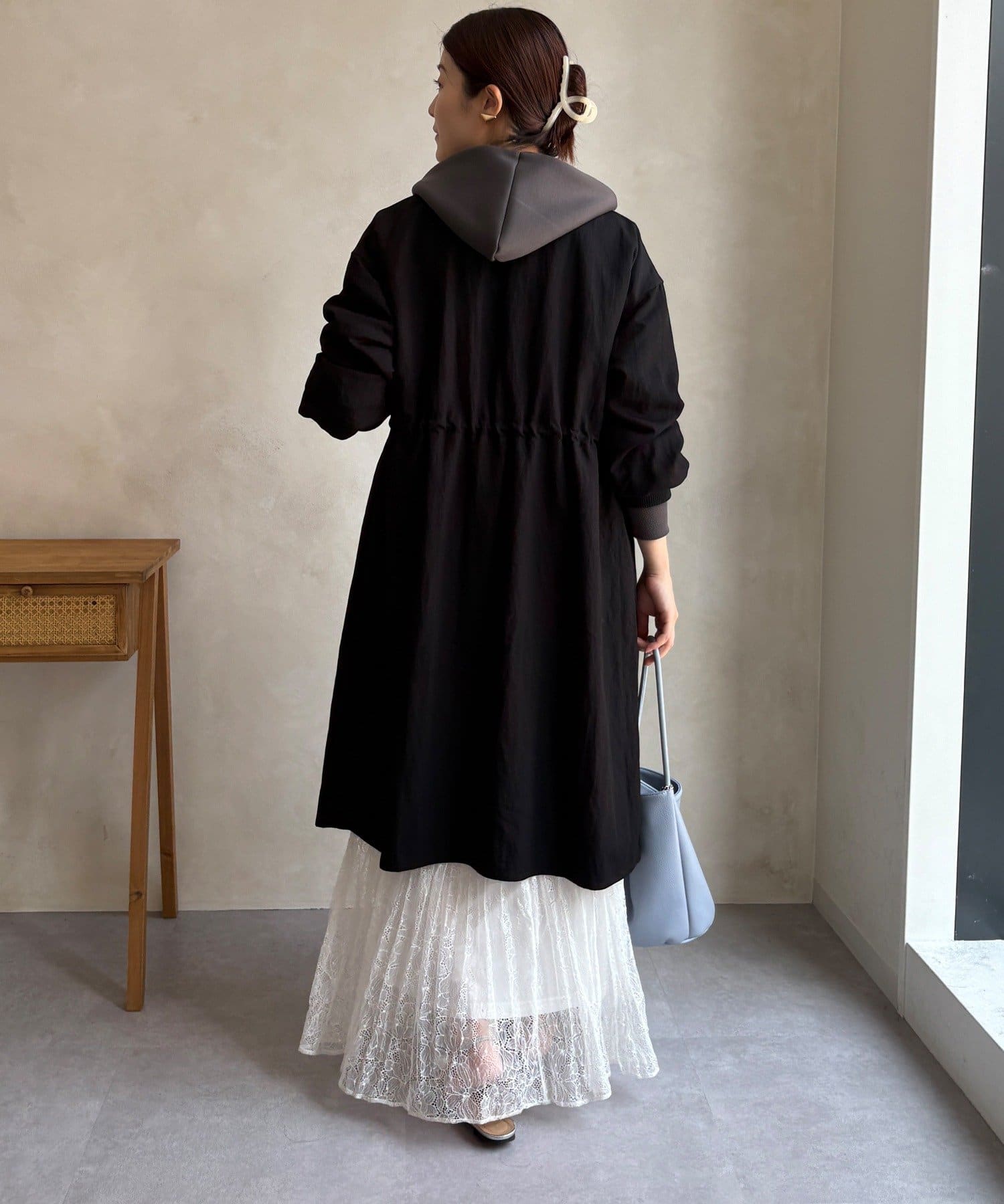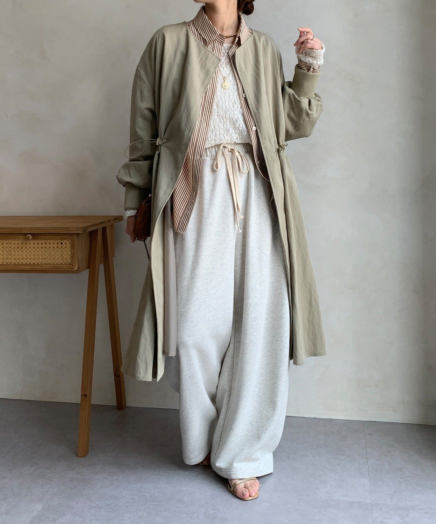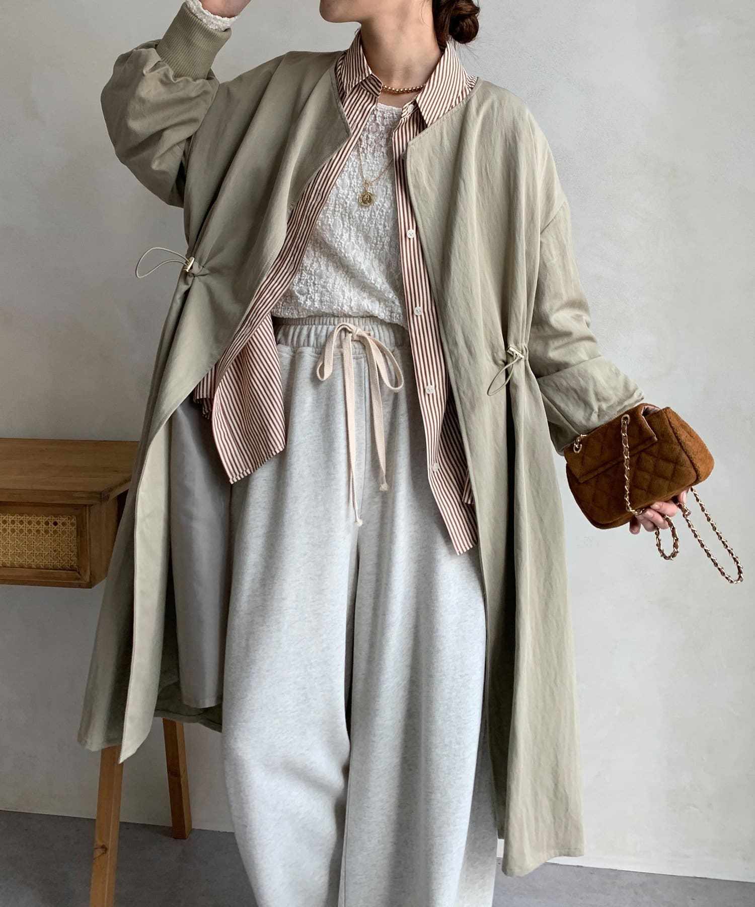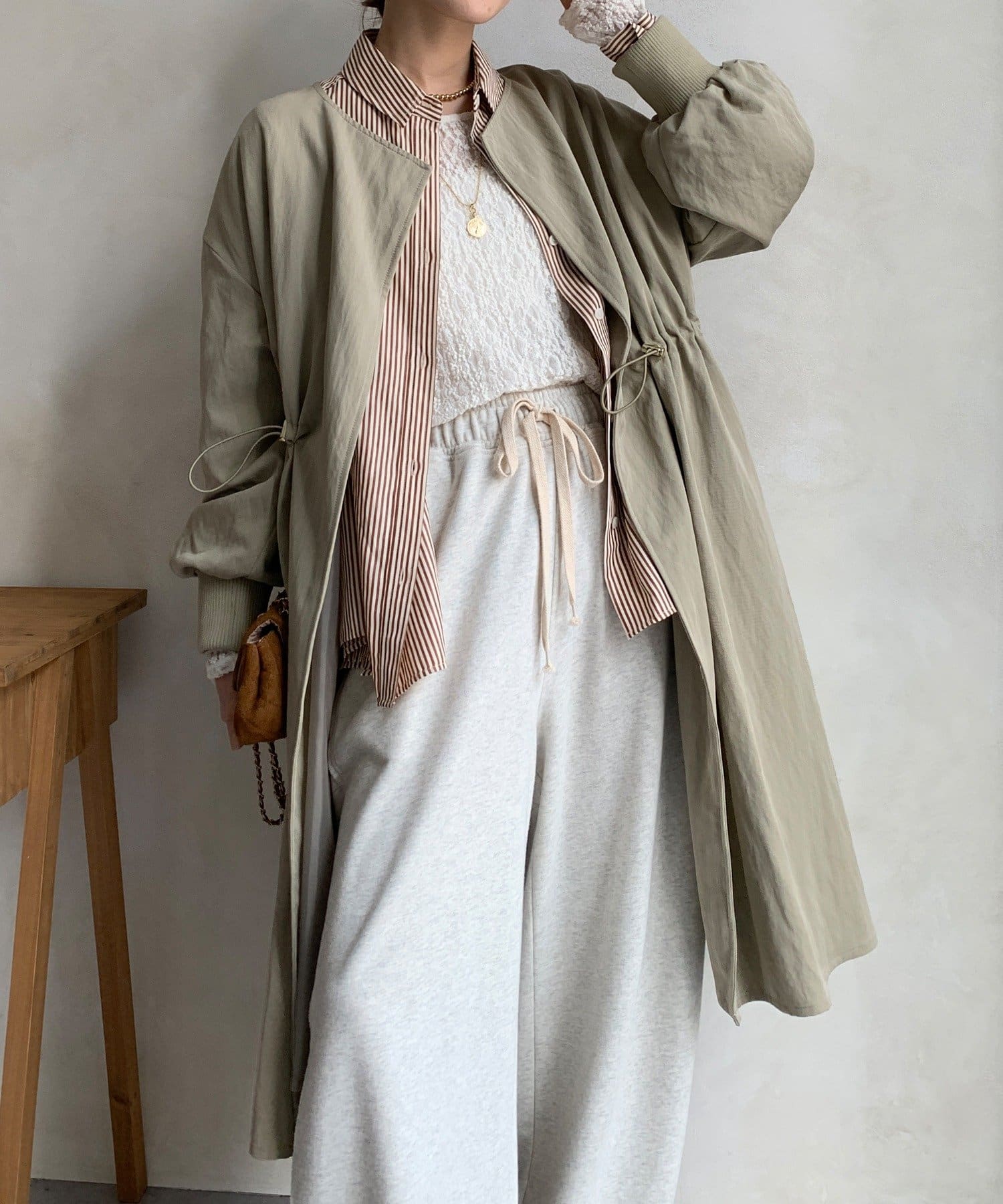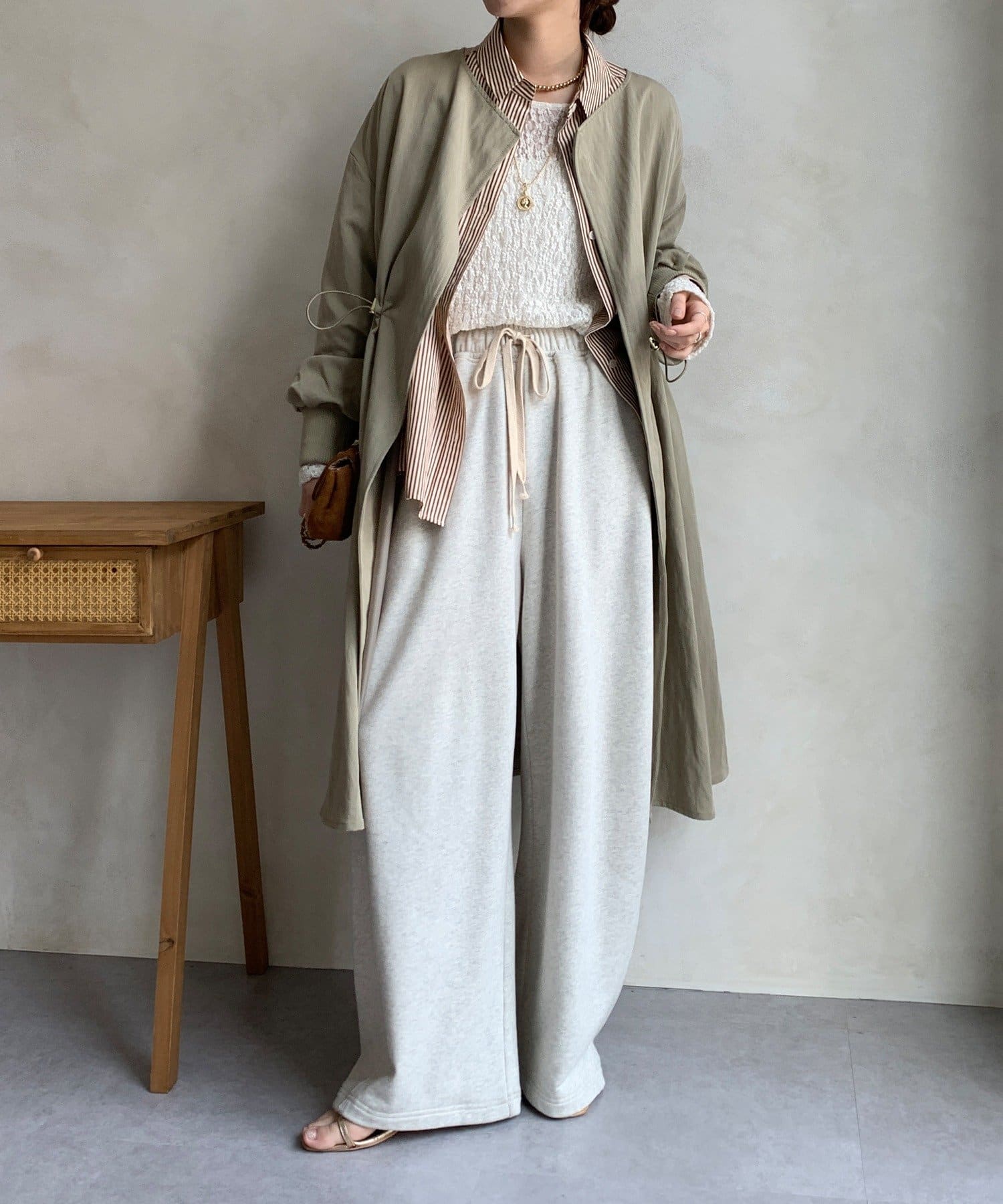 ウエストのドローストリングを絞れば、シルエットに変化をつけられるので、絞るとスタイルアップ効果も期待できますよ。