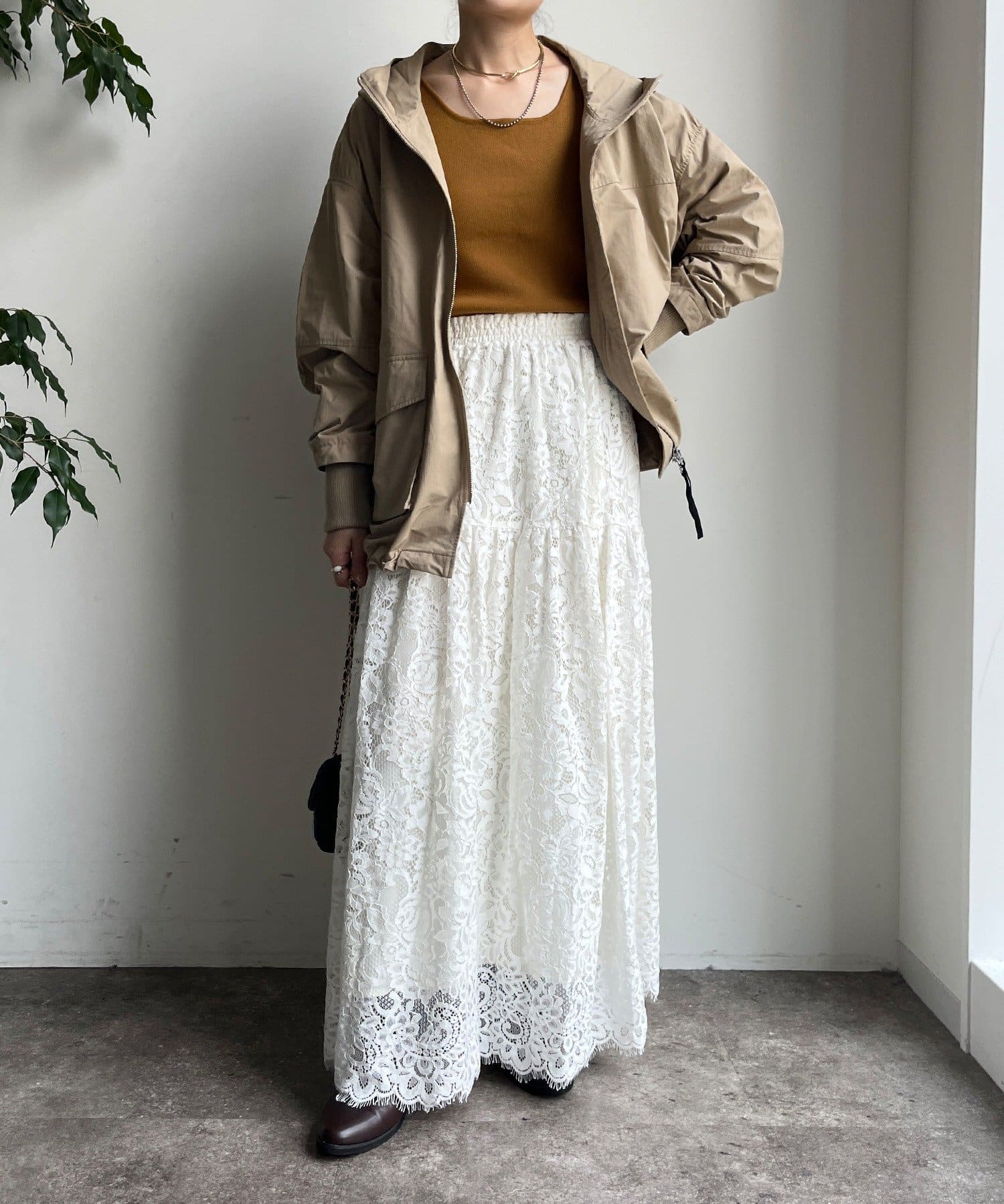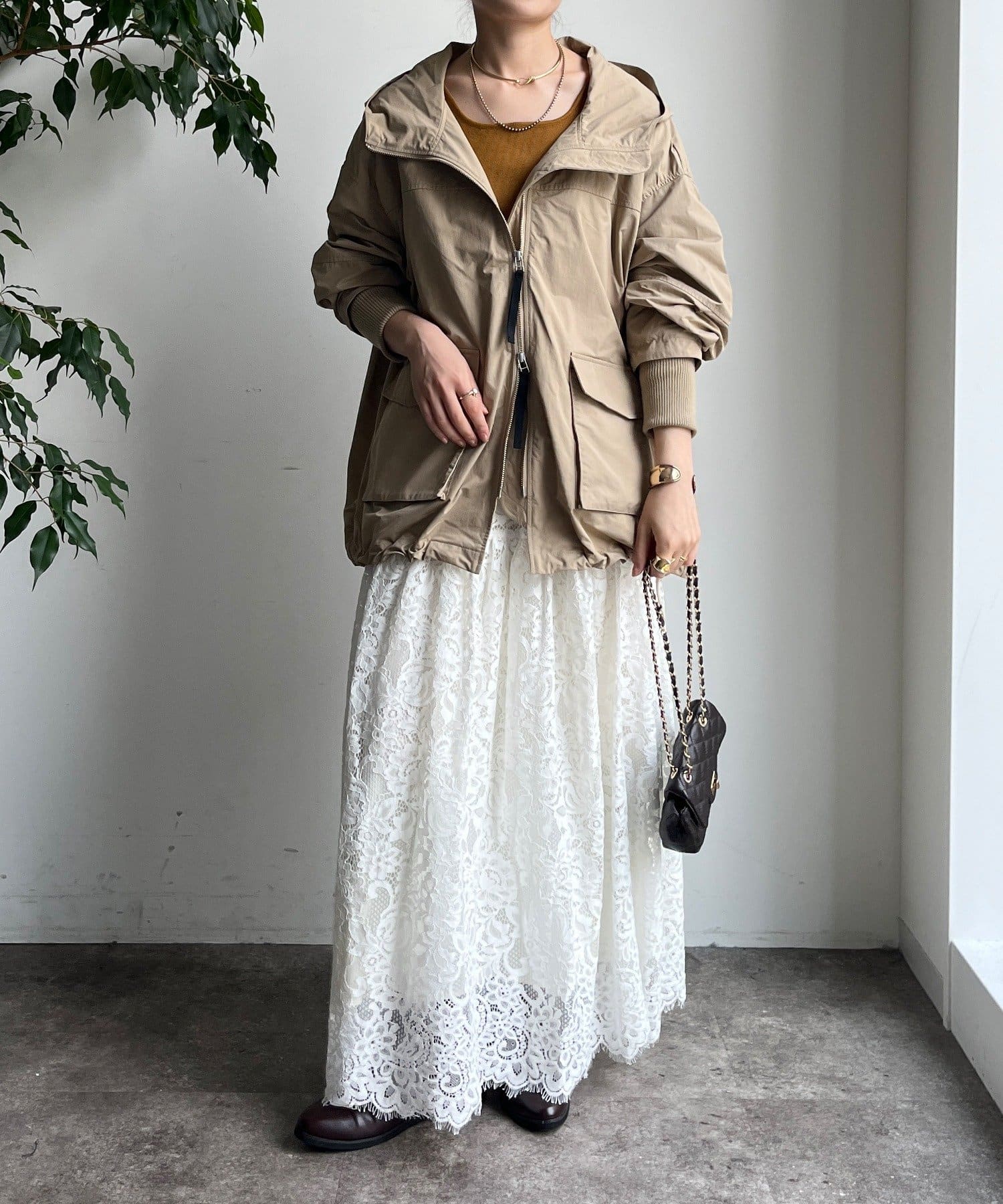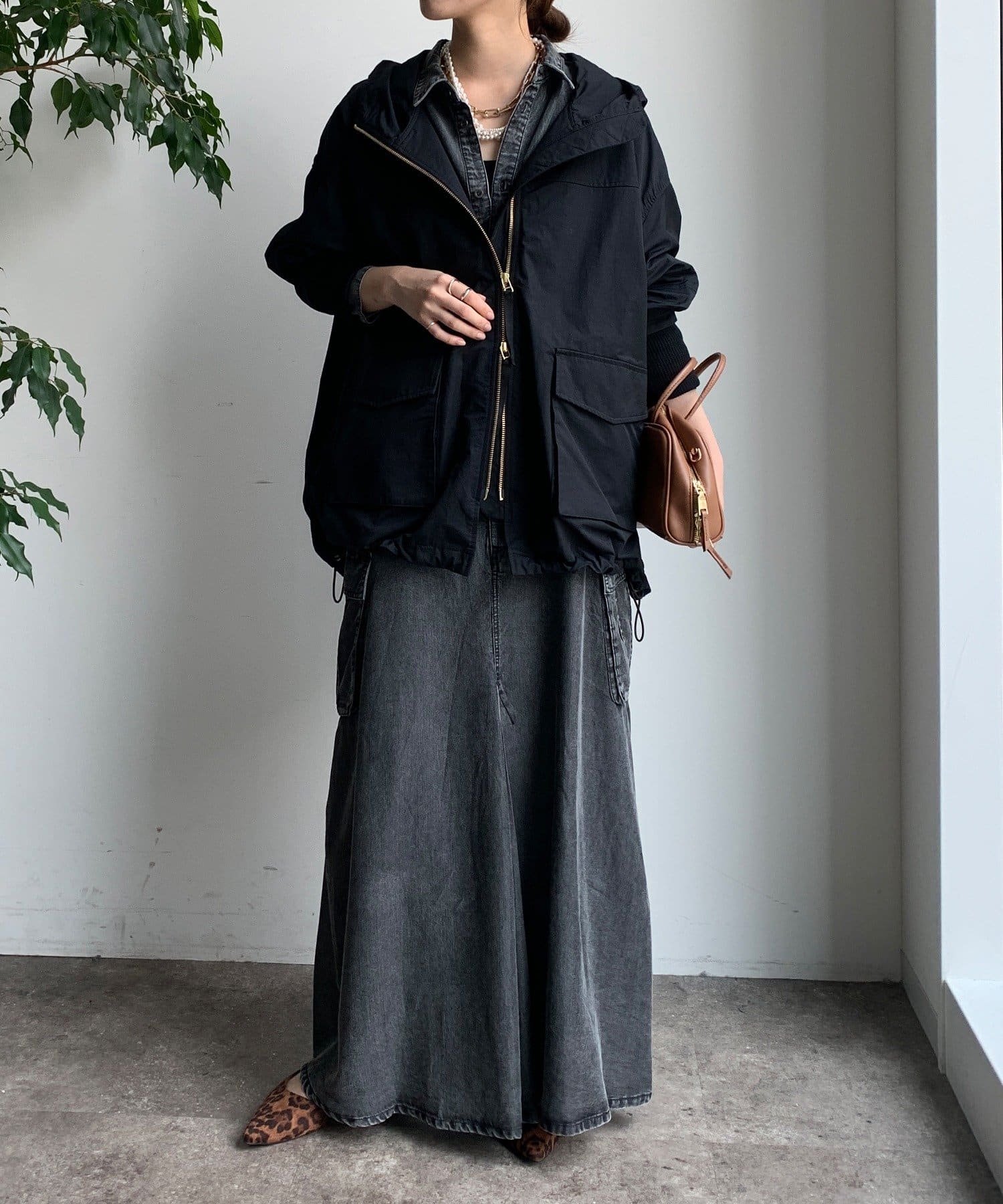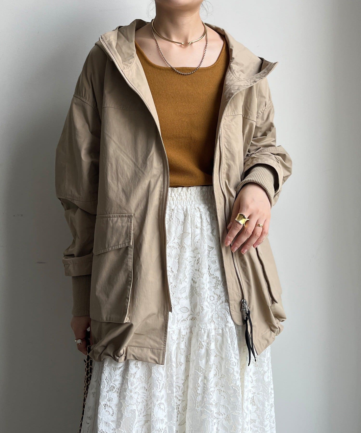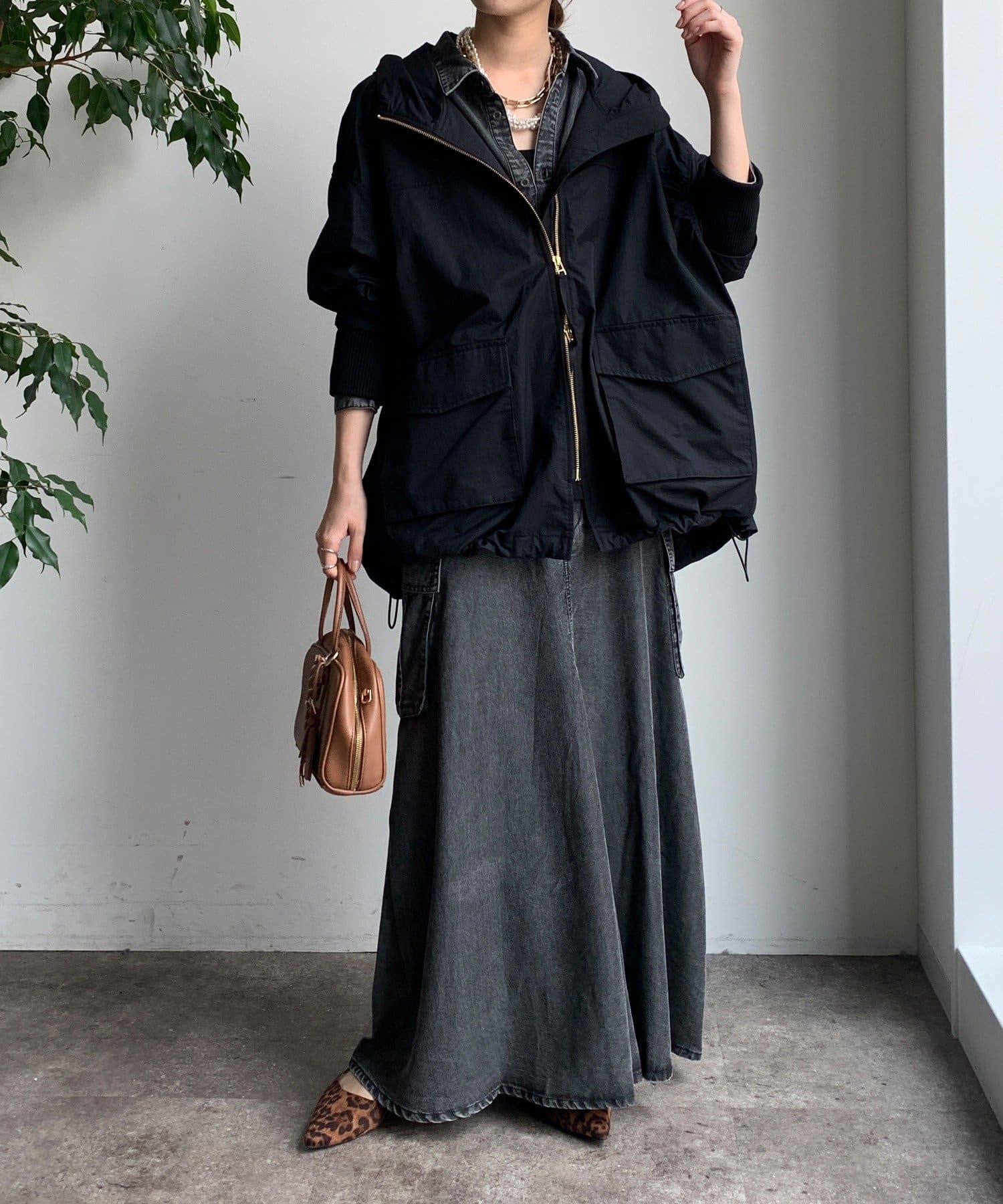 フロントのダブルジップが、着こなしの幅を広げます。ちょっとしたお出かけや、ショッピングなど、デイリーユースに最適。