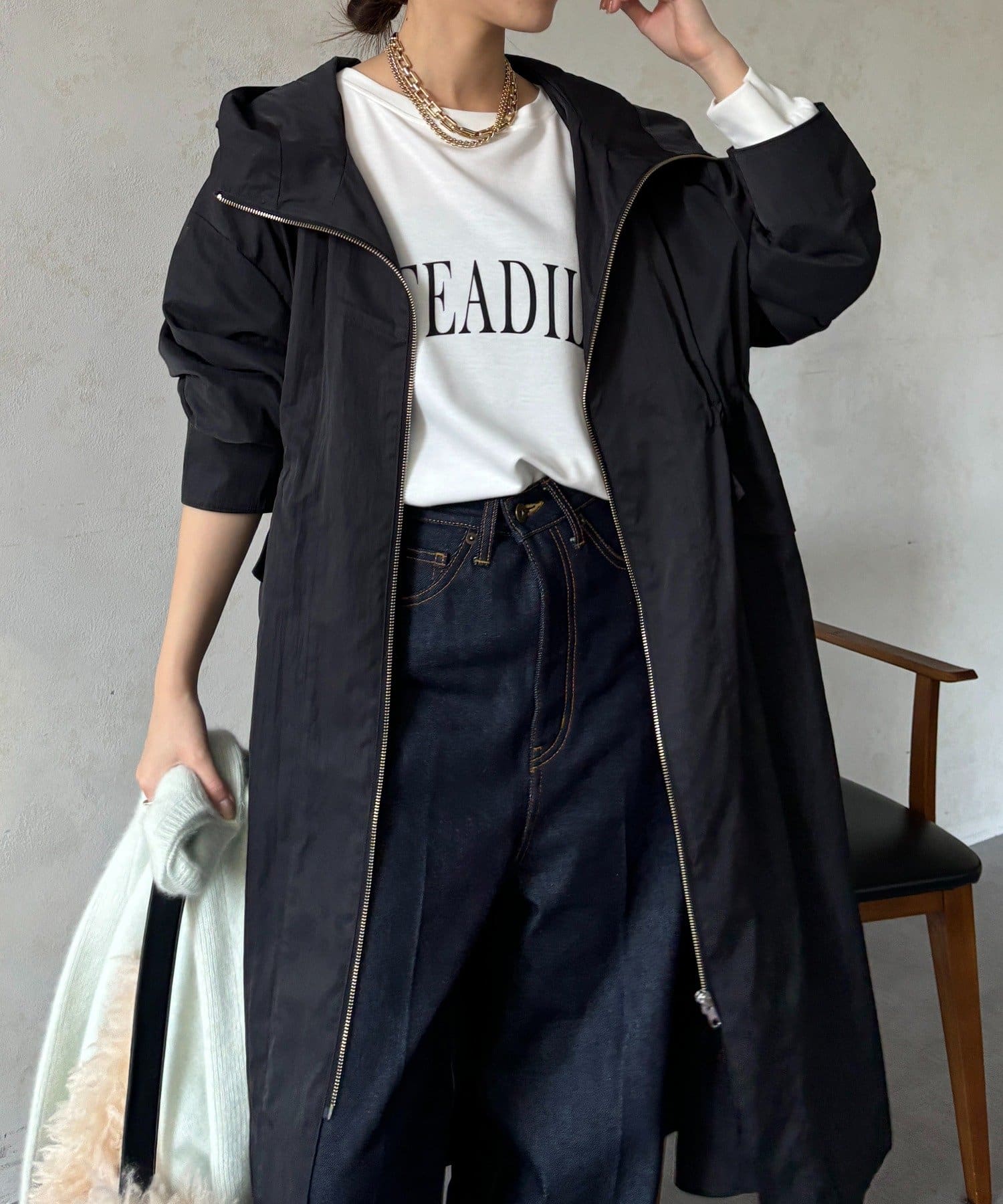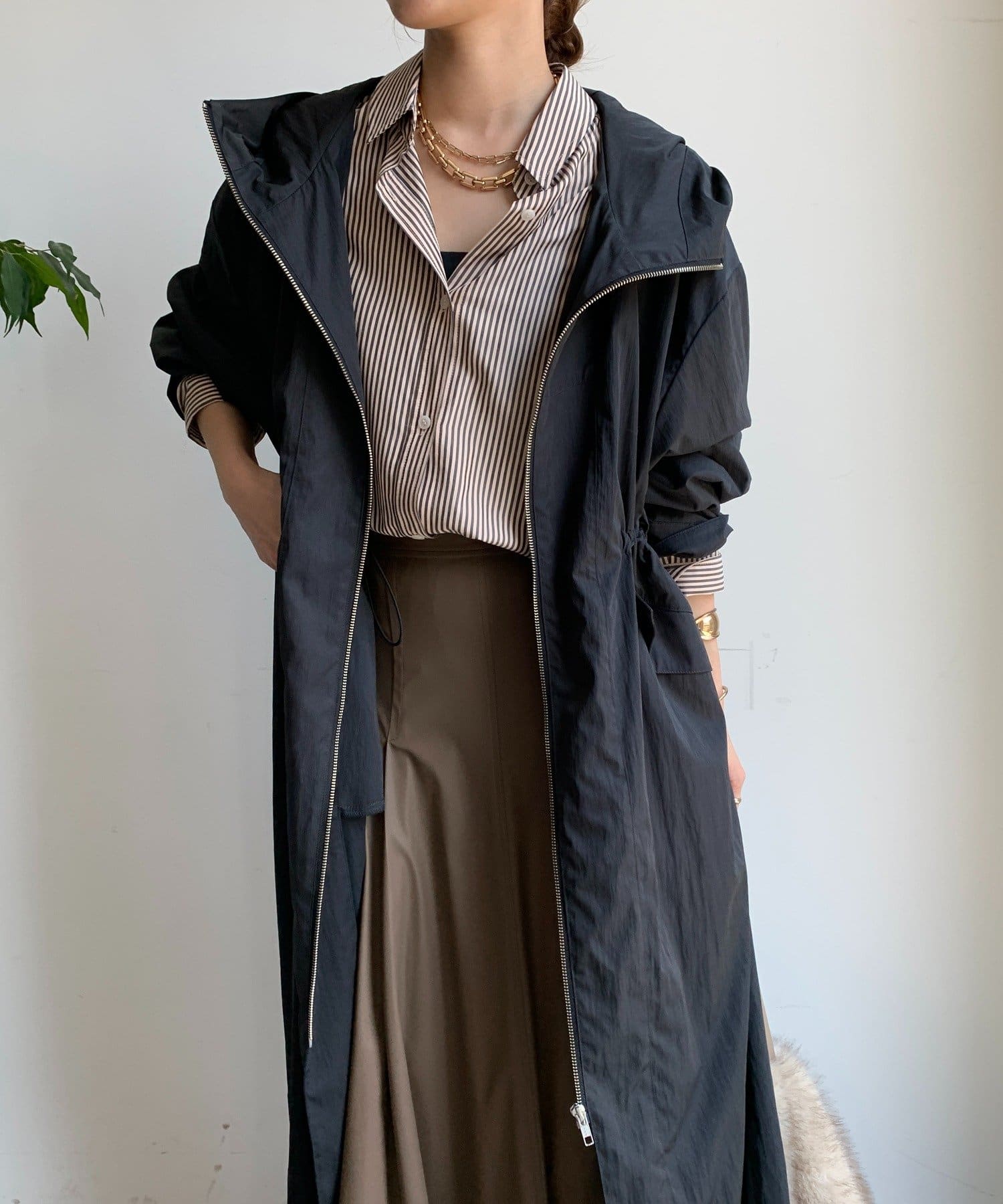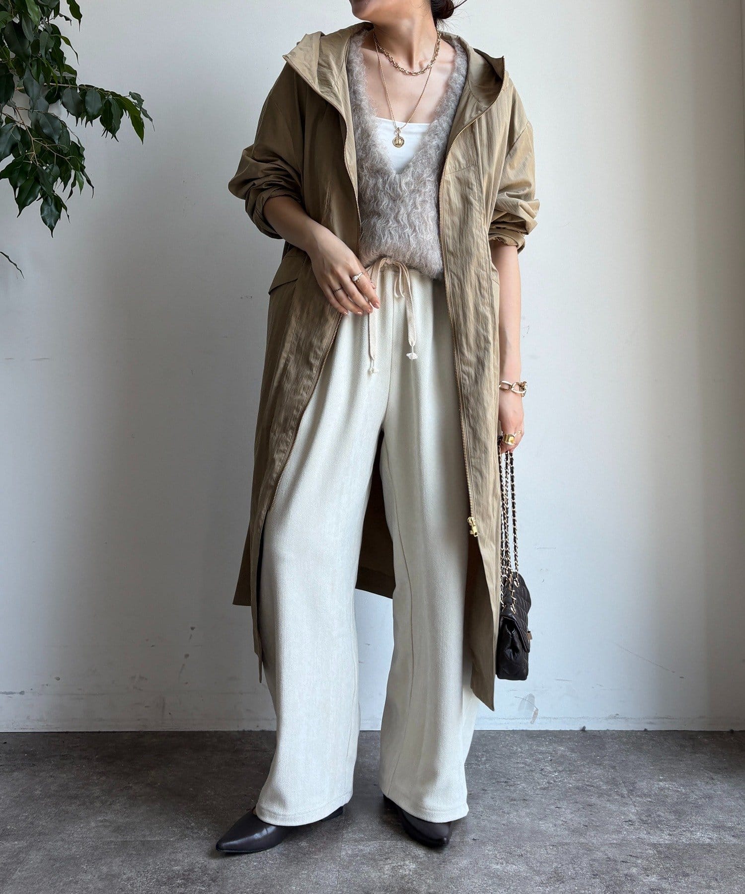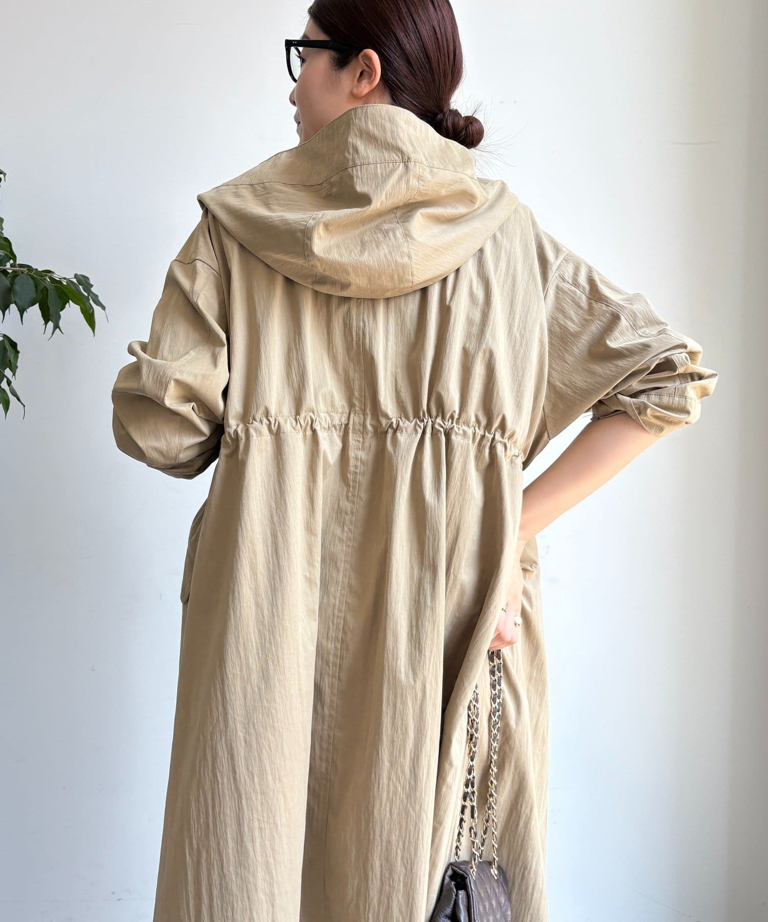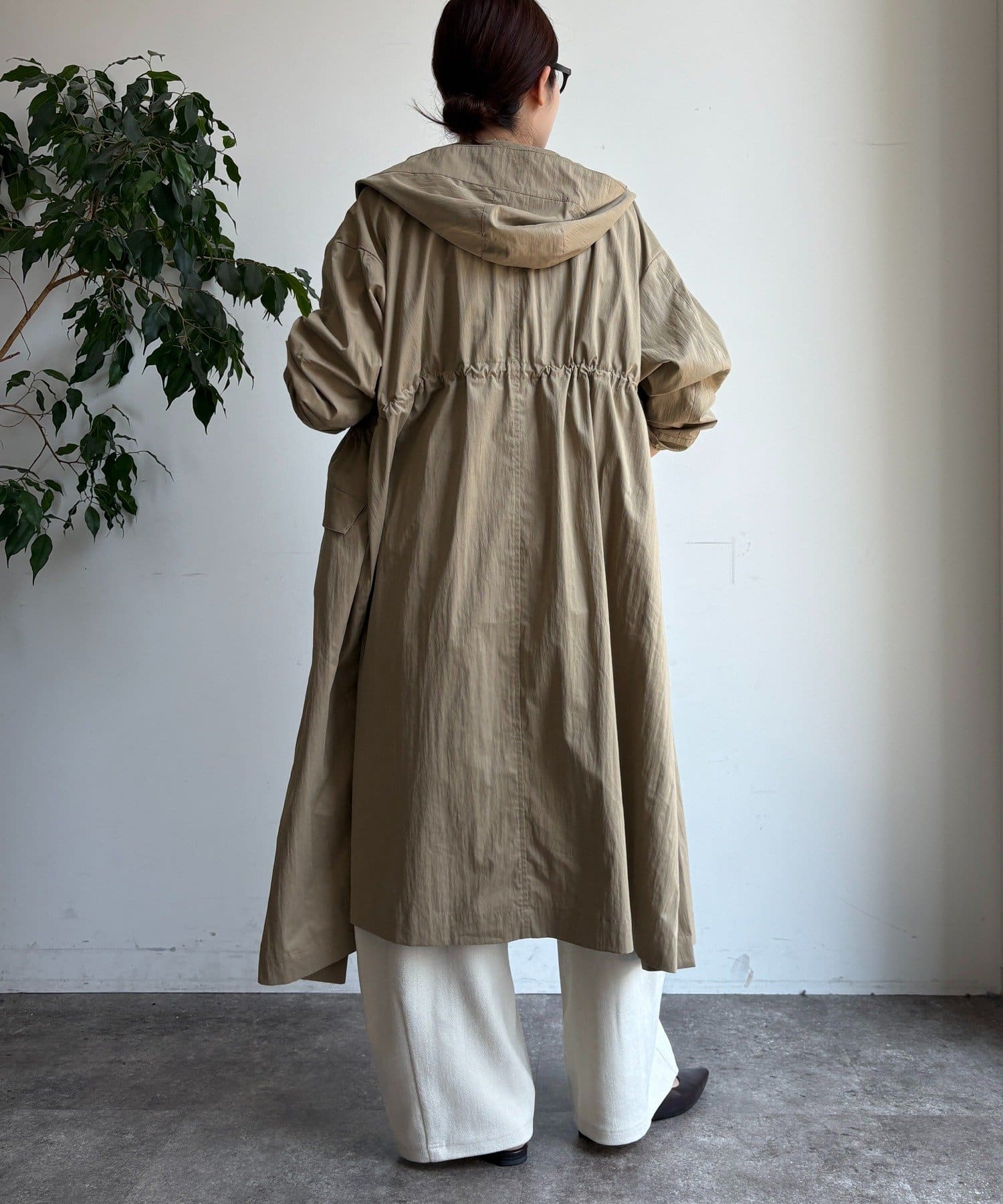 内側のドロストを調整することでウエストマークしたシルエットでも着用可能です!