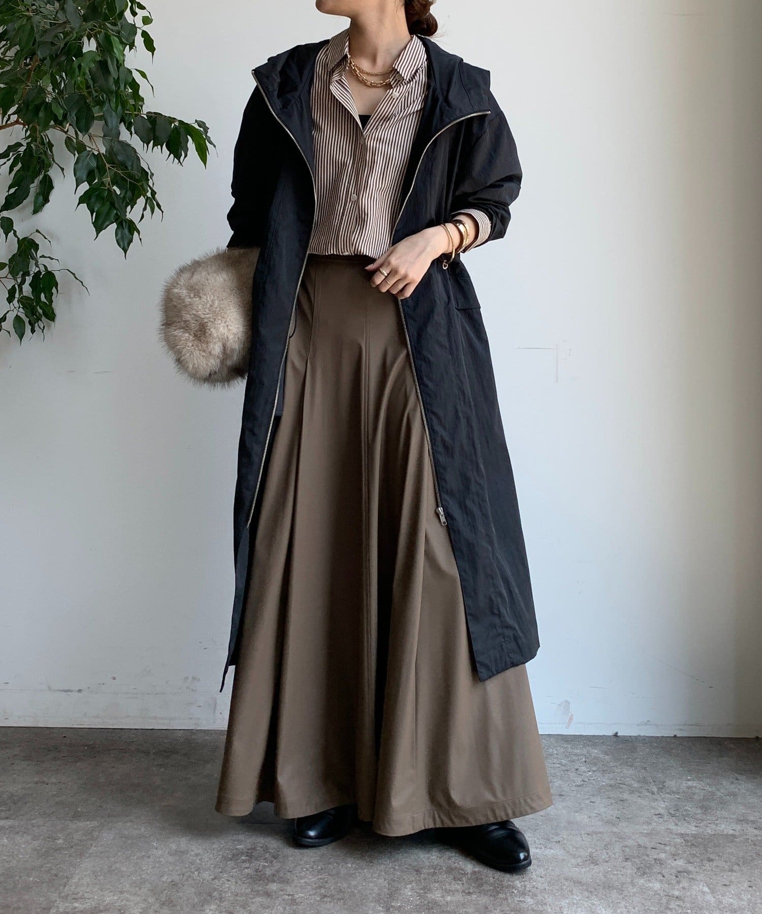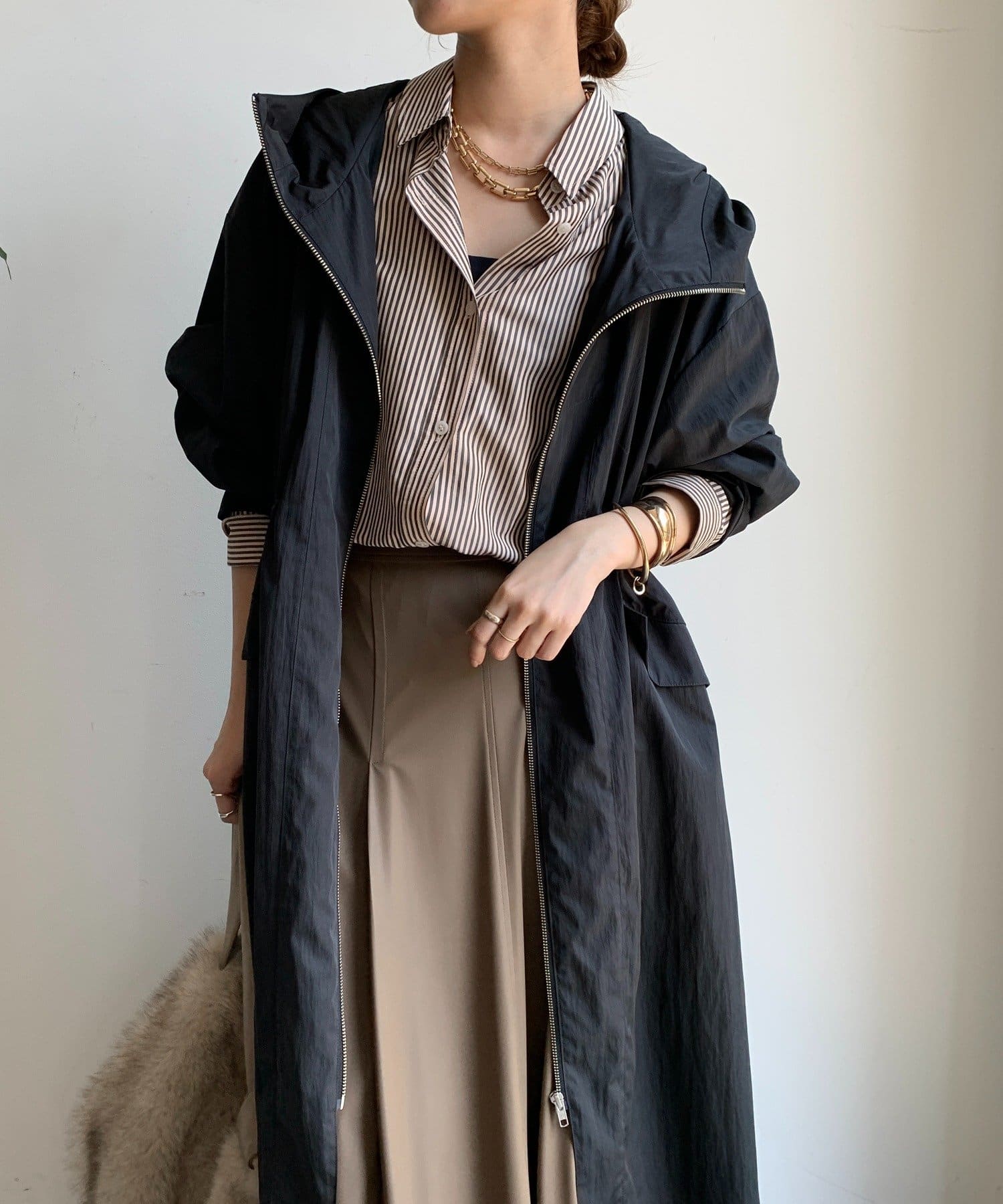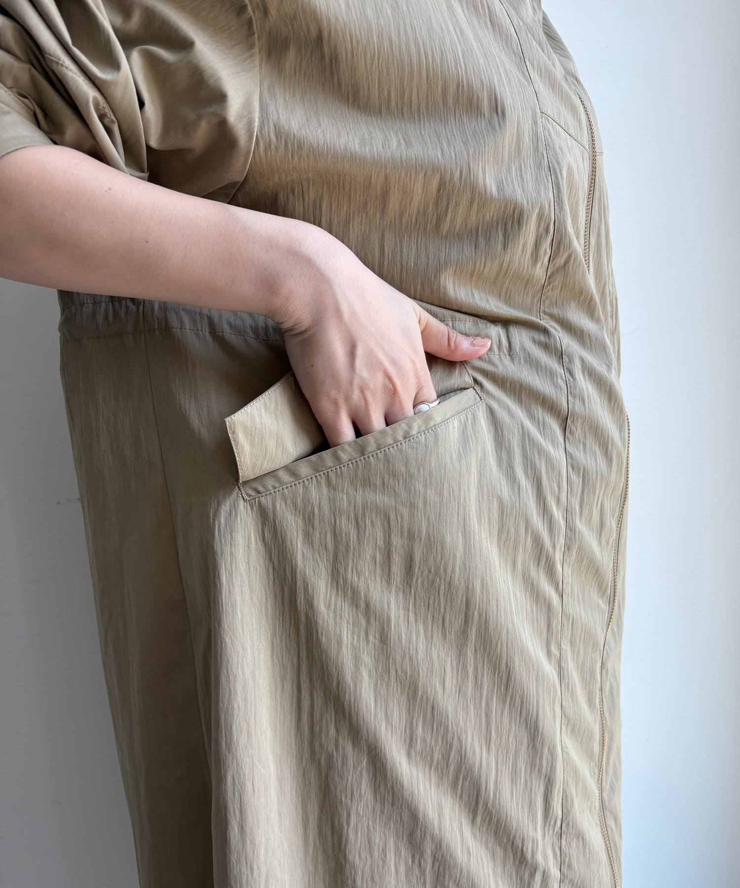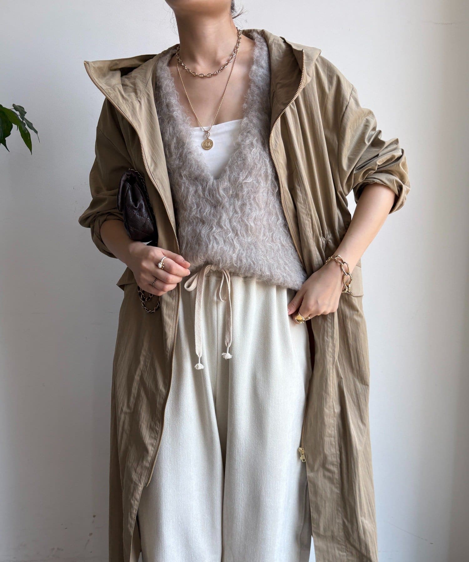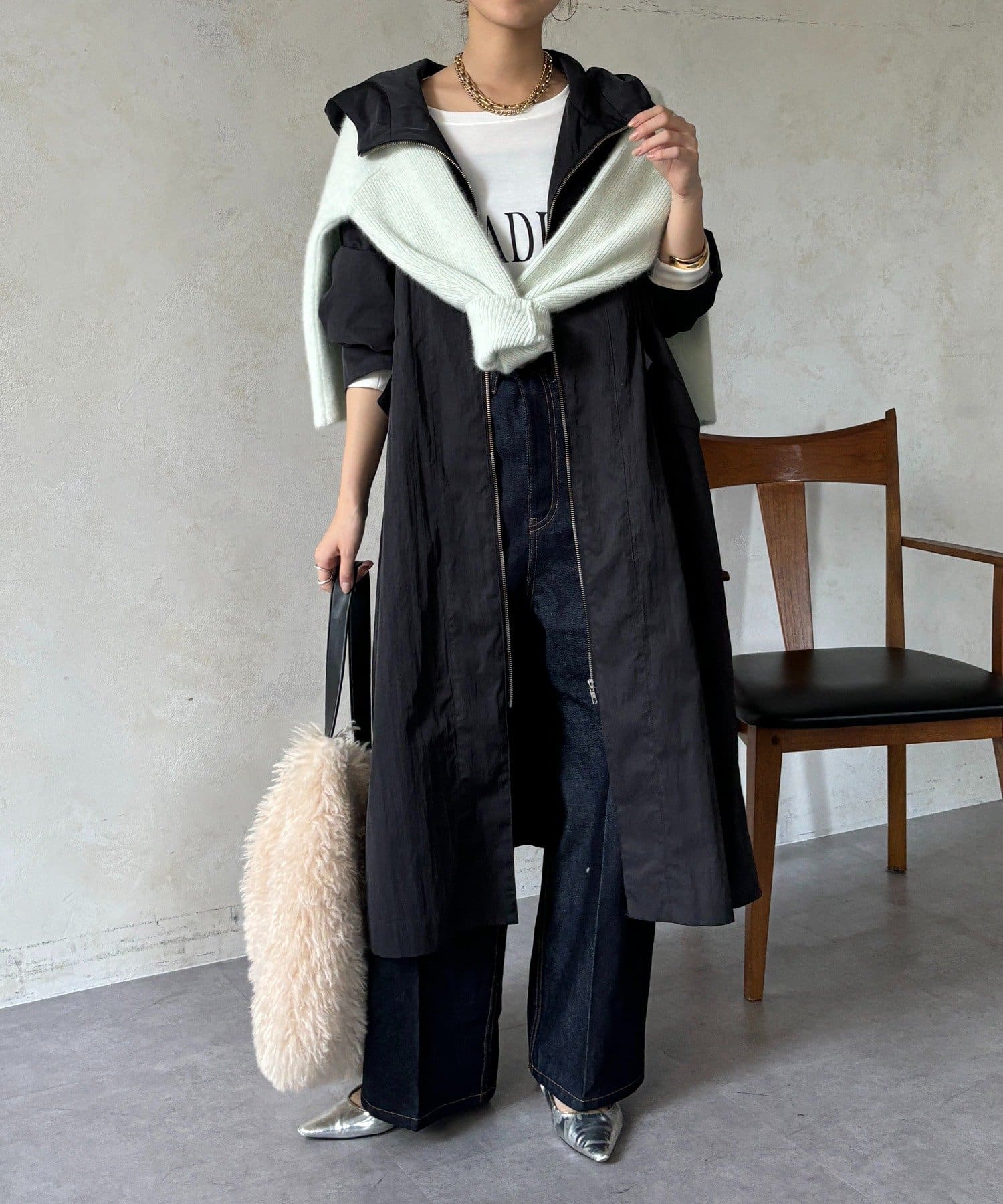 内側のドロストを調整することでウエストマークしたシルエットでも着用可能です!