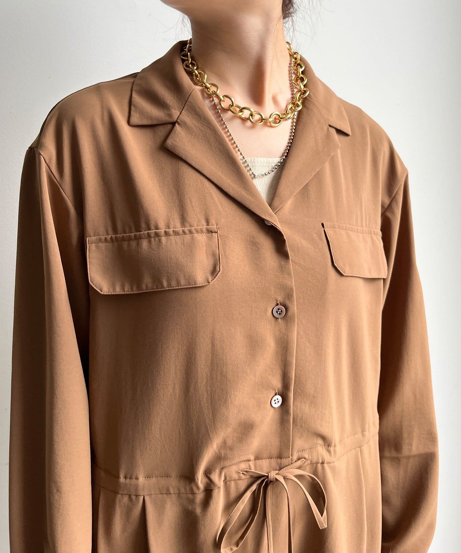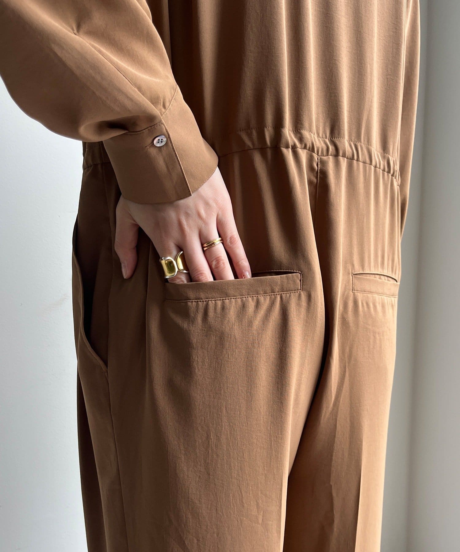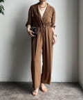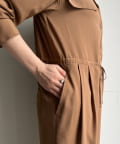 1枚でさらっと着こなすのはもちろん、お袖を抜いてウエストで結ぶとデザインパンツのような着こなしも。