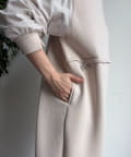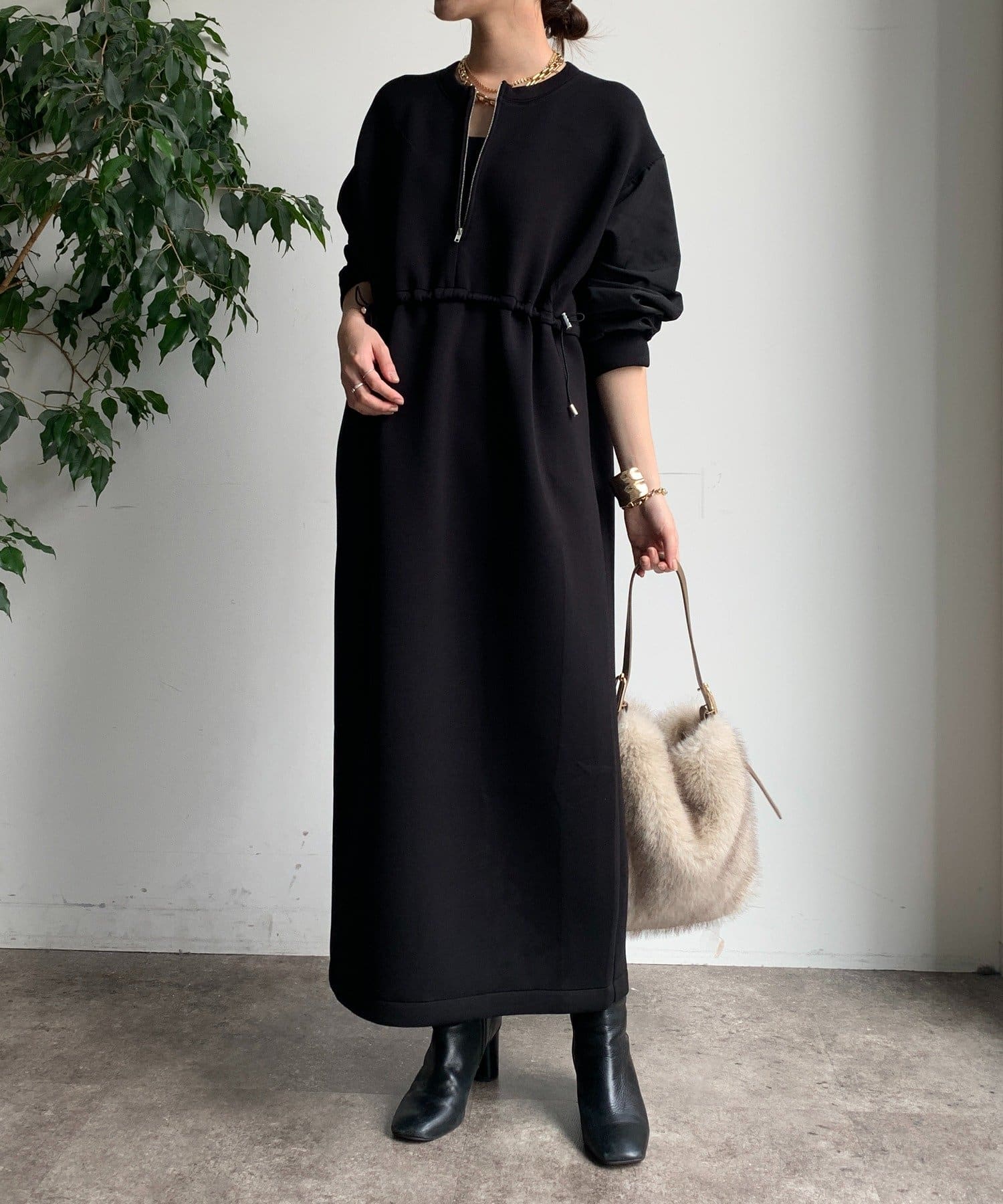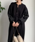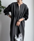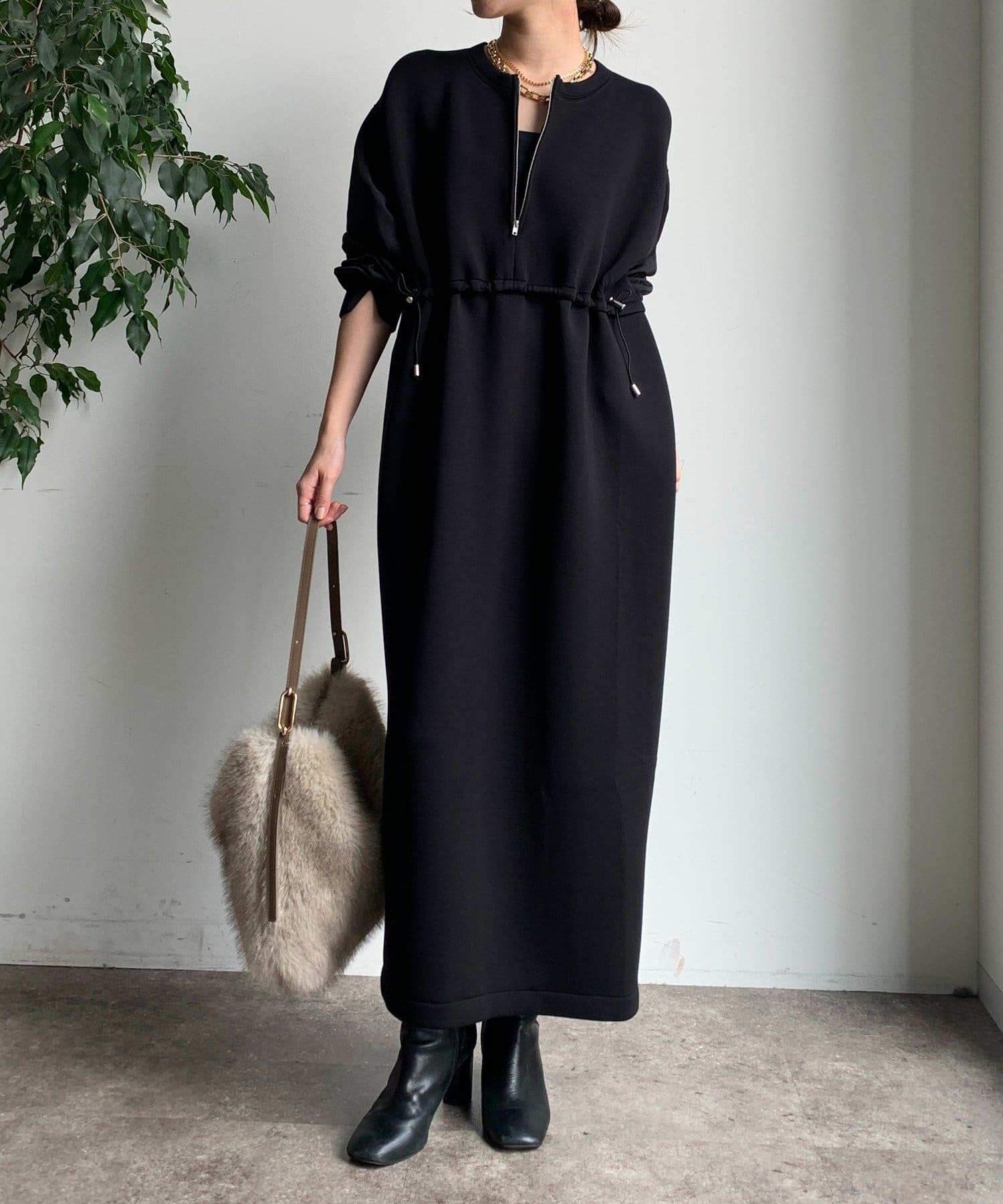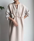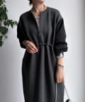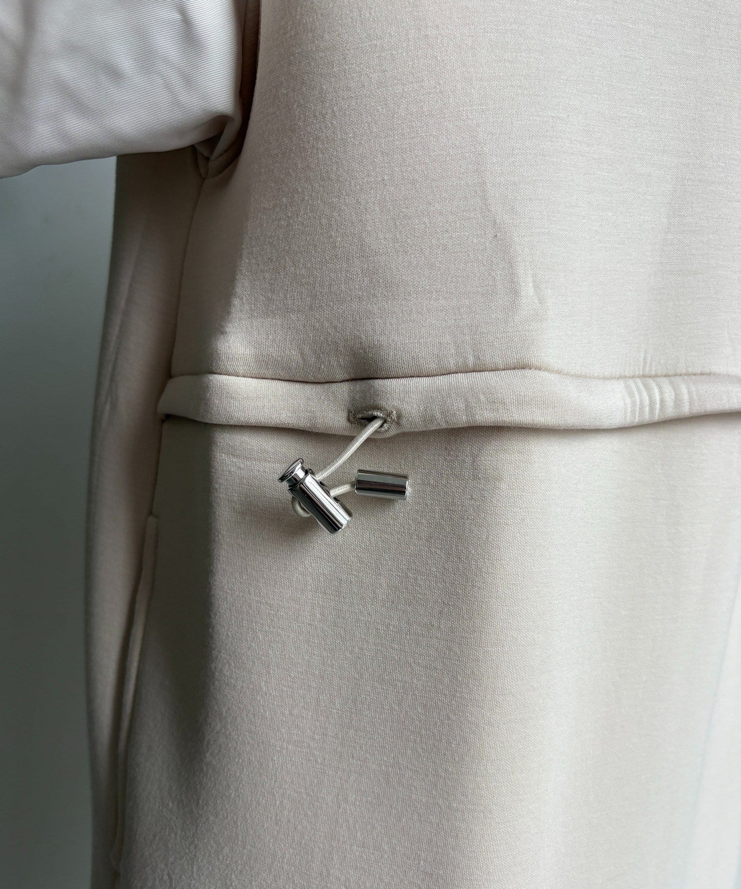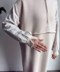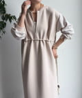 ボリューム感+切り替えデザインを施したお袖のデザインと、ウエスト部分のドロストデザインがポイントの1着。