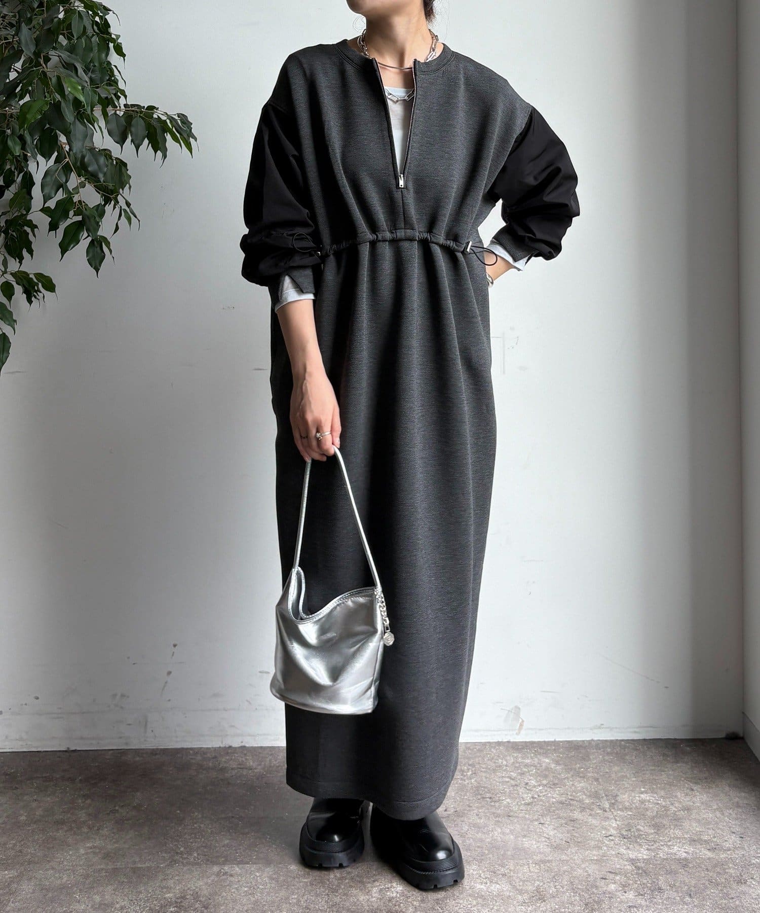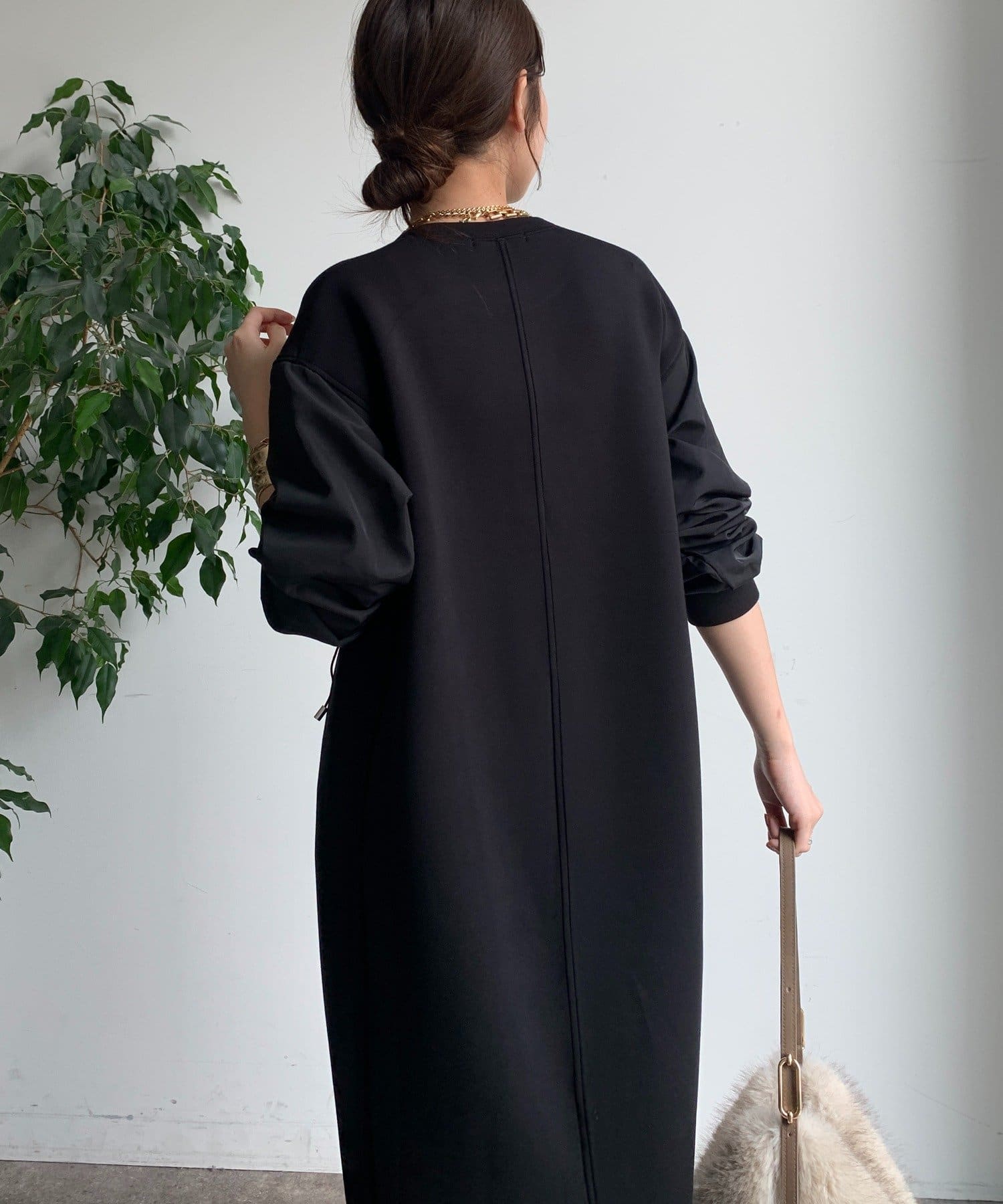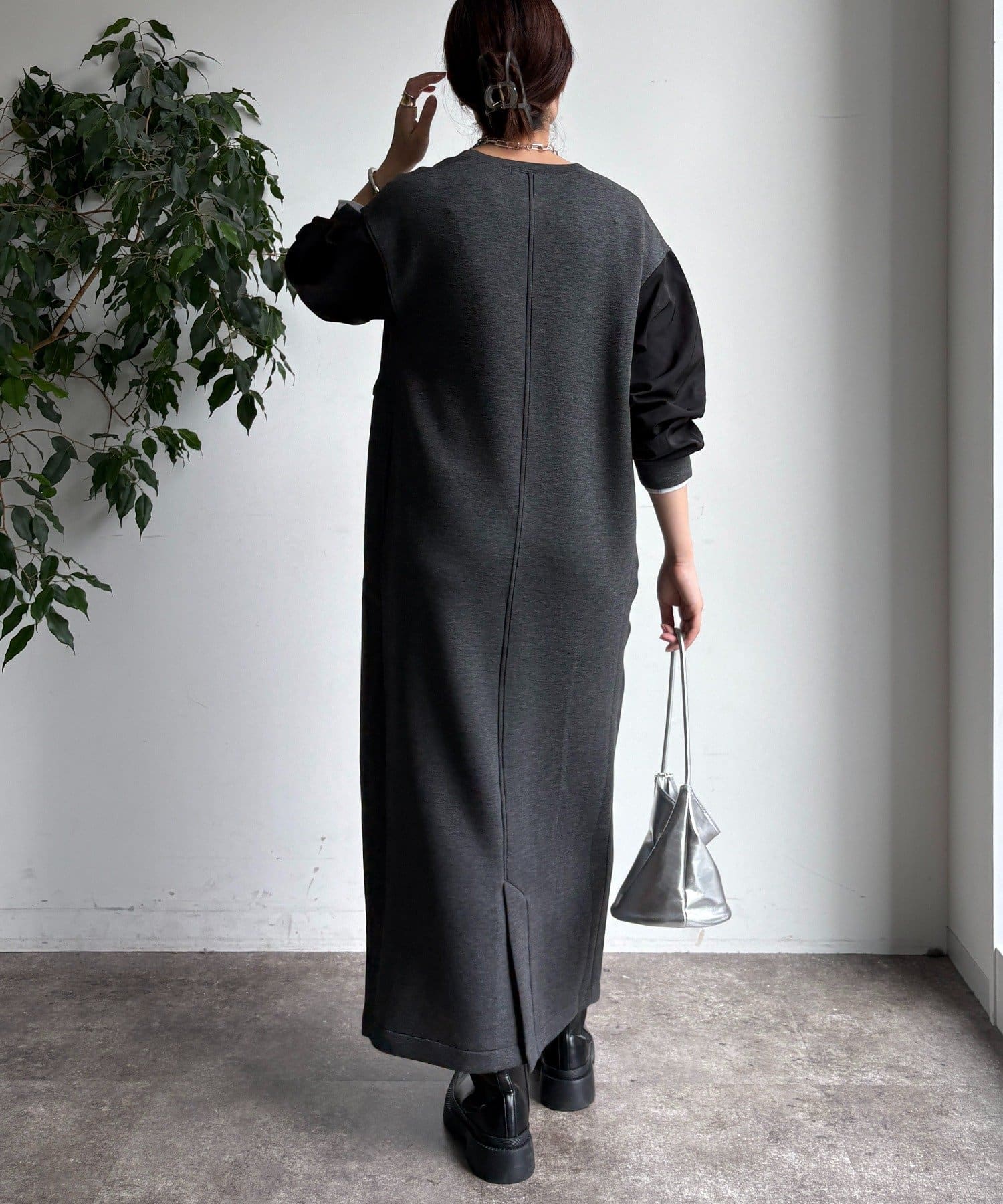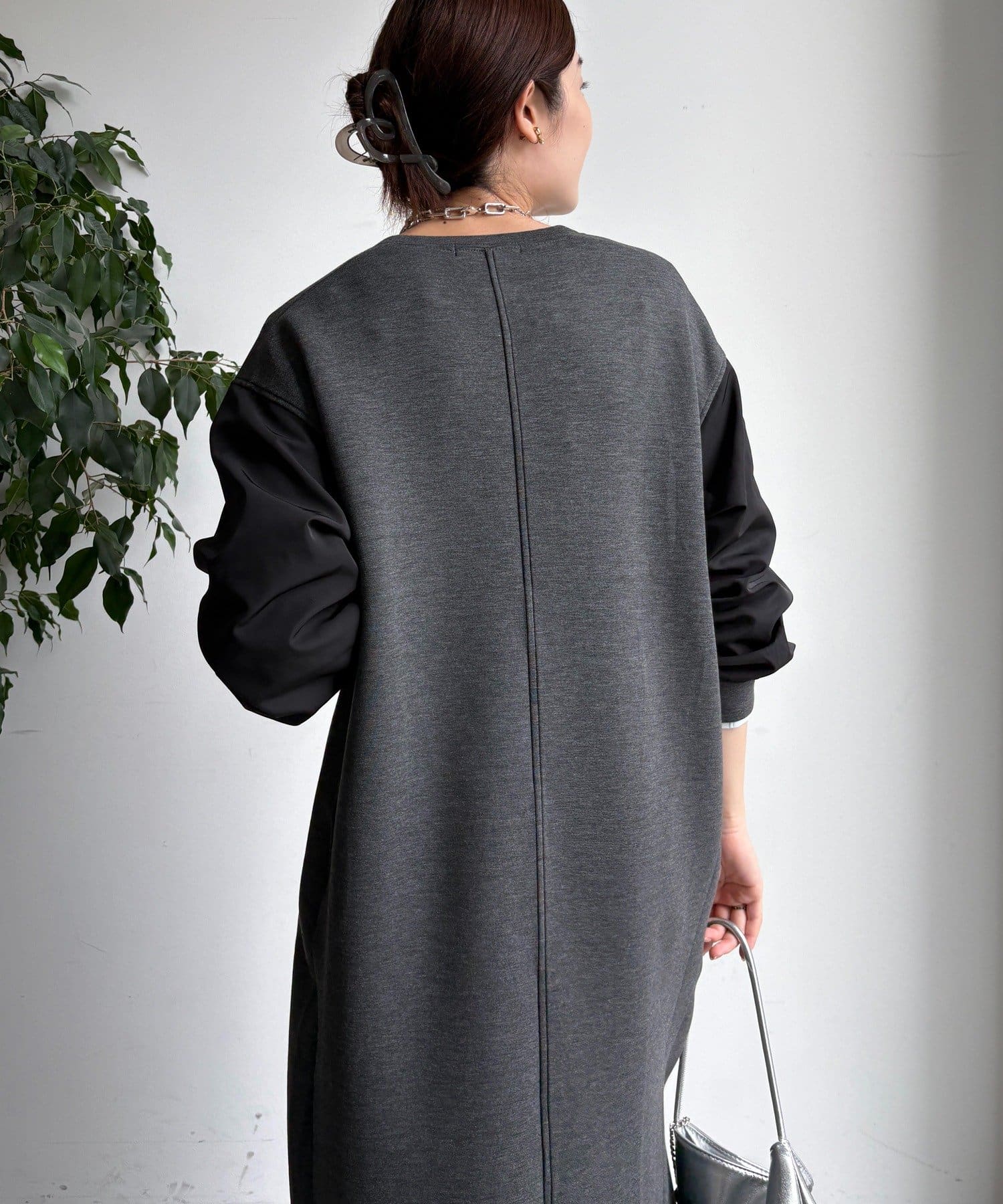 【完売カラー再追加!】袖異素材切替ダンボールワンピース