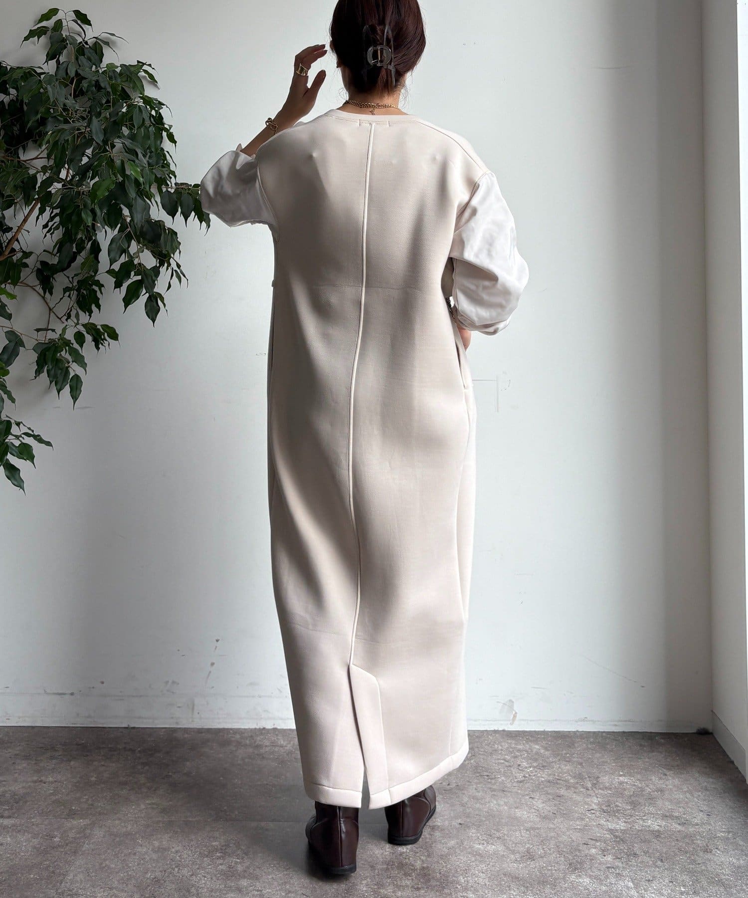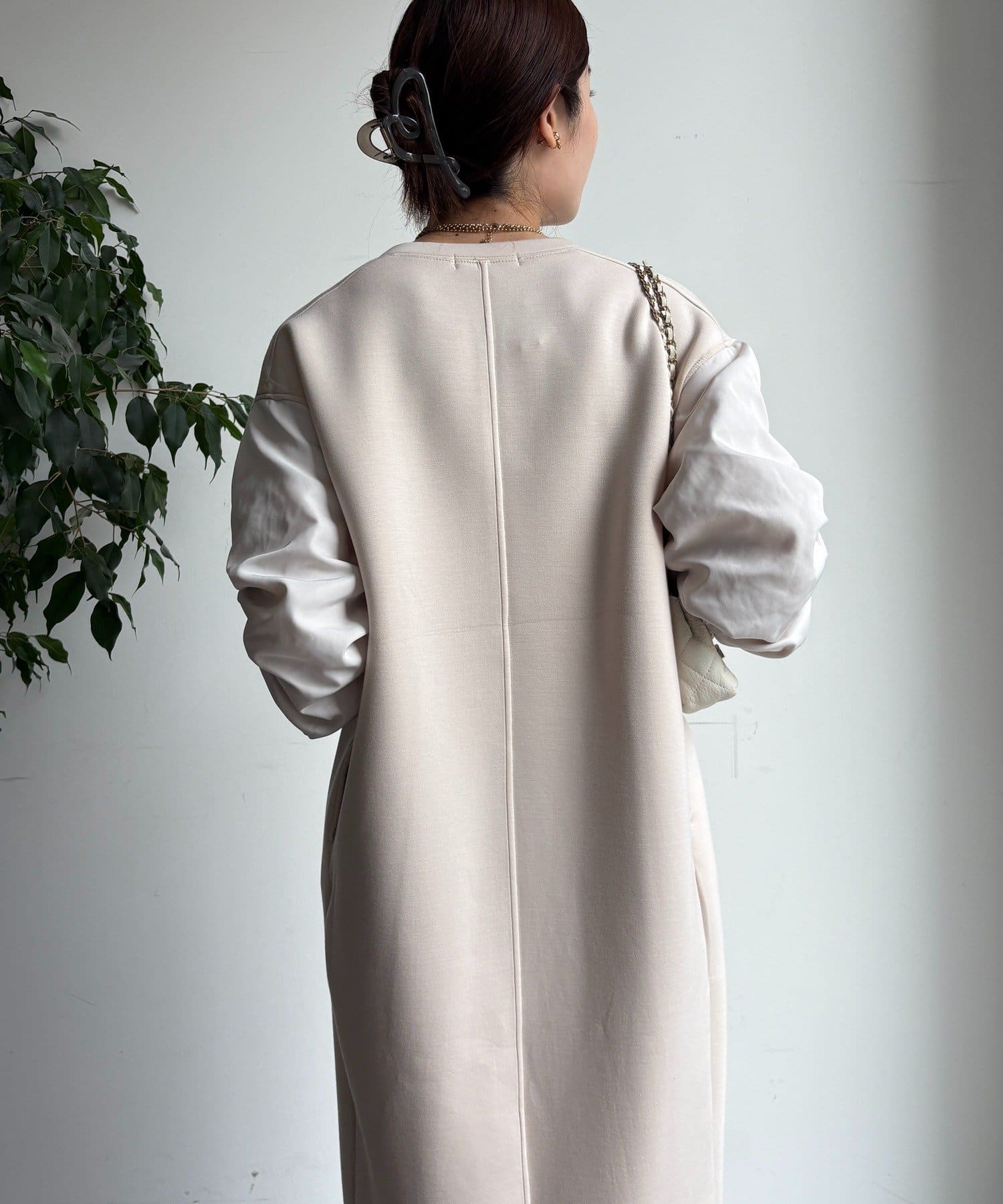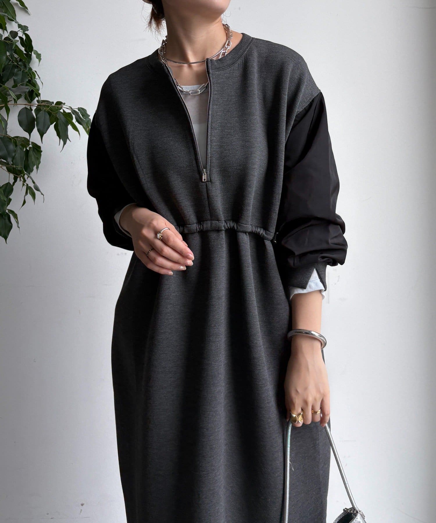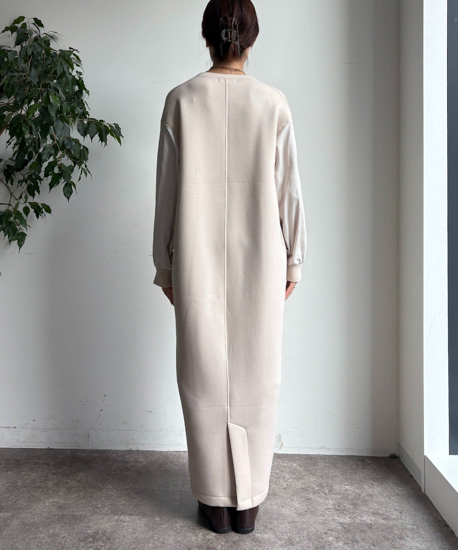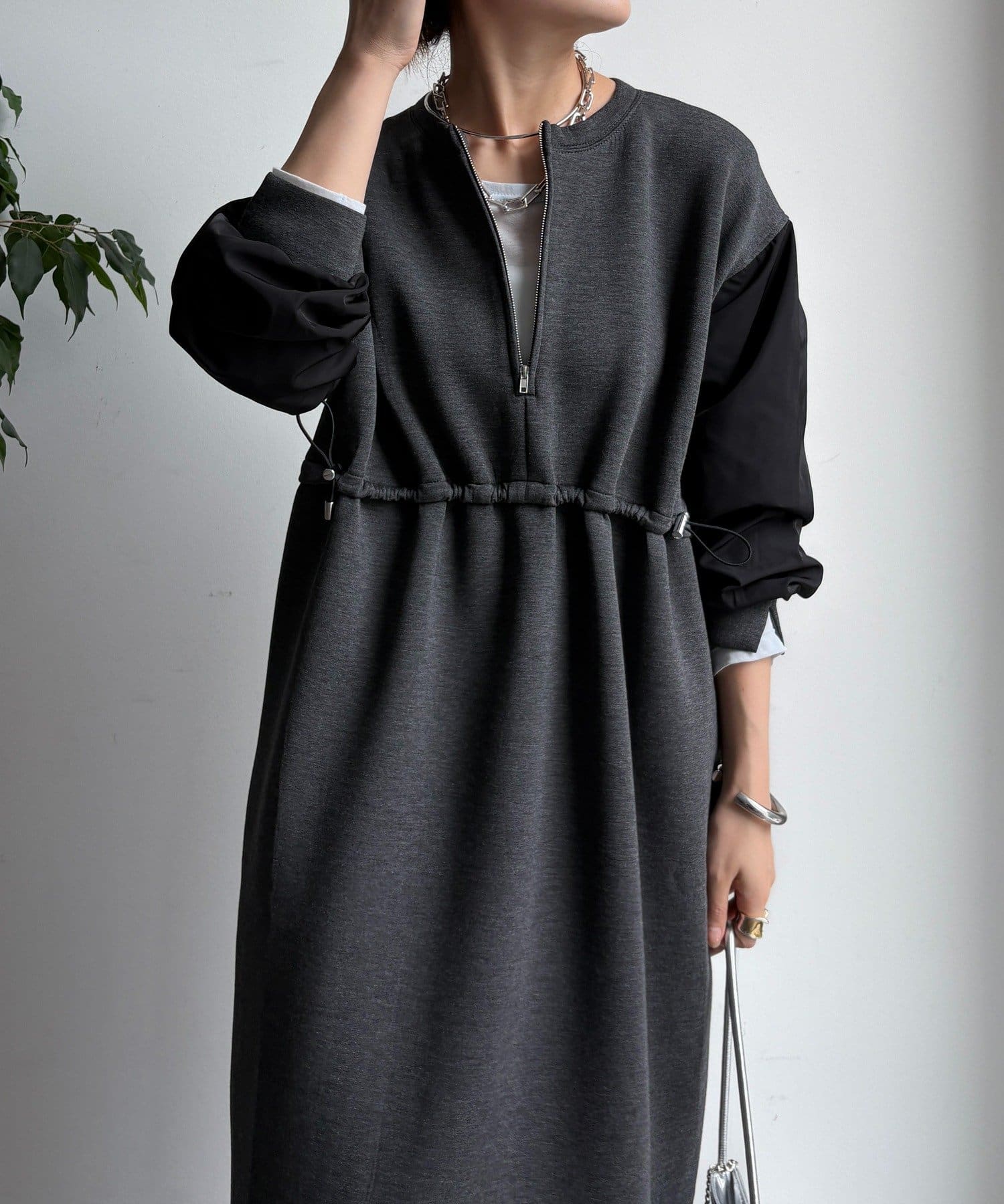 【完売カラー再追加!】袖異素材切替ダンボールワンピース