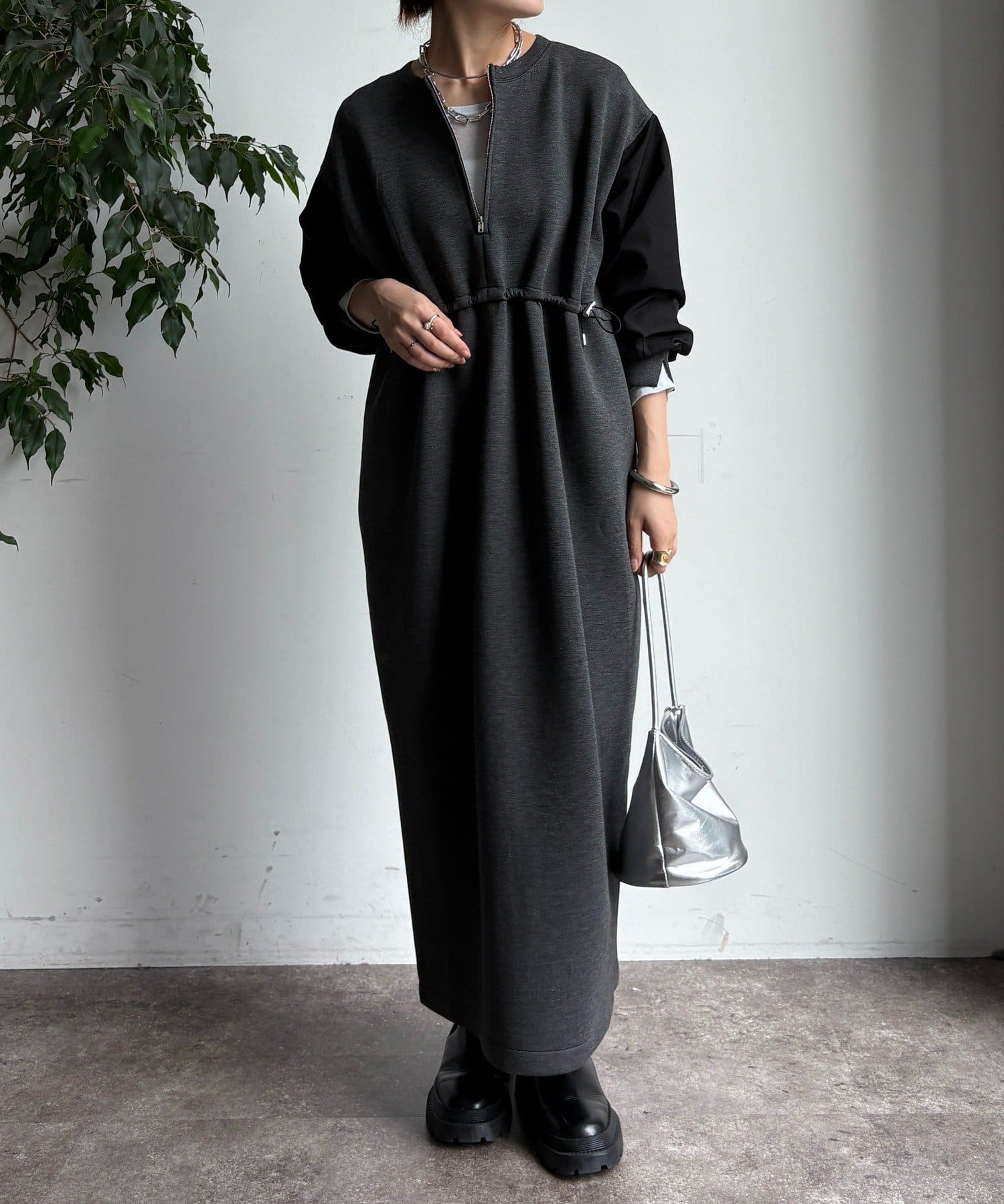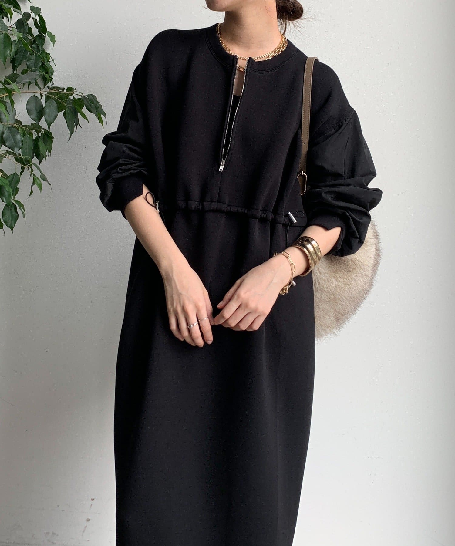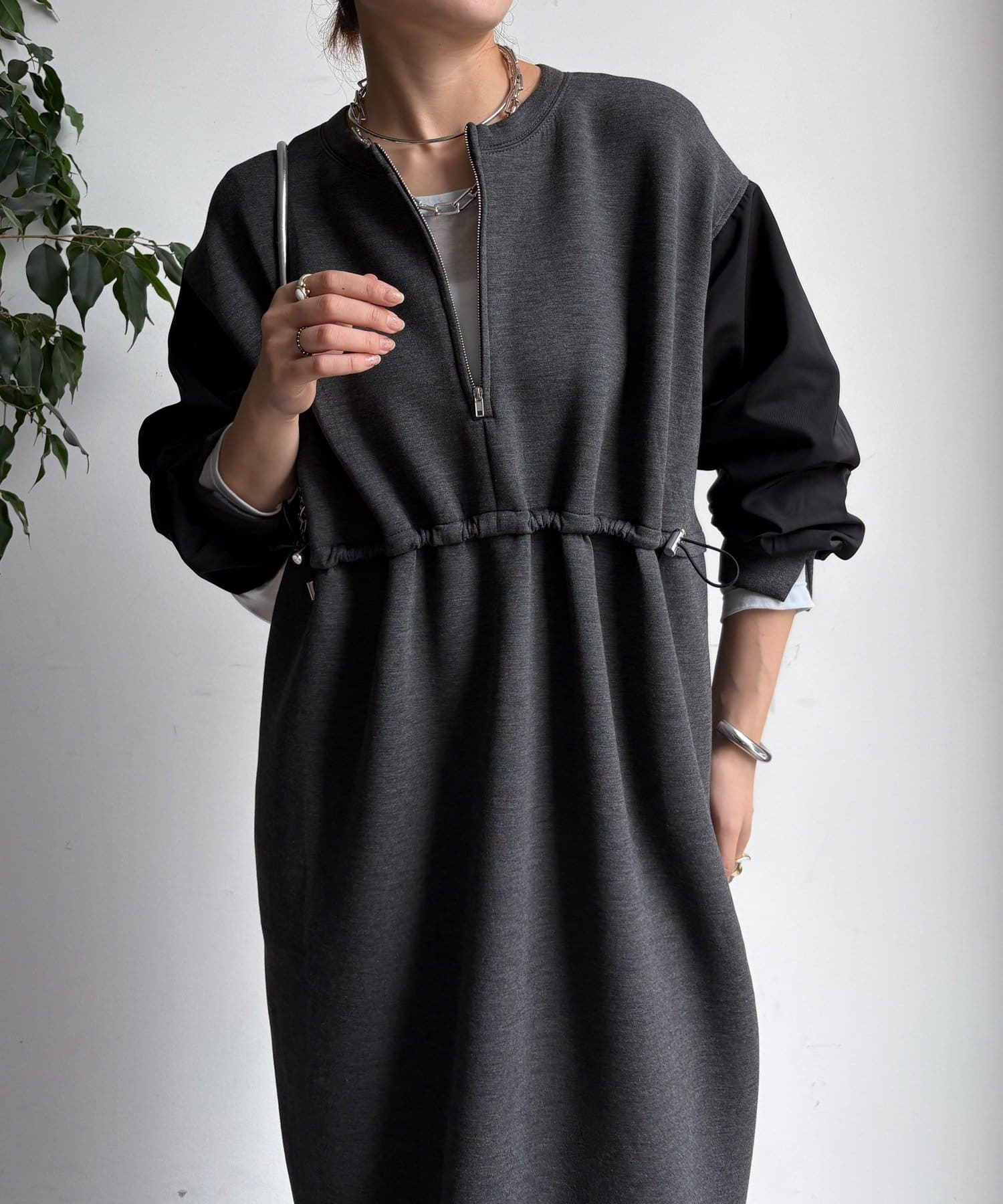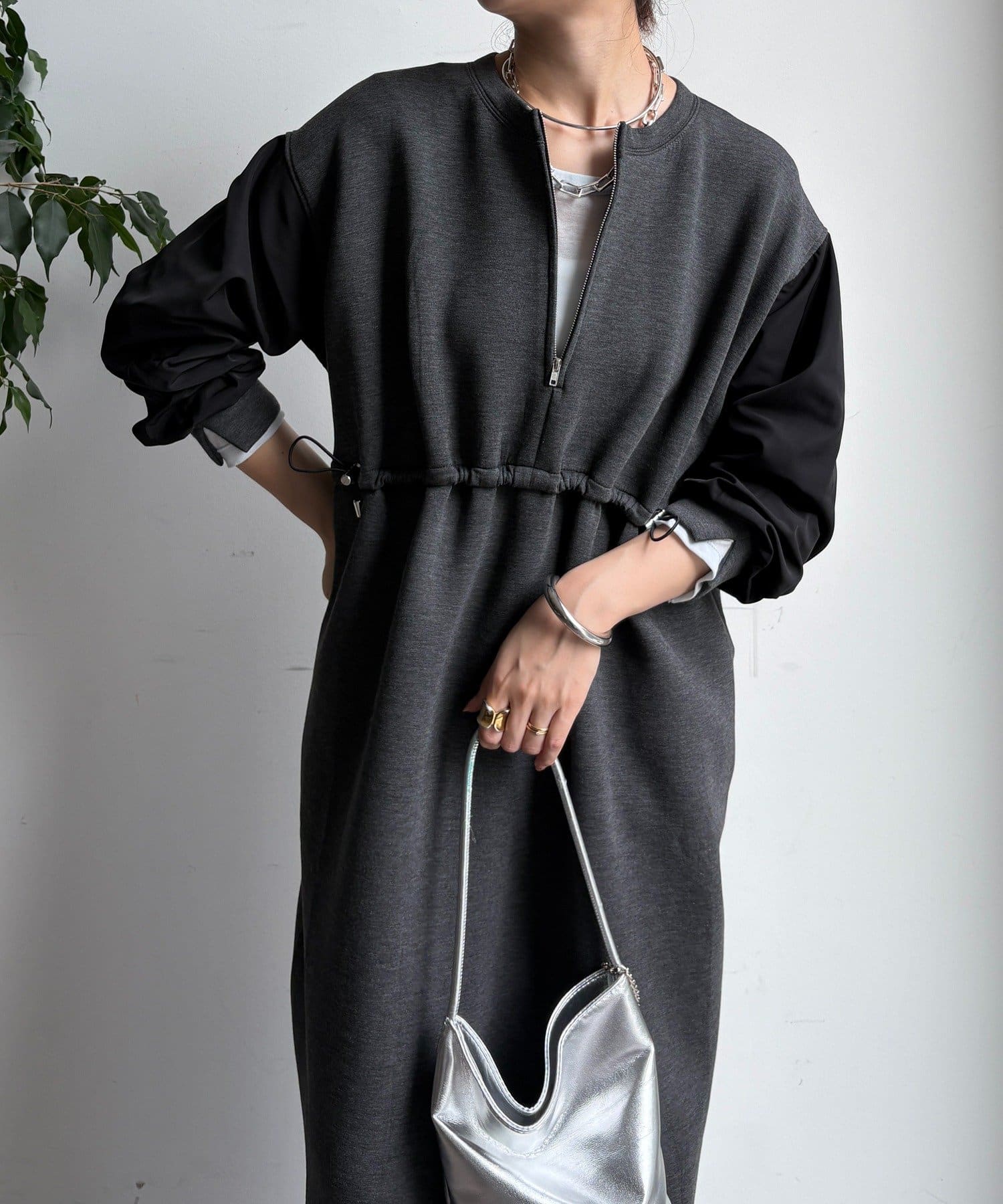 【完売カラー再追加!】袖異素材切替ダンボールワンピース