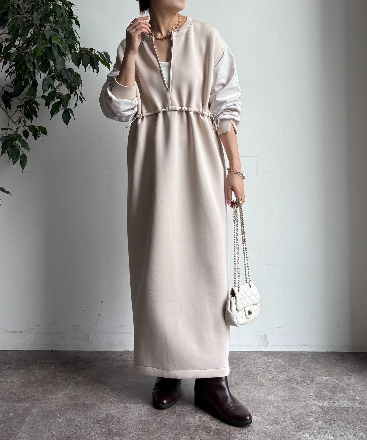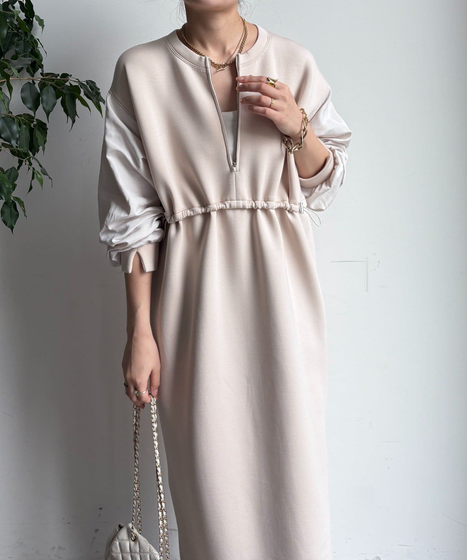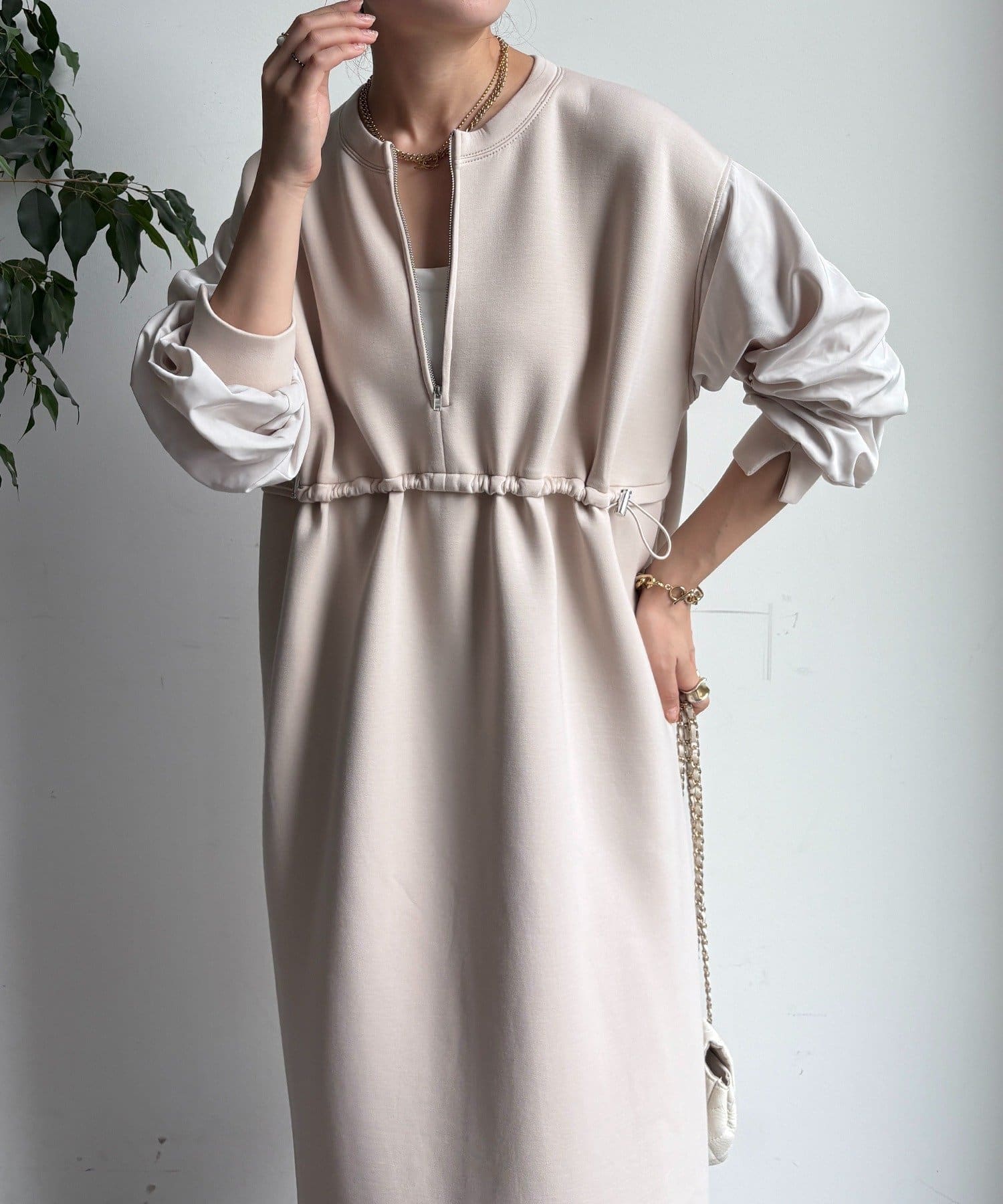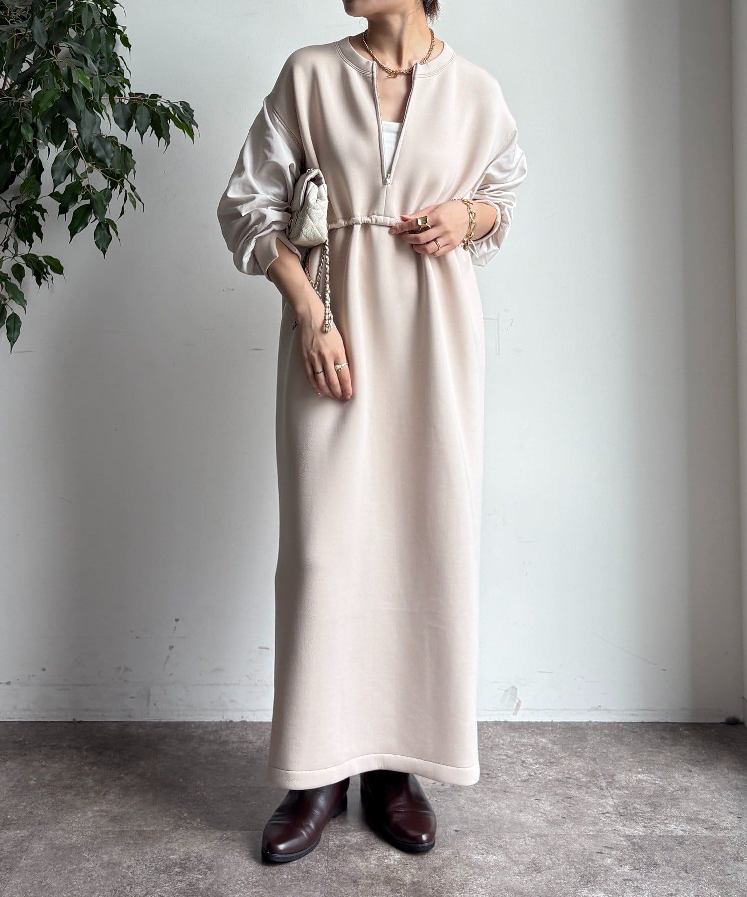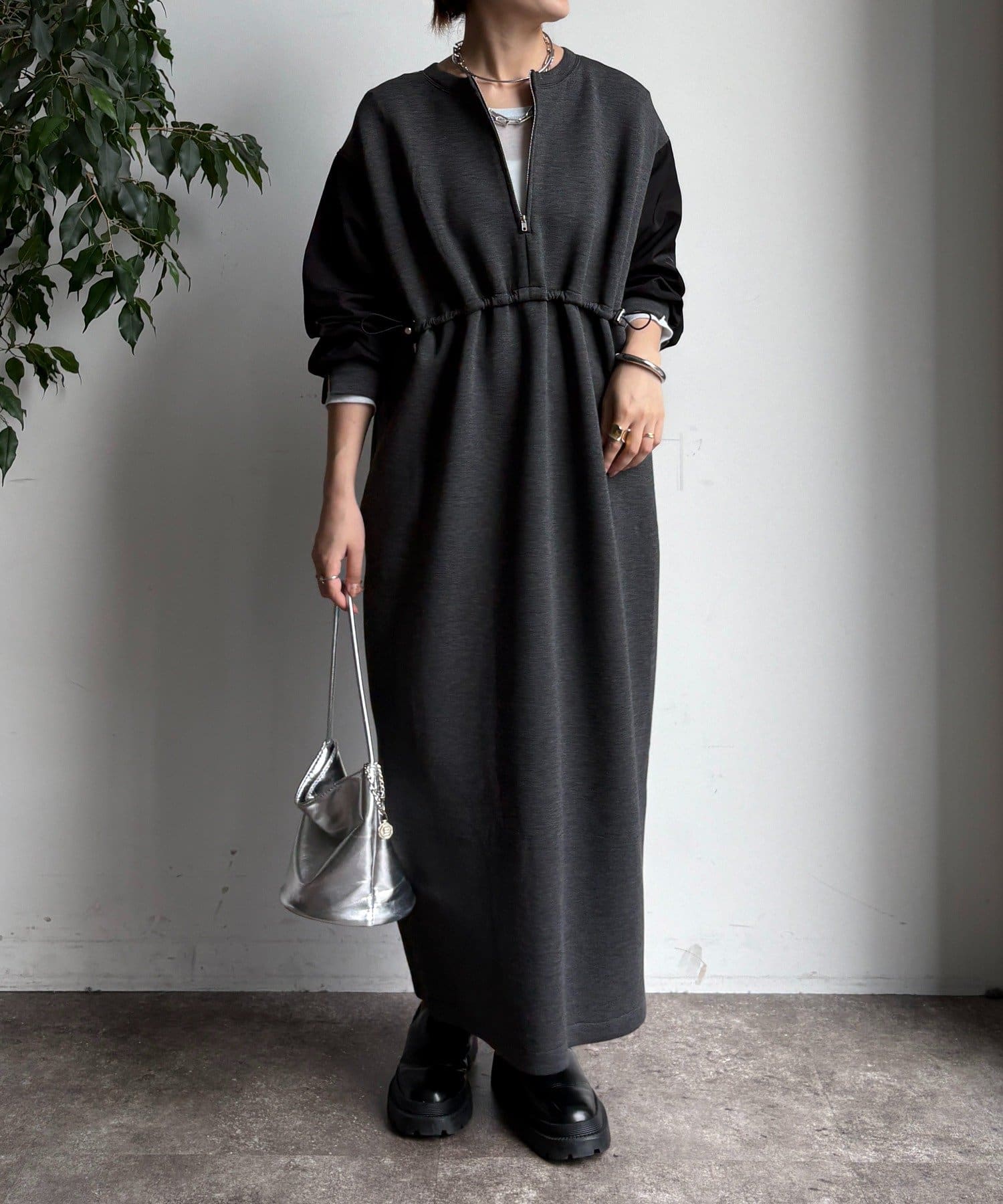【完売カラー再追加!】袖異素材切替ダンボールワンピース