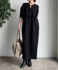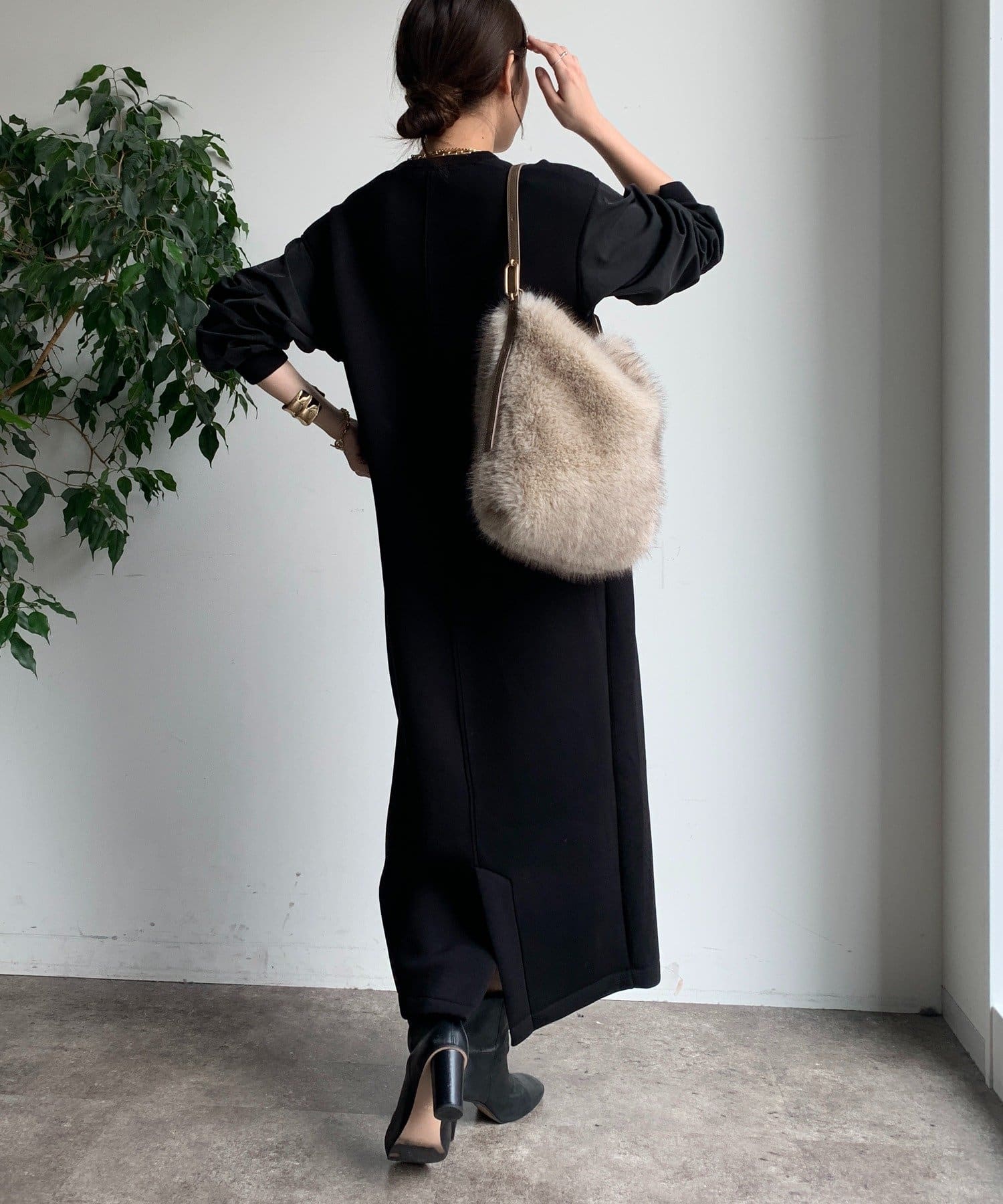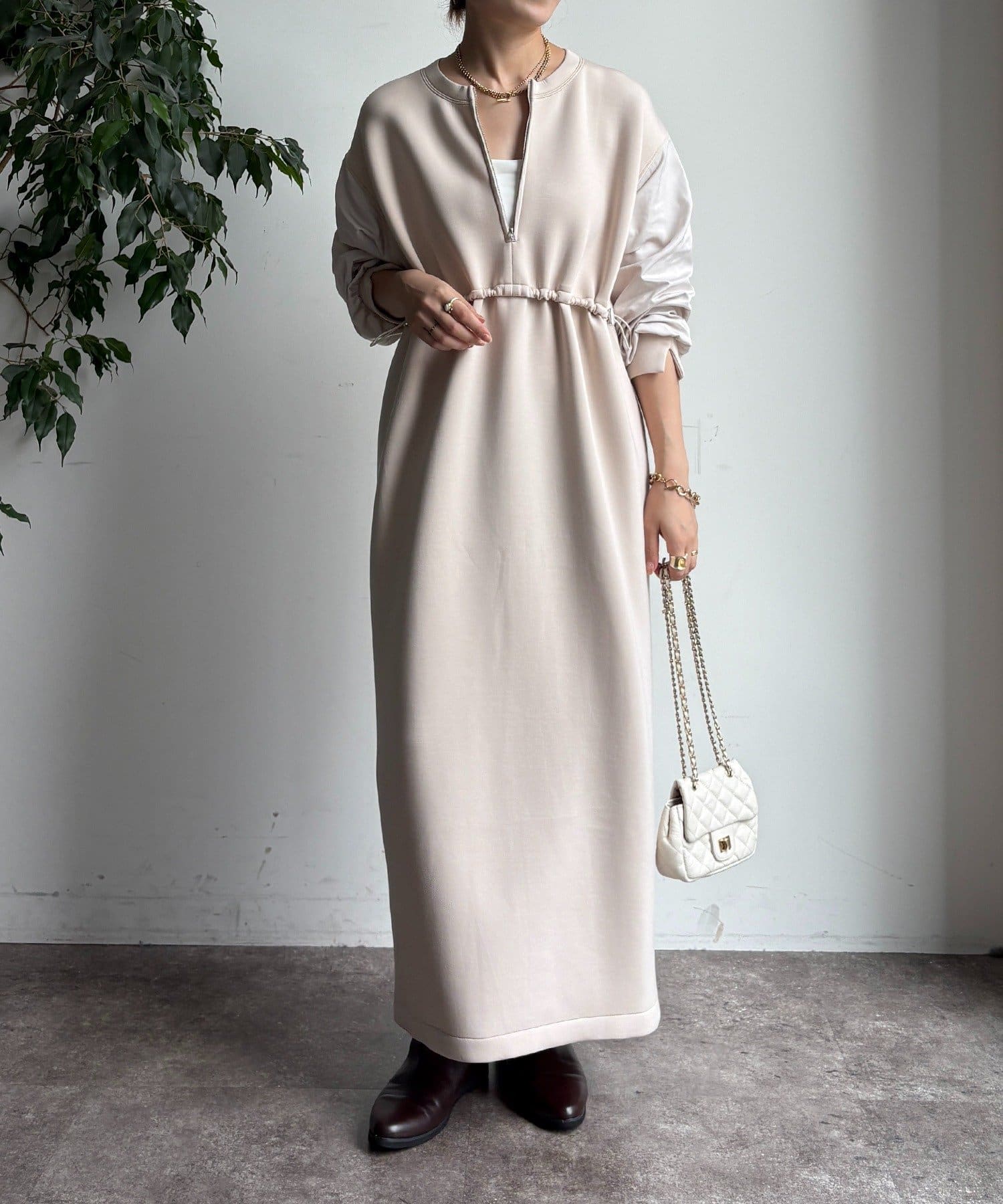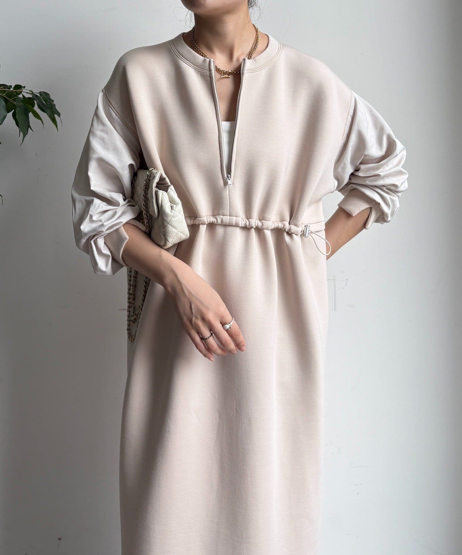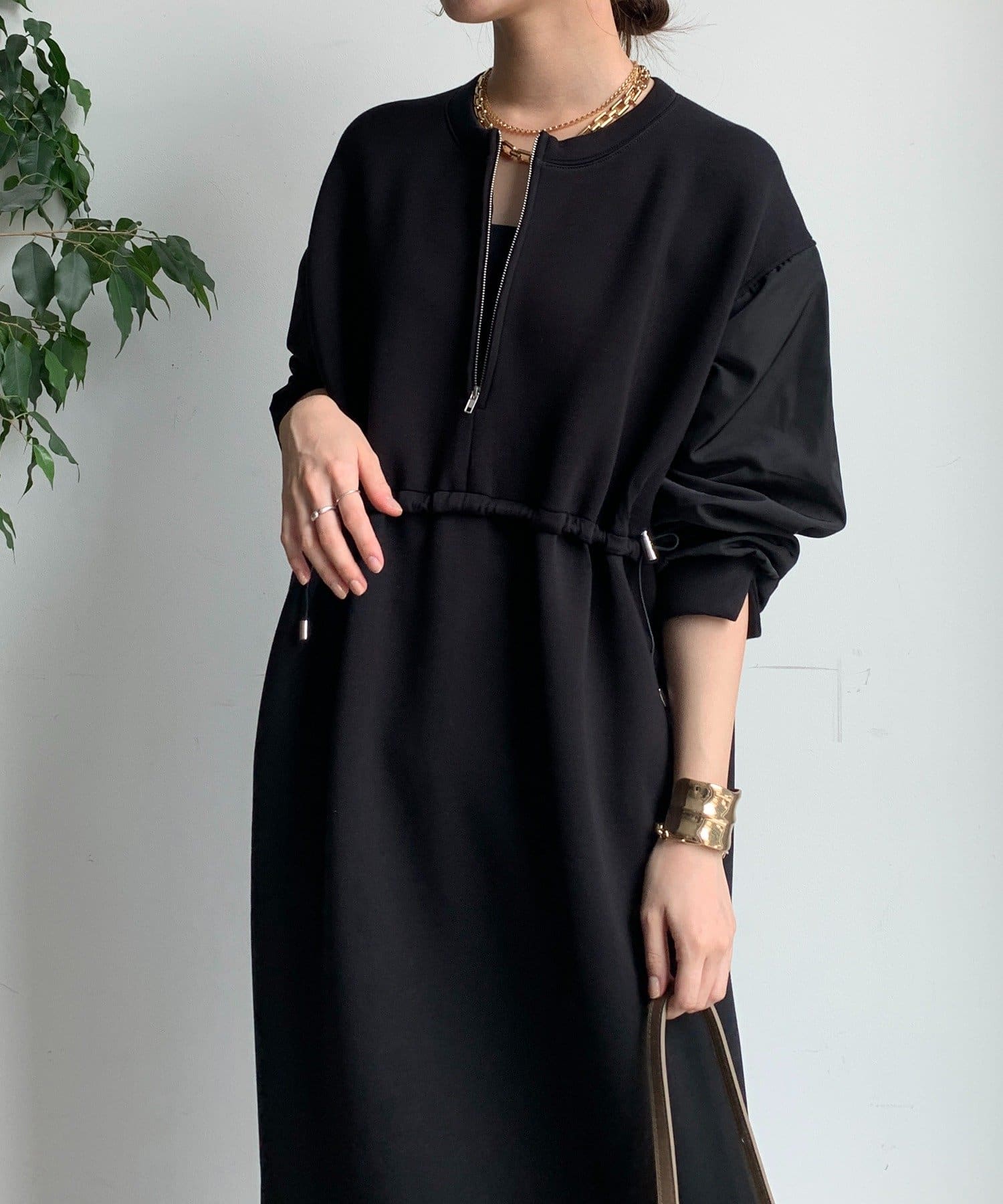【完売カラー再追加!】袖異素材切替ダンボールワンピース