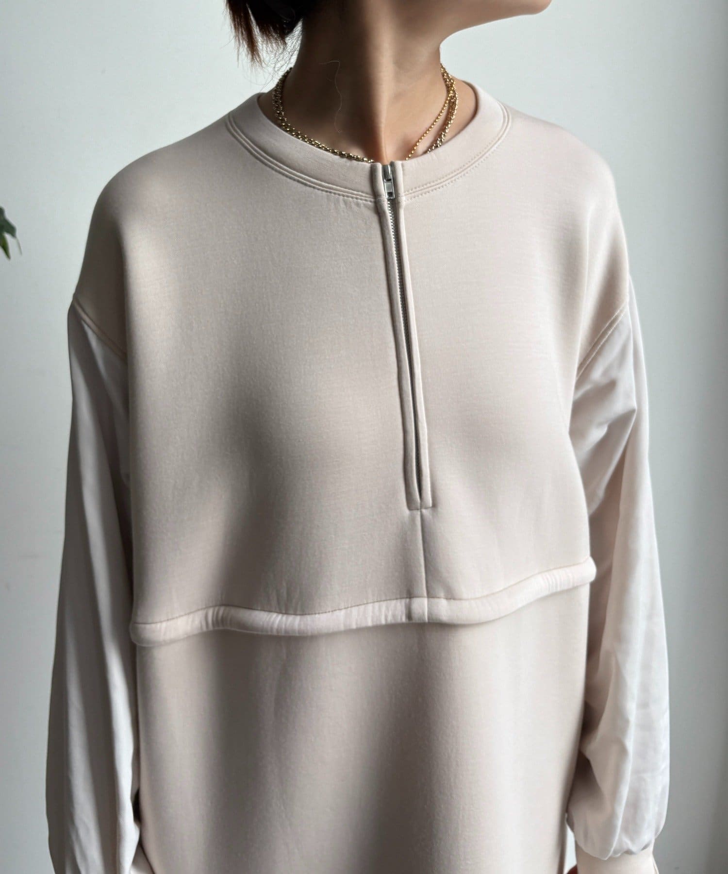 フロントジップを施し、首元に抜け感をプラスできるVネックを作り出せることが出来ますよ◎
