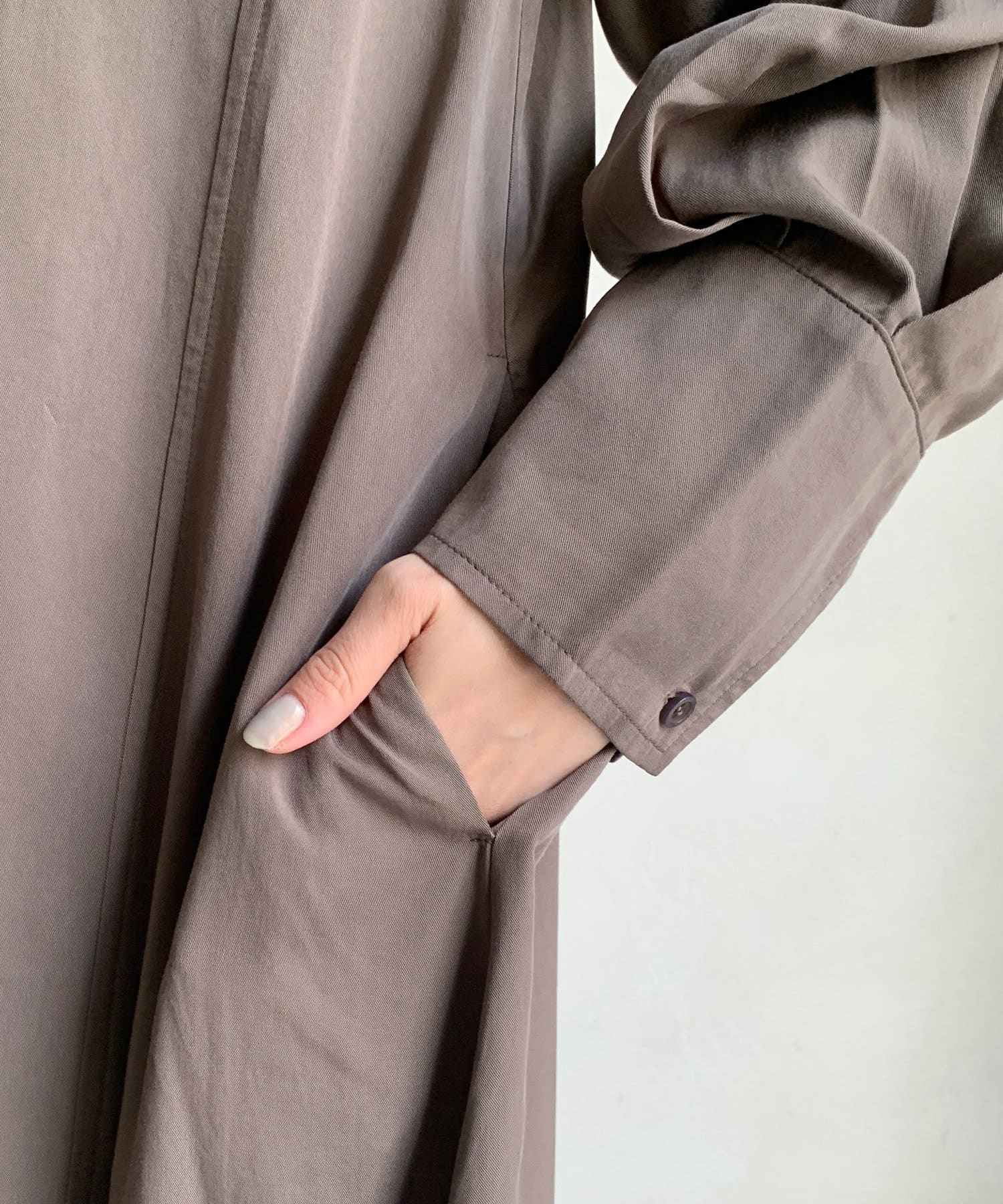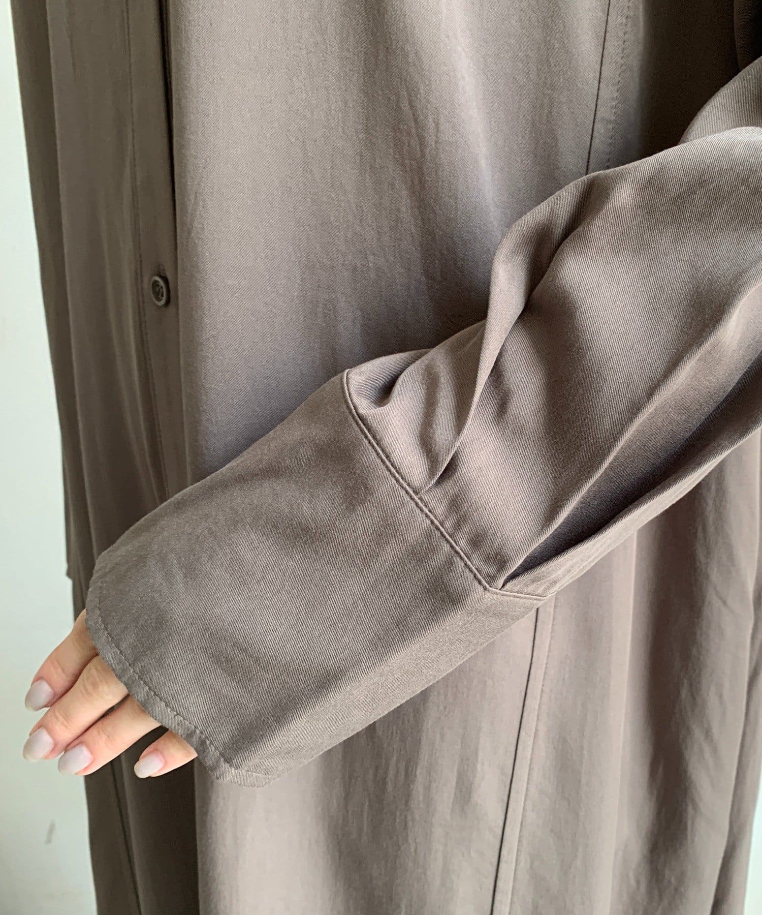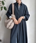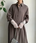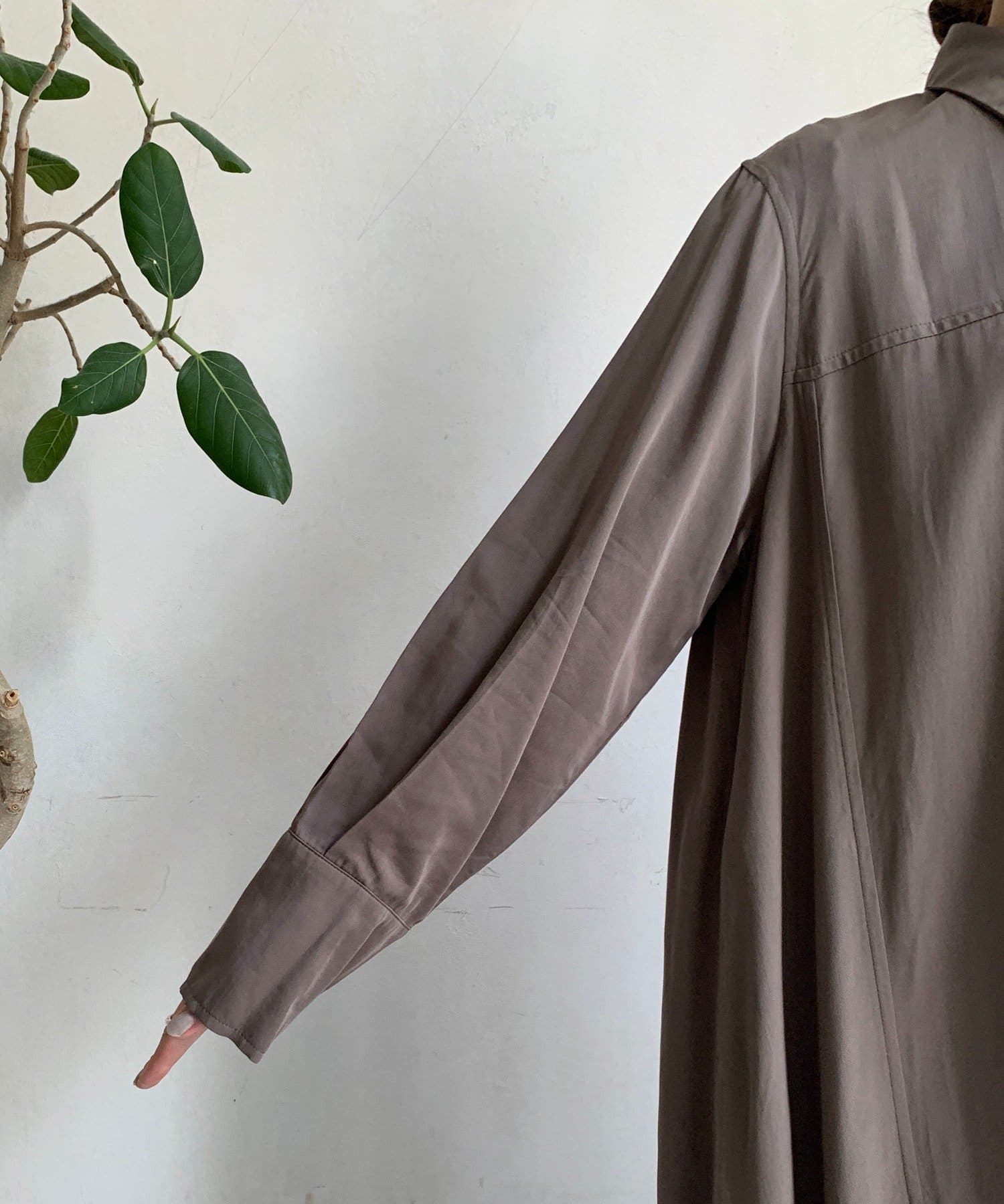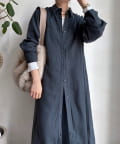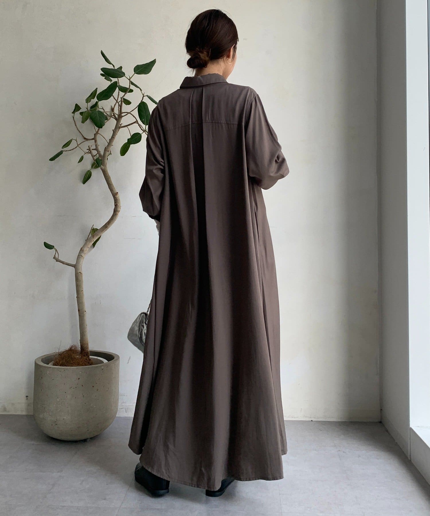 落ち感ある素材で仕上げたロングシャツワンピース。
