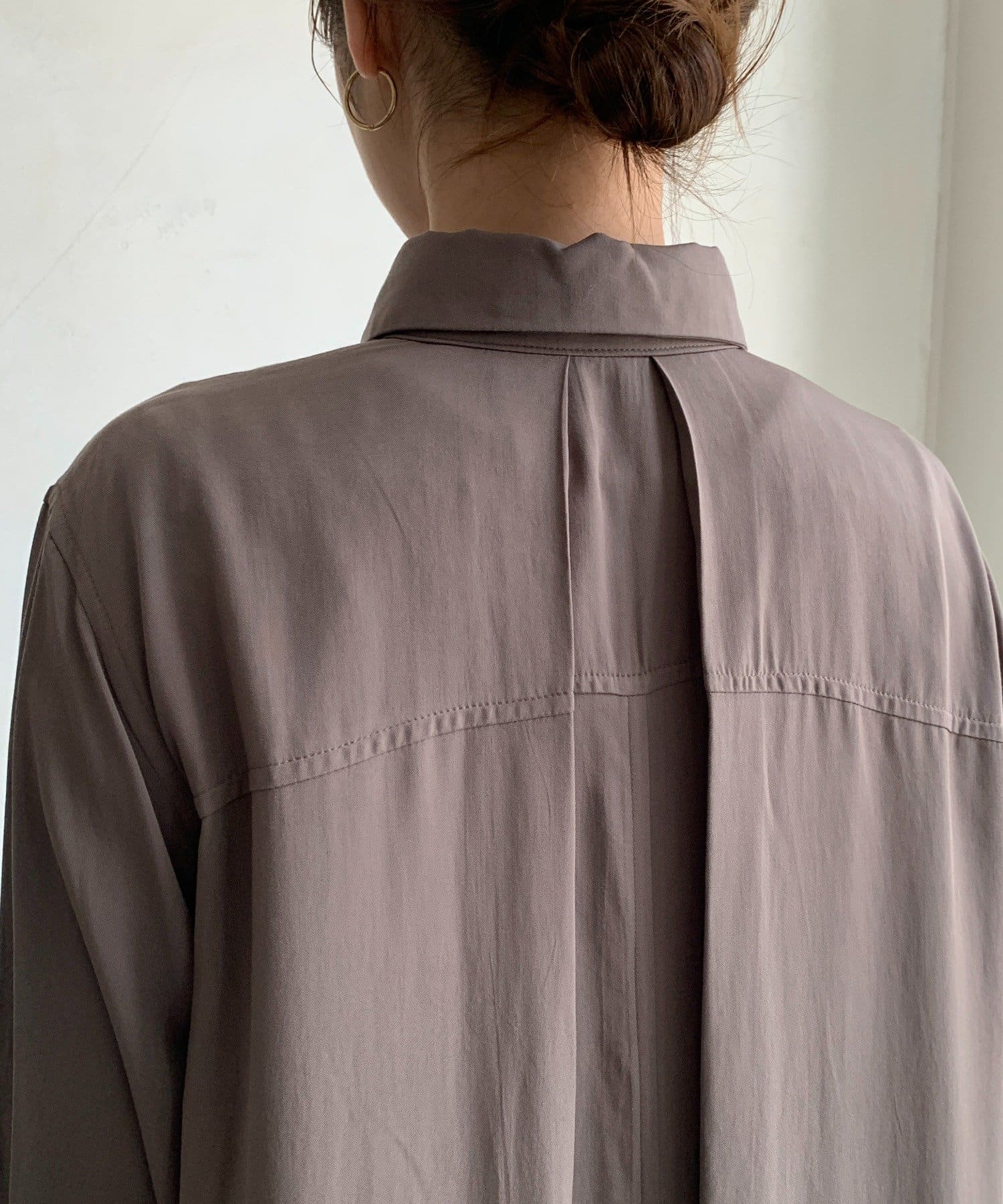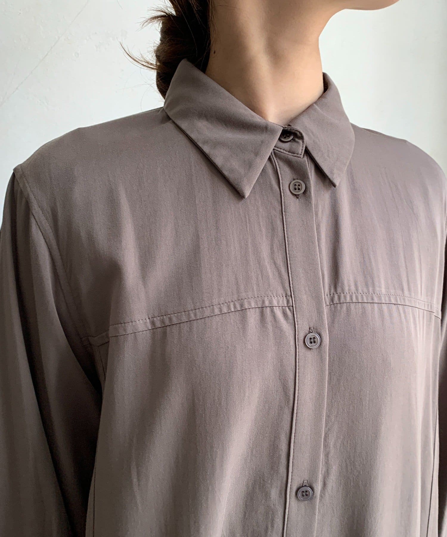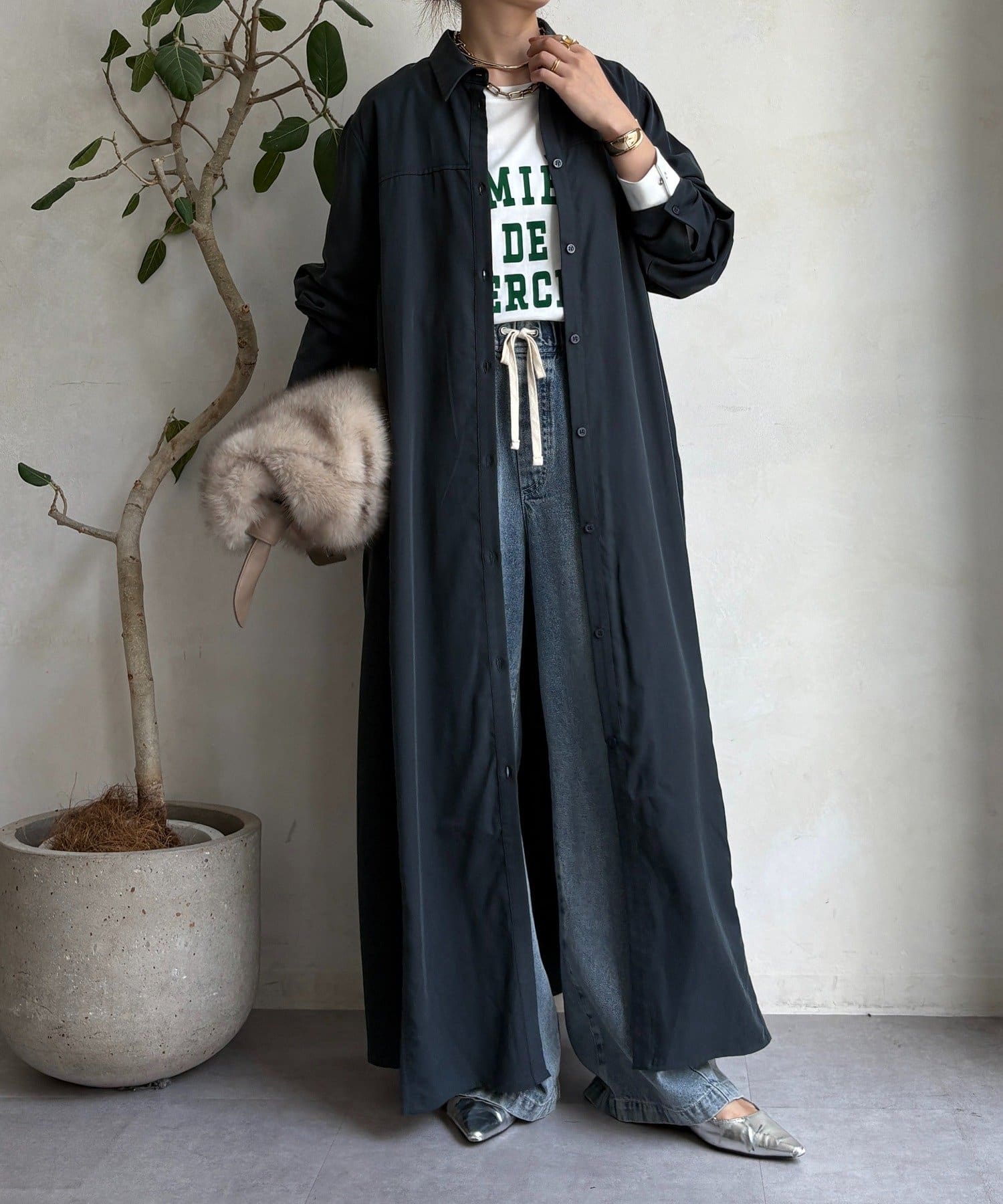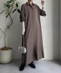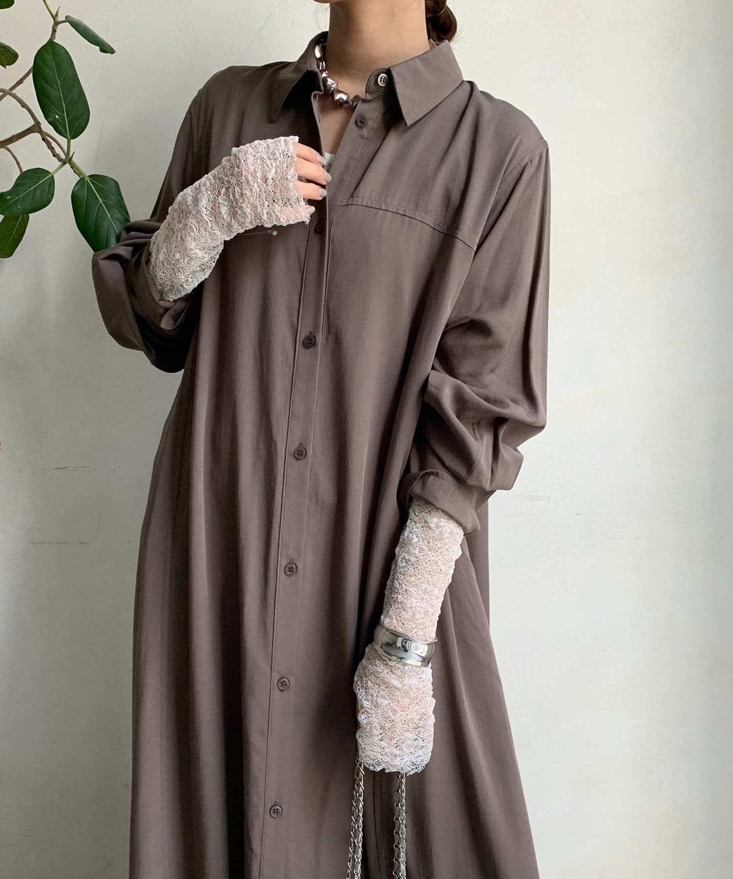 落ち感ある素材で仕上げたロングシャツワンピース。