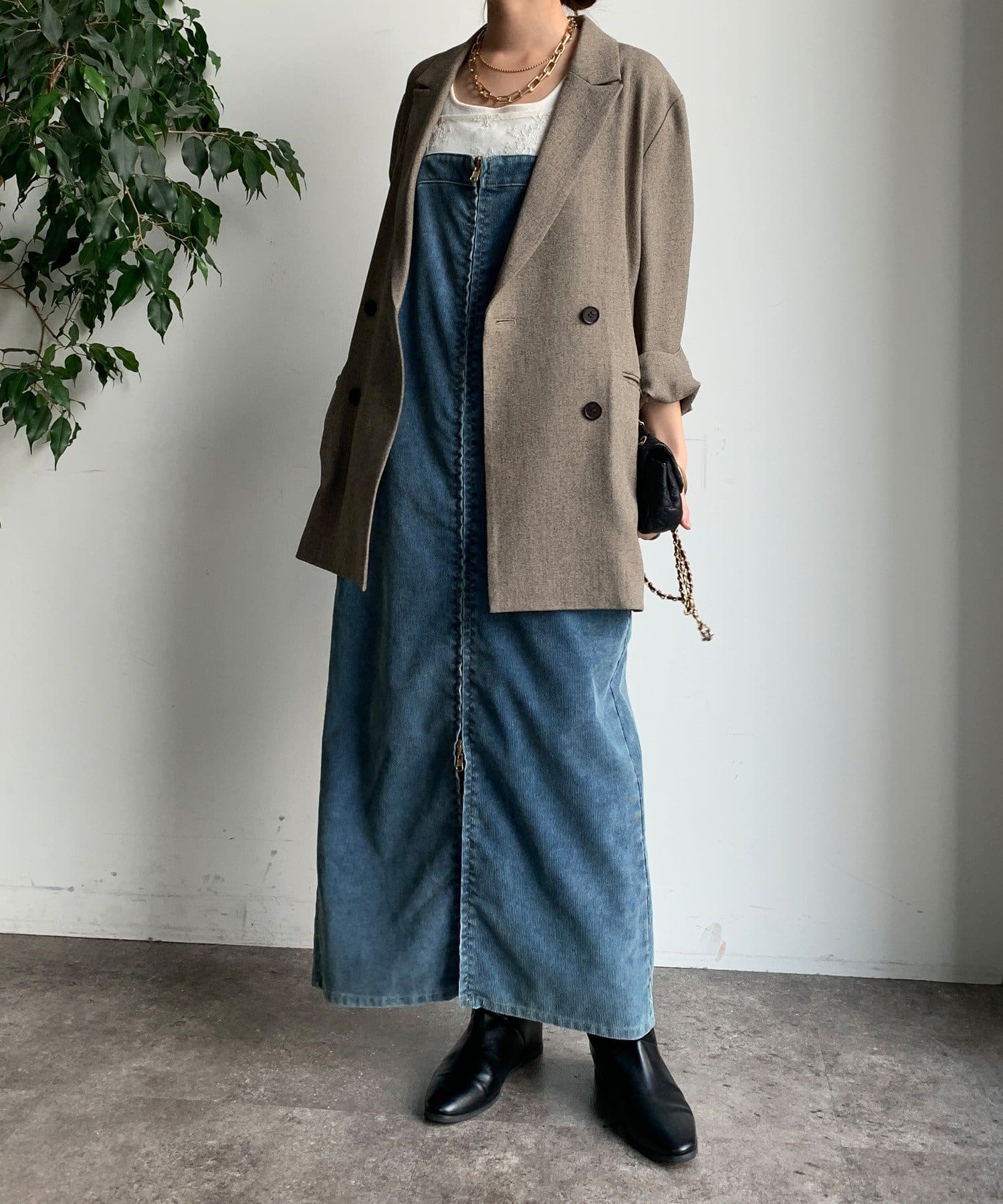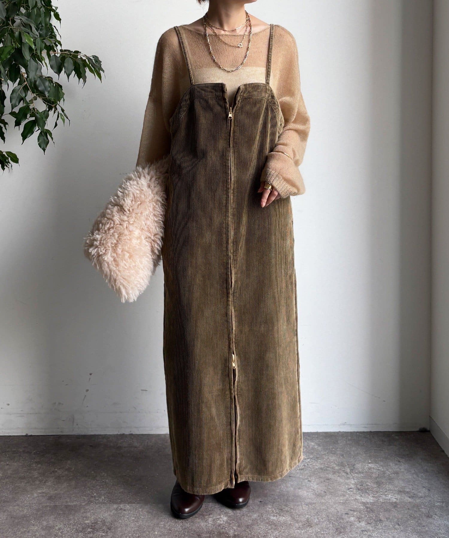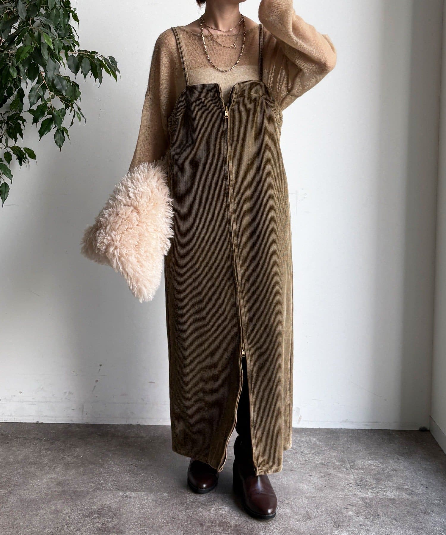今年トレンドのコーデュロイ素材を全体に使用し、着るだけでシーズンムード漂う1着に。