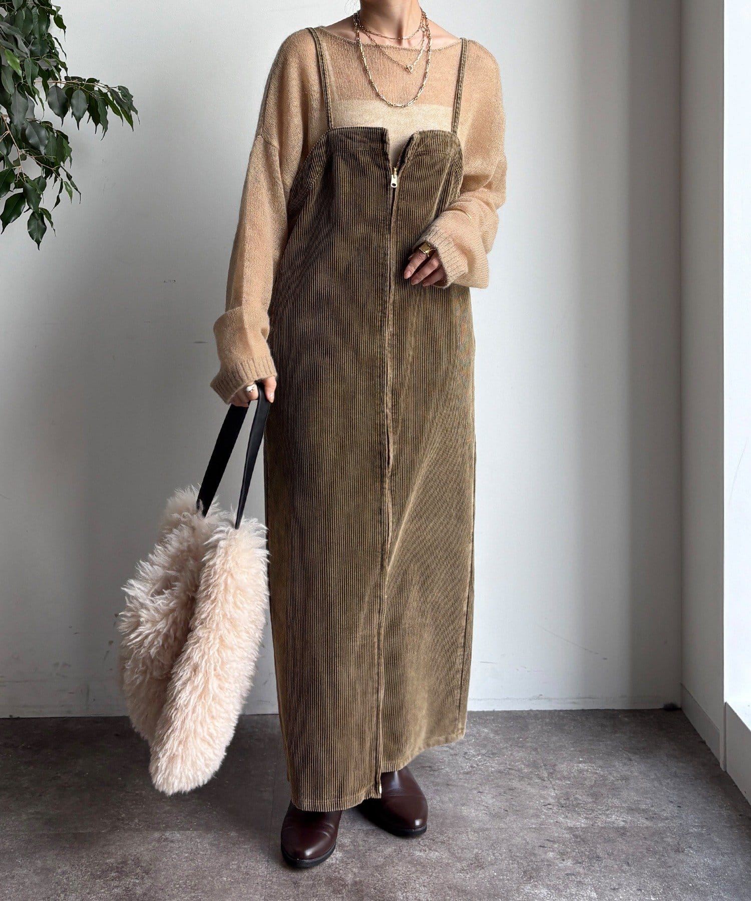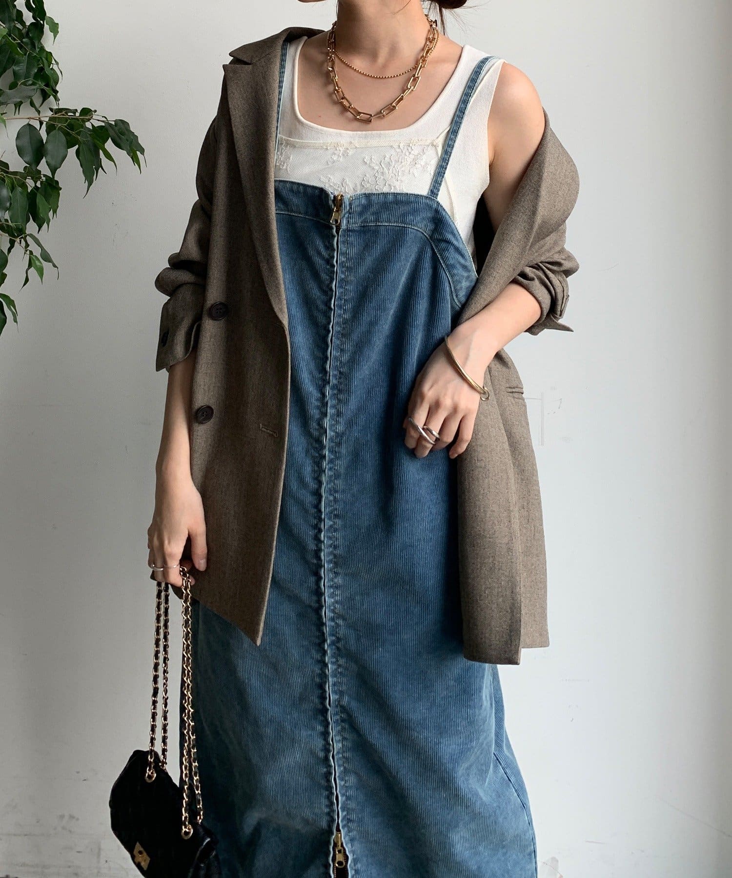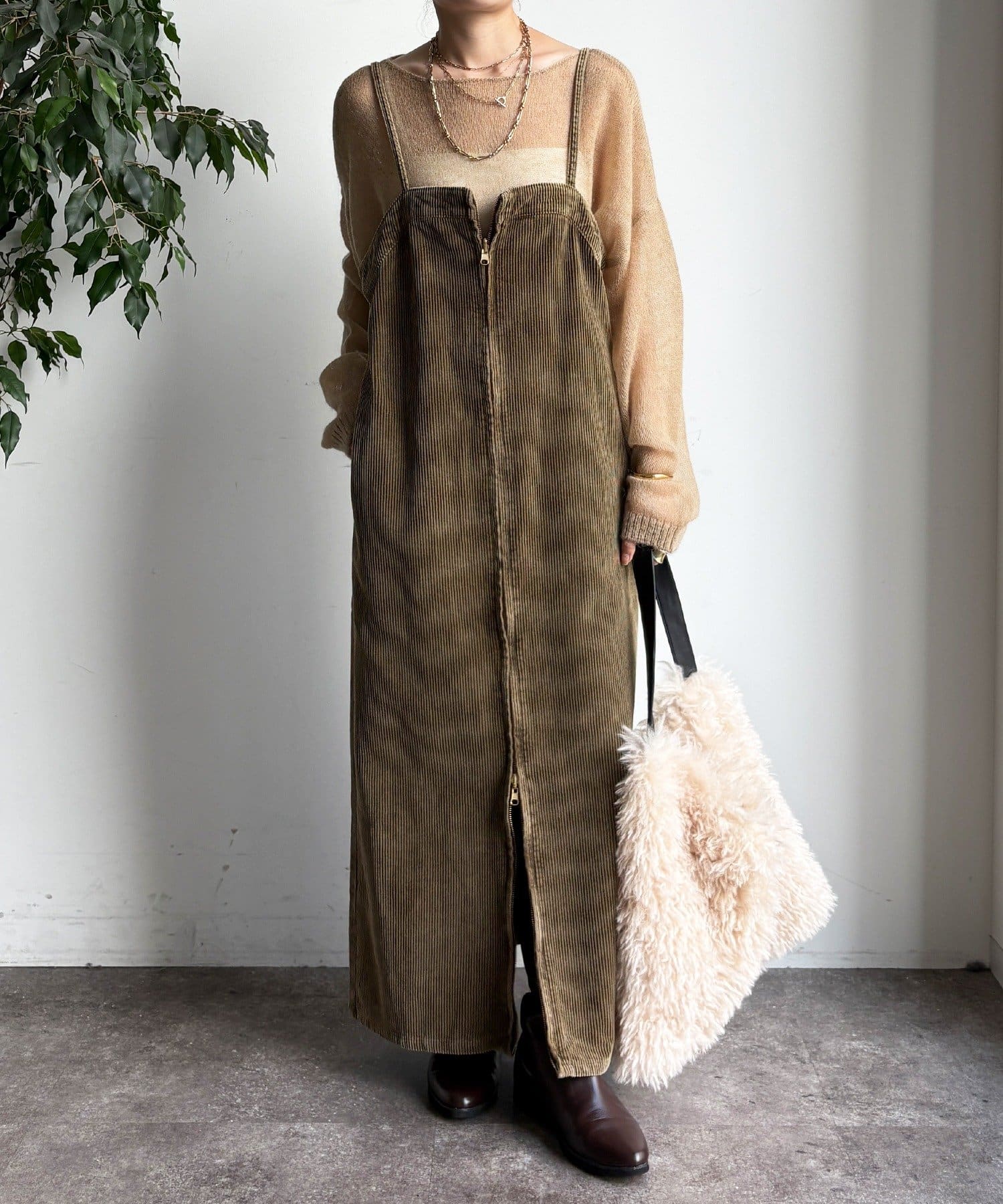 今年トレンドのコーデュロイ素材を全体に使用し、着るだけでシーズンムード漂う1着に。