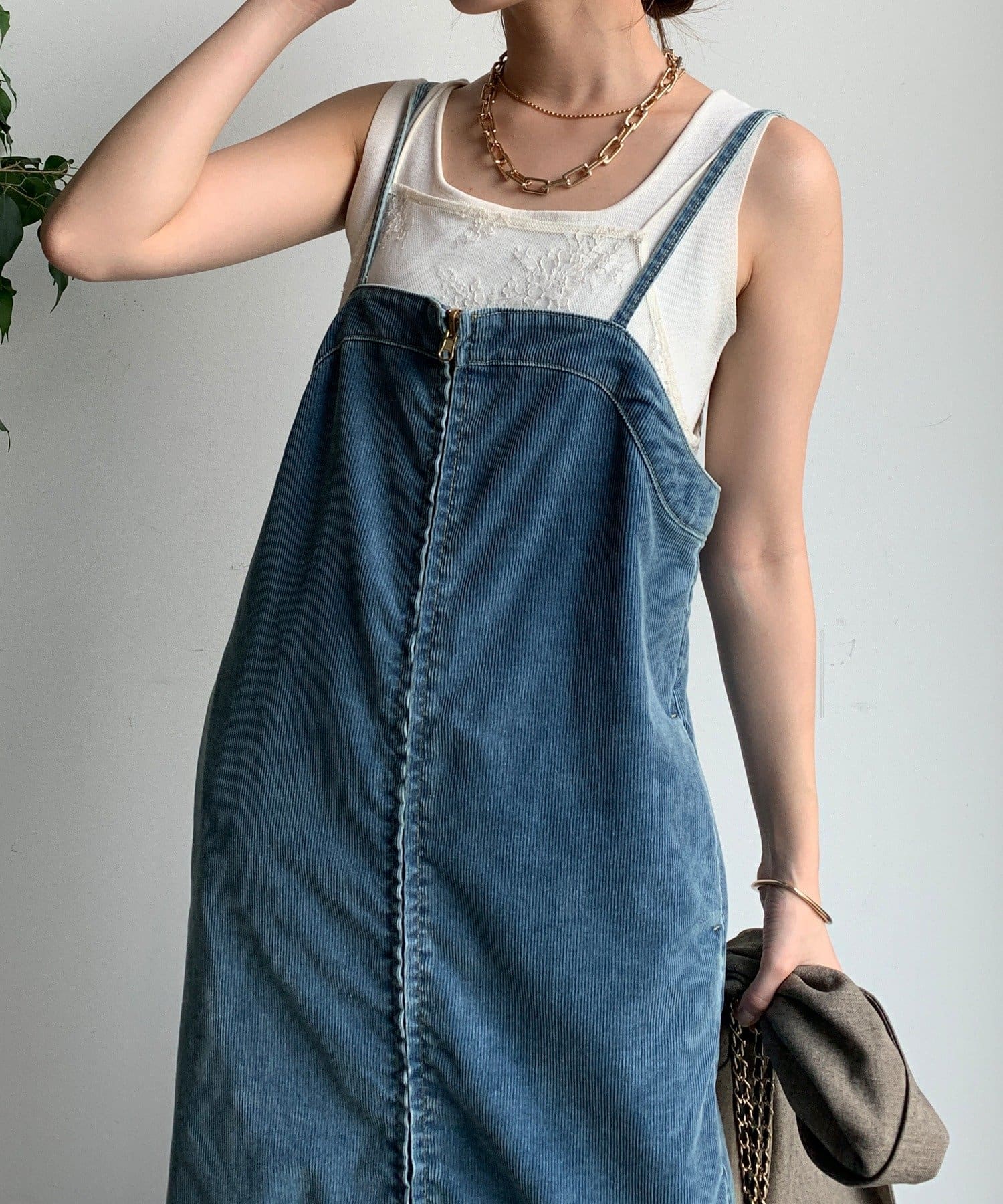 人気シルエットのジャンスカにコーデュロイ素材の新バージョンが登場。