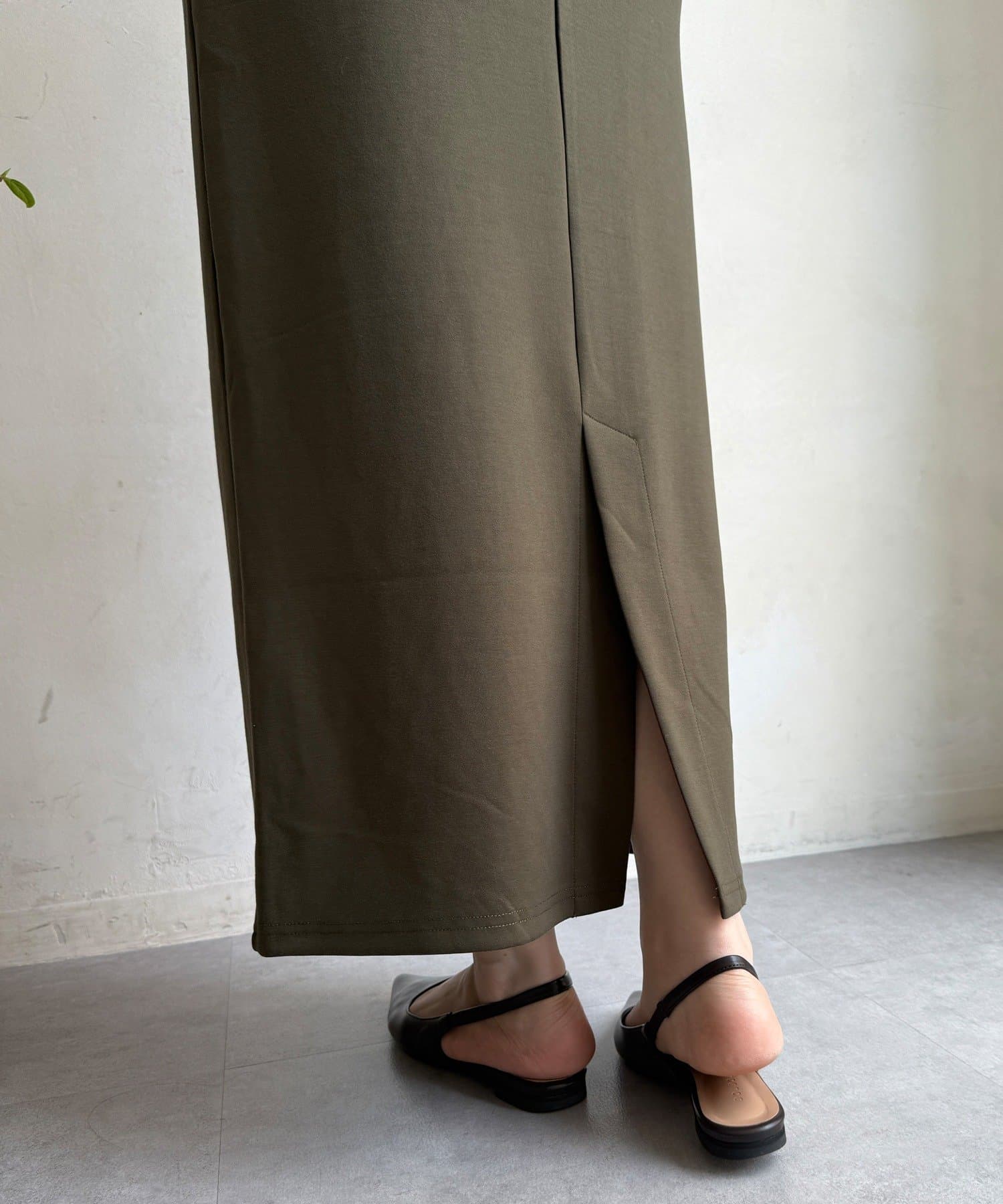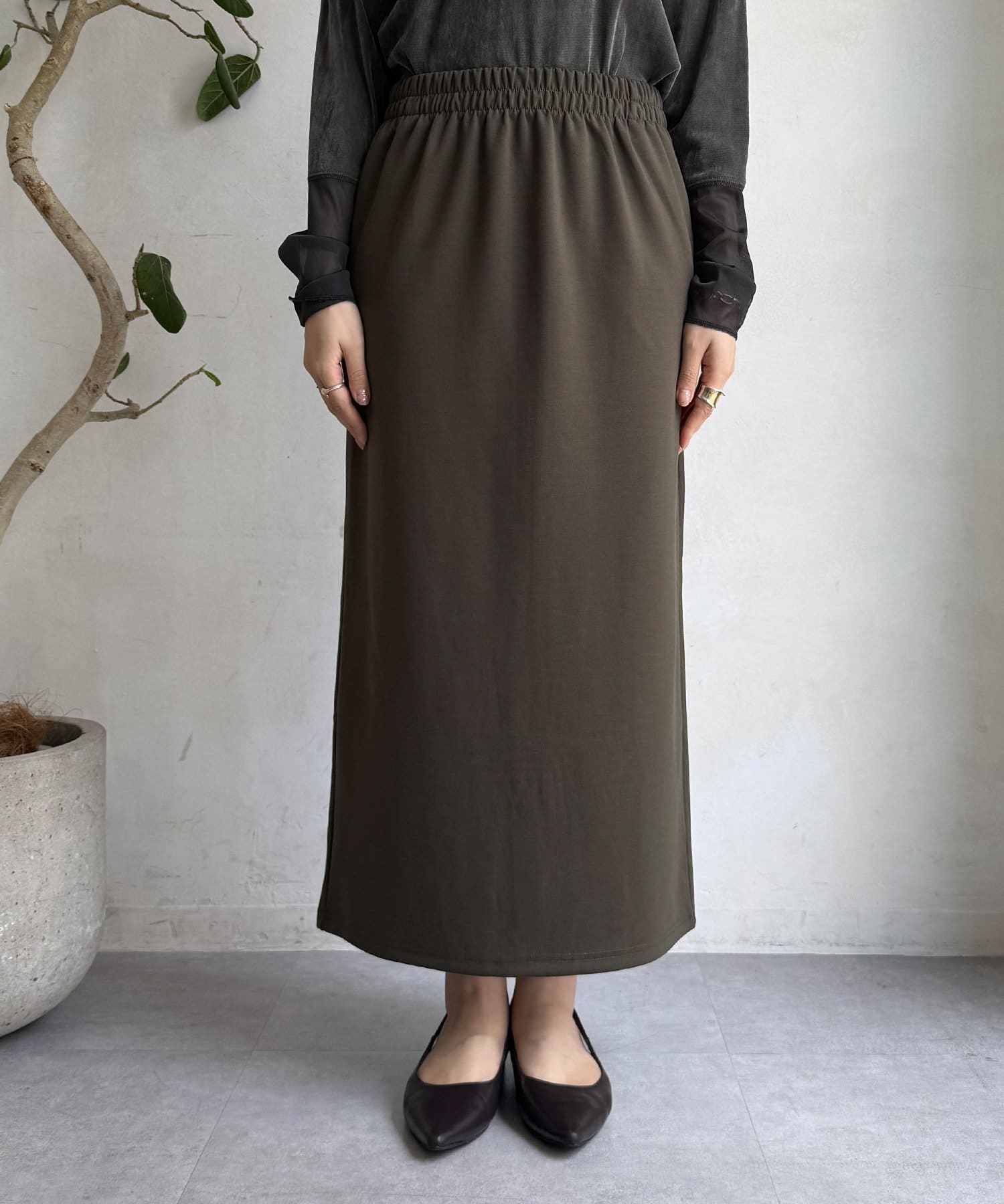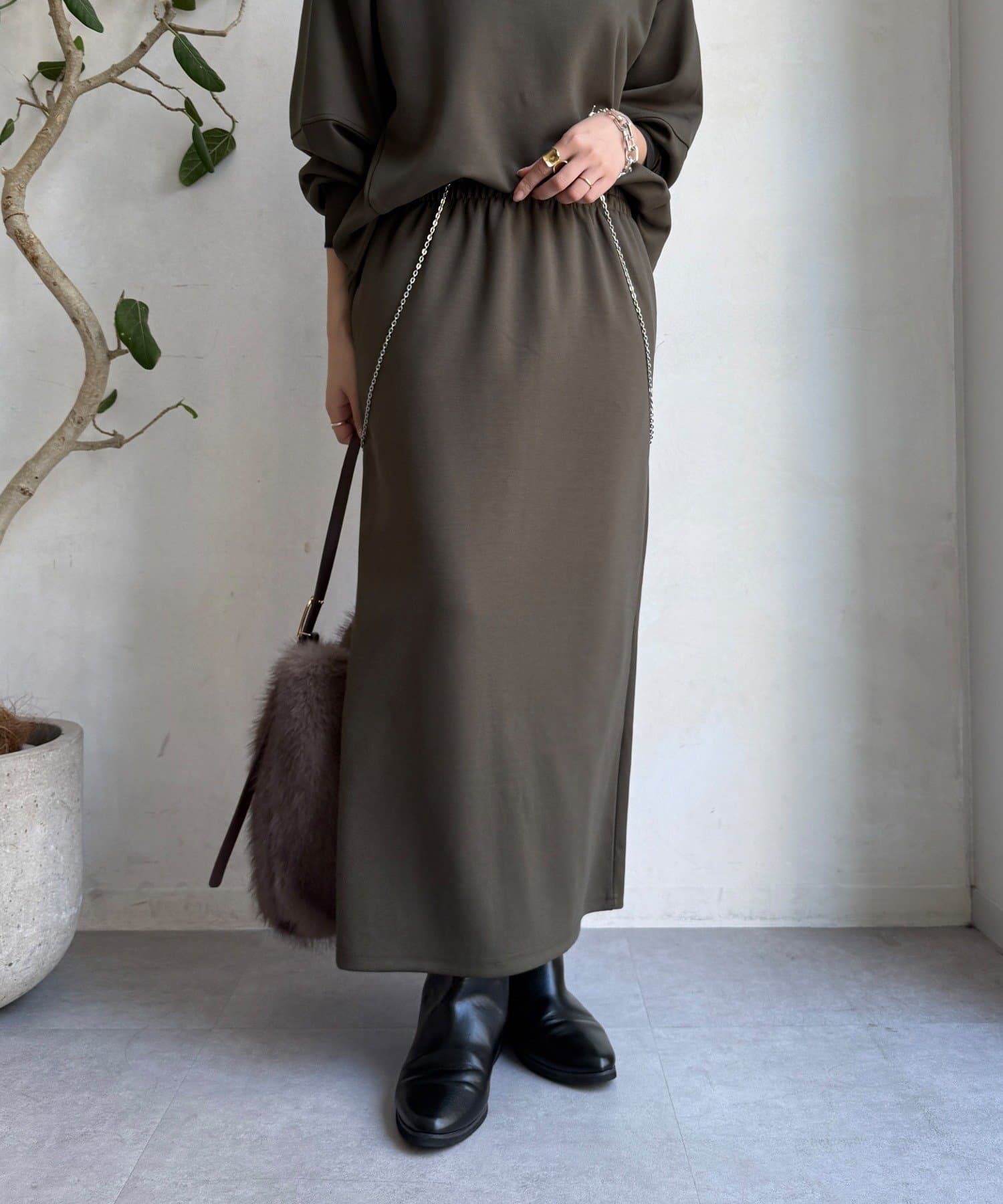 ボトムスは、すとんと落ちるIラインシルエットが美しいロングスカート。