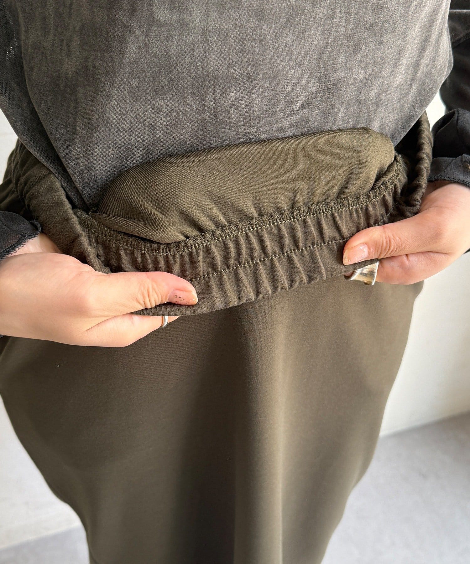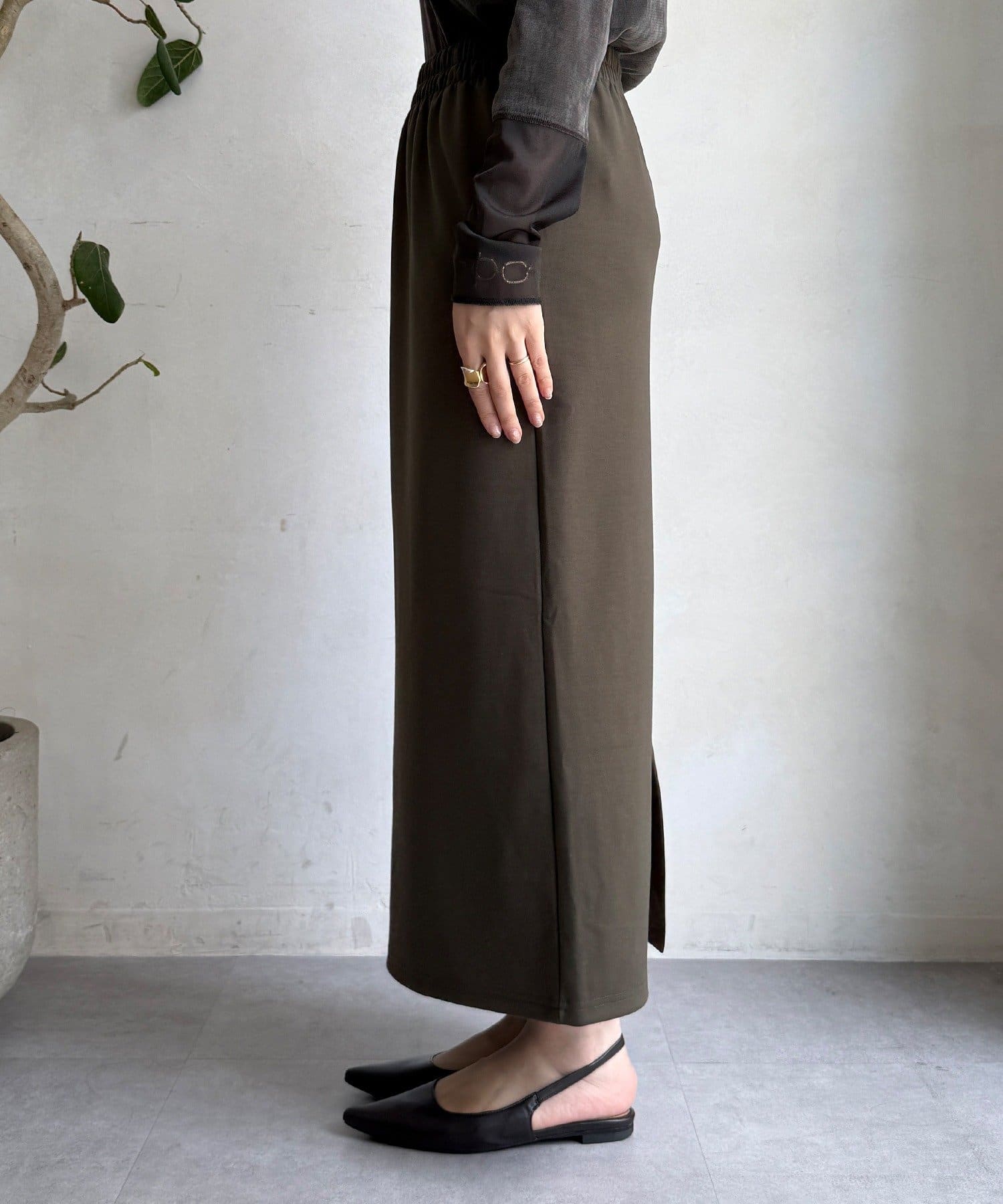 ウエストゴムでストレスフリーな着心地ながら、上品な印象を与えてくれます。