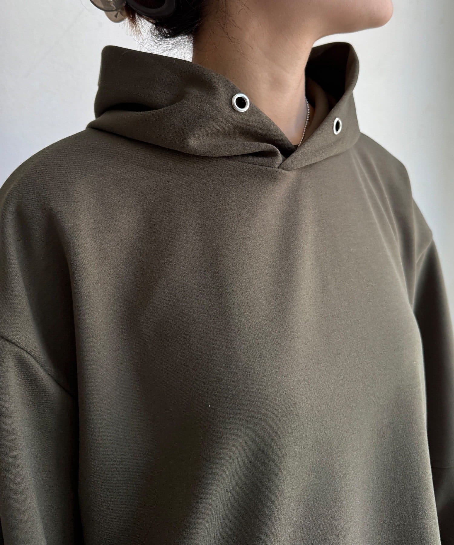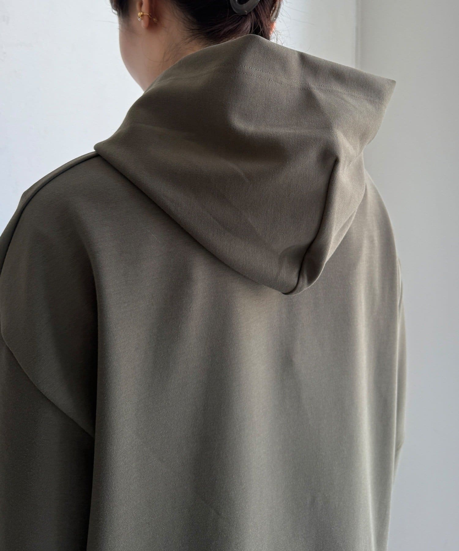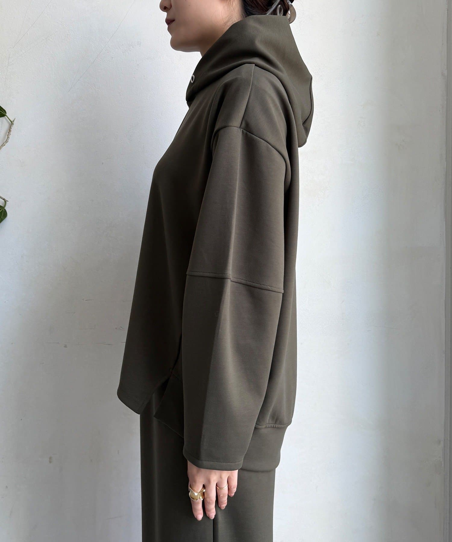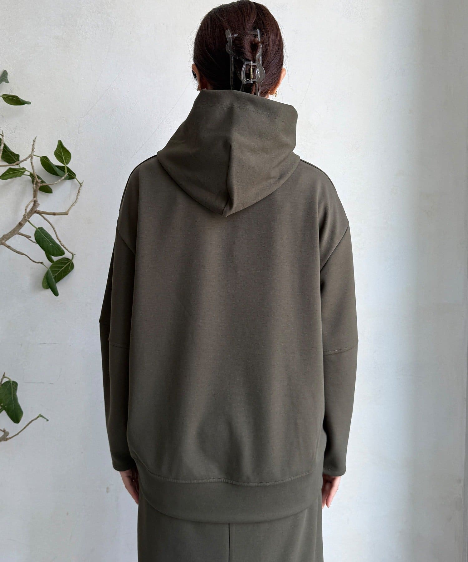 トップスは、大人の女性にも似合うカジュアルな印象のフーディーで、