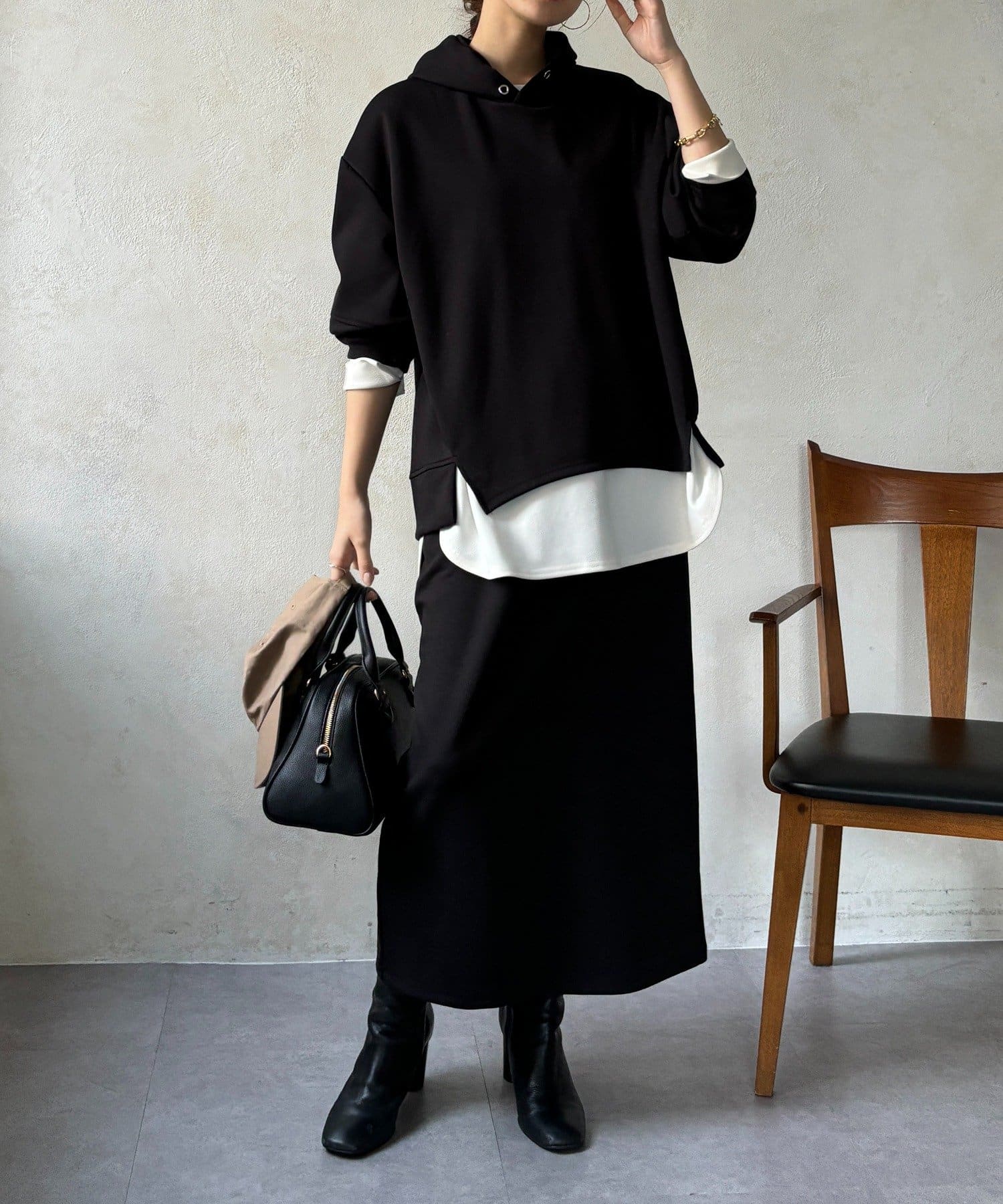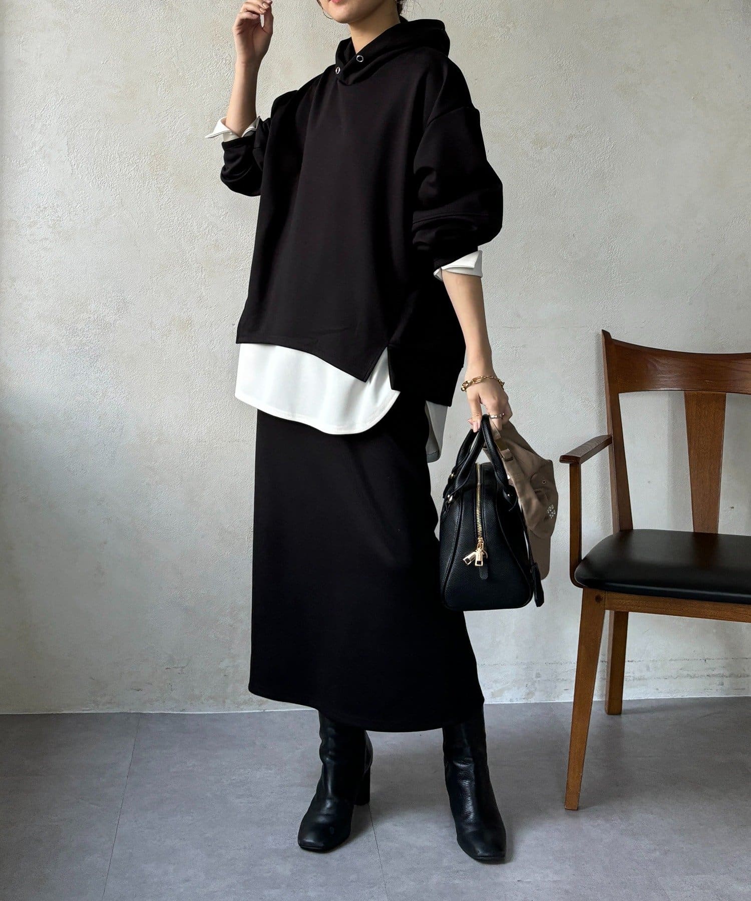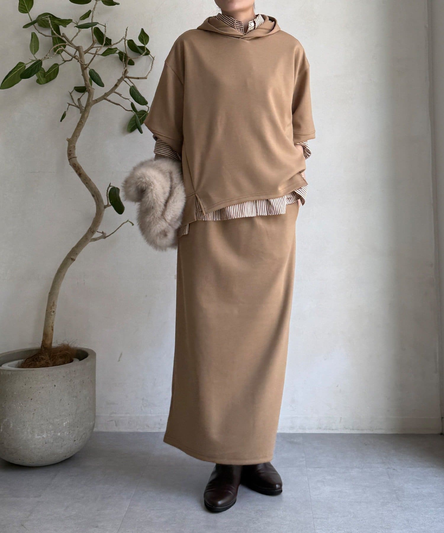 【WEB限定】ランタンスリーブフーディー+タイトスカートセット
