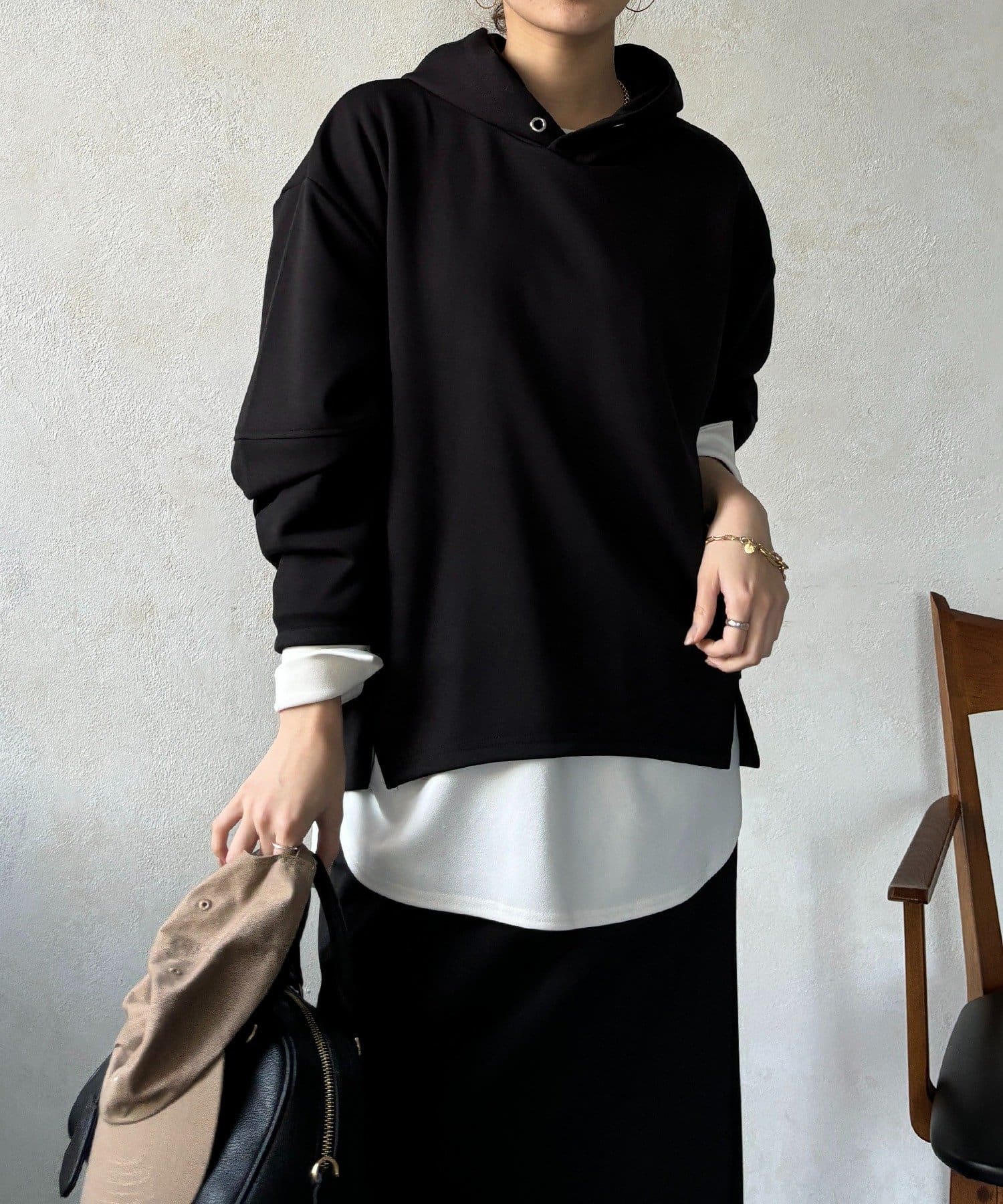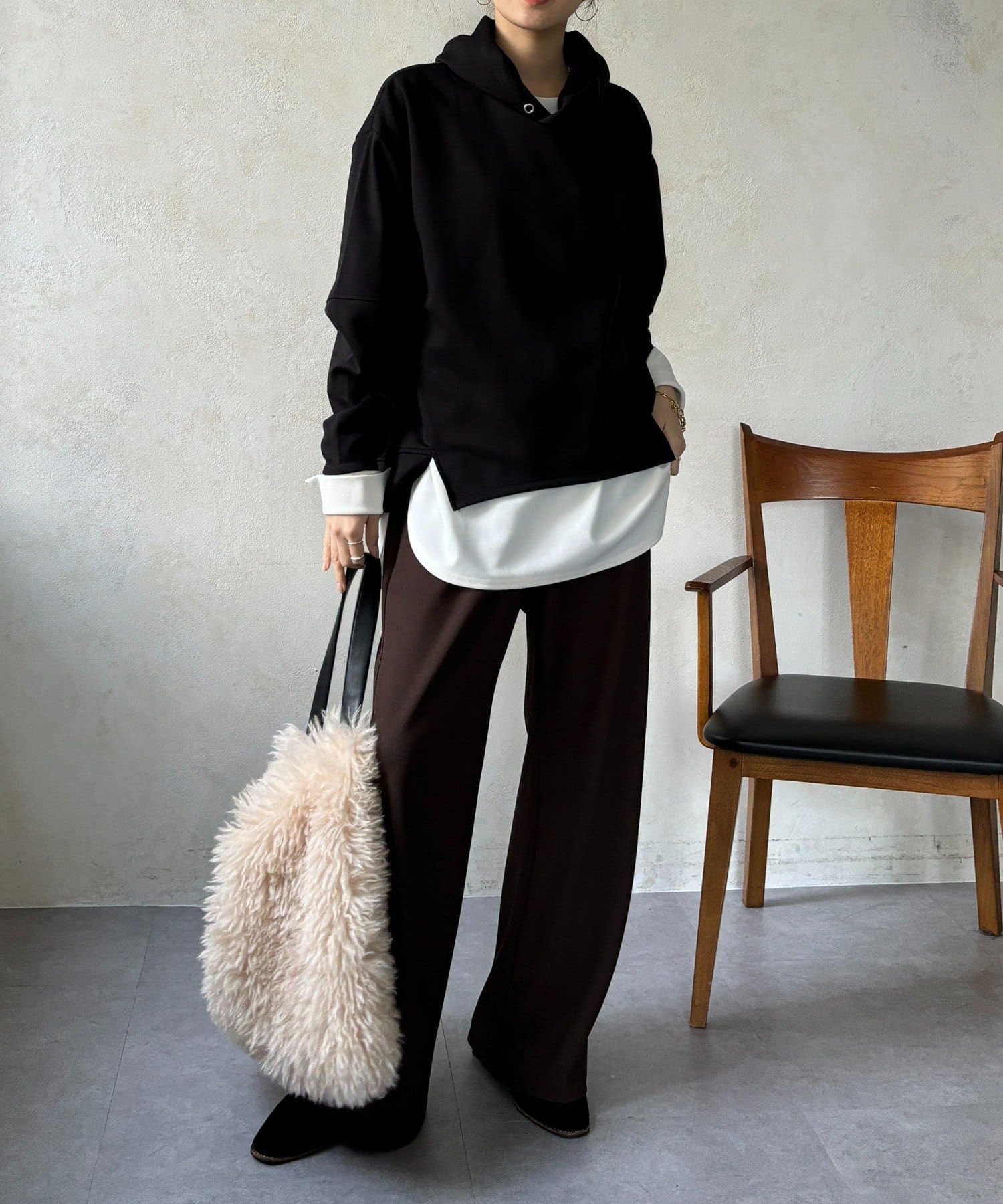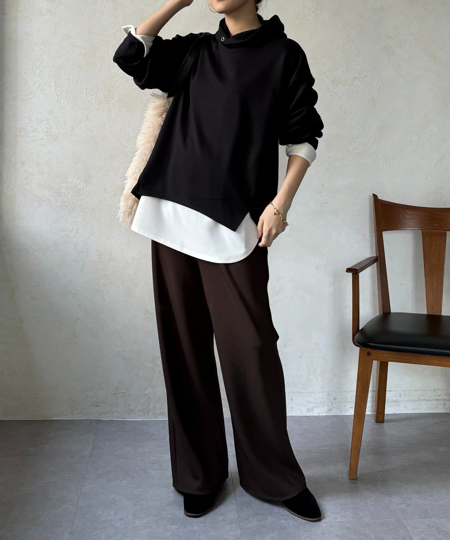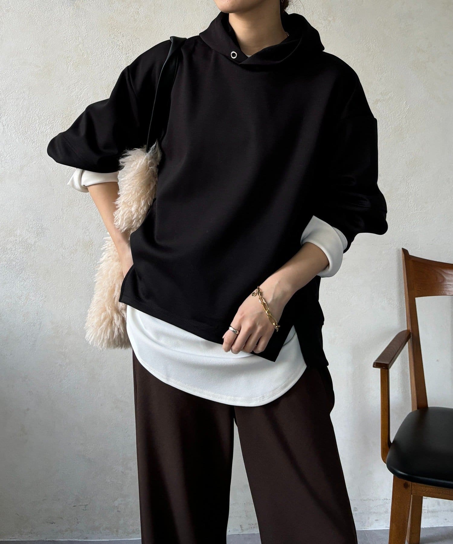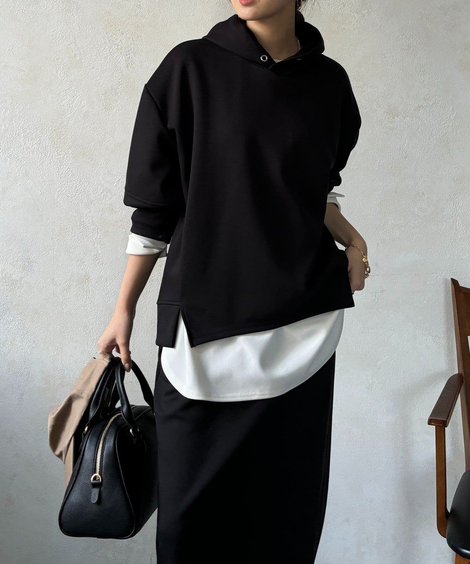 サイドスリットが抜け感をプラスし、レイヤードスタイルも楽しめるアイテムです◎