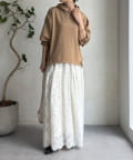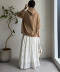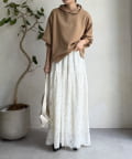 ボトムスは、すとんと落ちるIラインシルエットが美しいロングスカート。