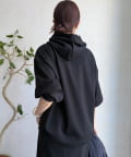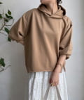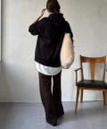 トップスは、大人の女性にも似合うカジュアルな印象のフーディーで、