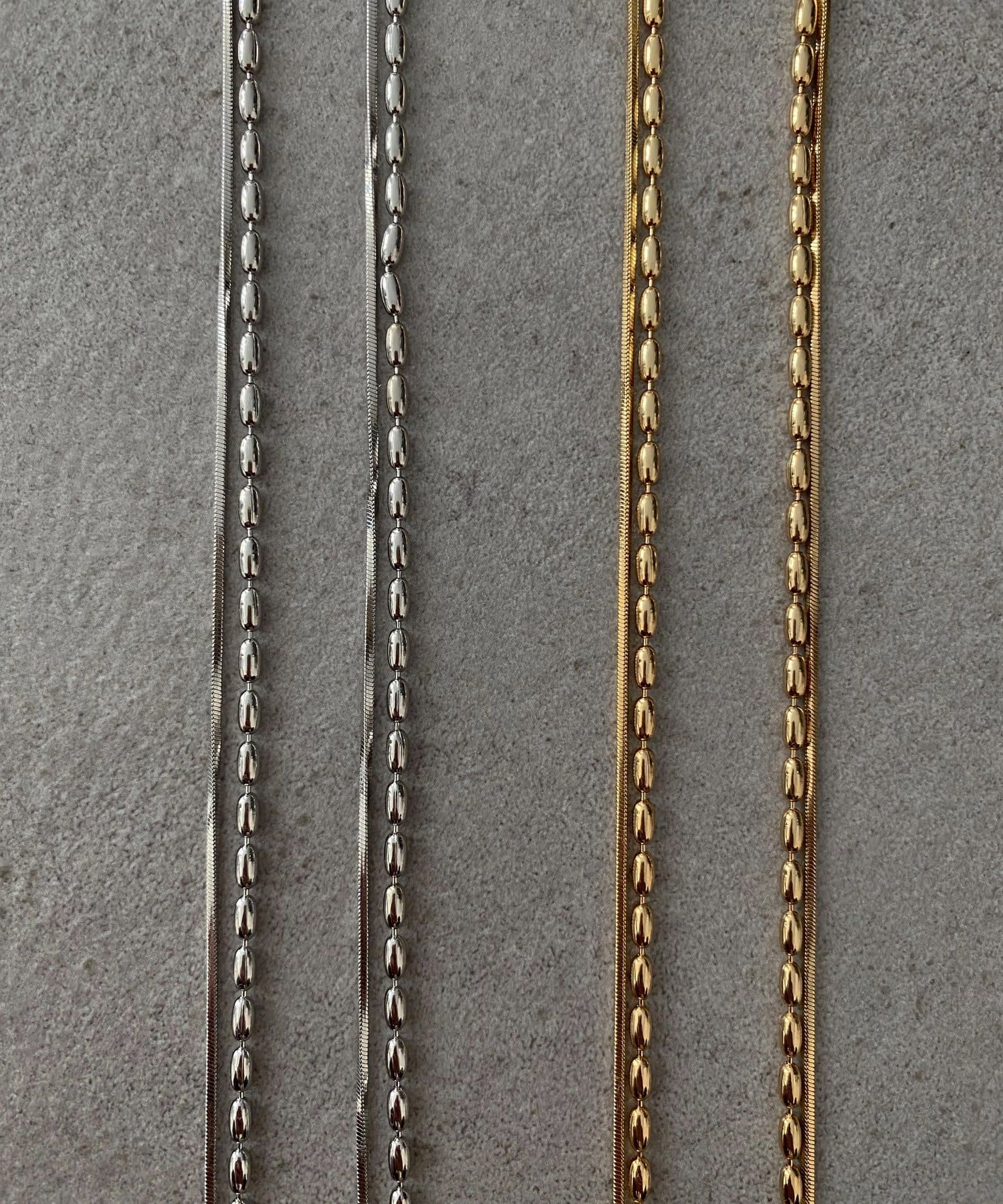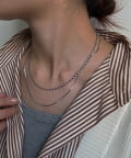 異なるデザインのチェーンを組み合わせることで、女性らしさを演出してくれますよ!