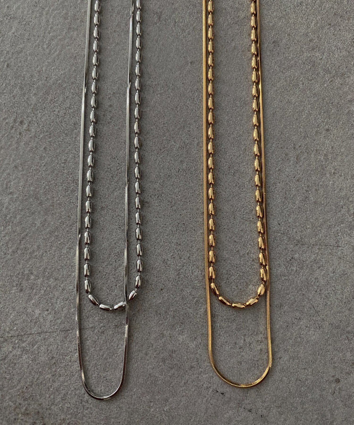 他のネックレスと合わせてもごつくなりすぎない上品な華奢さが魅力の2連ネックレス!