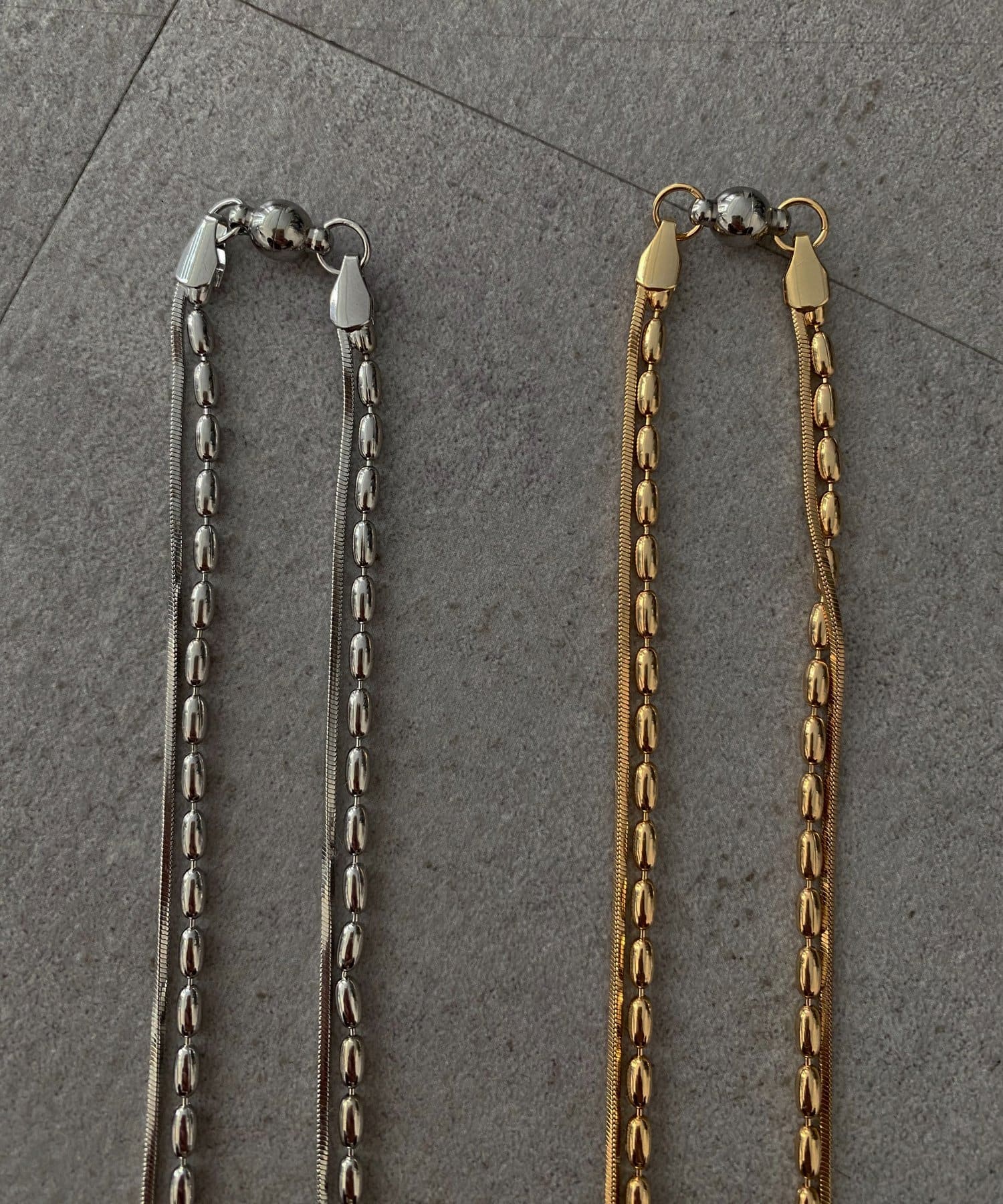 TOP > DOUDOU > レディース > アクセサリー > ネックレス > 【SAKURA企画】アレルギー対応 2連チェーンマグネットネックレス
