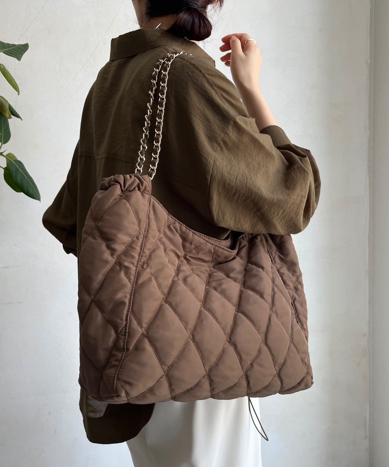 柔らかく軽量なキルティング素材が魅力の、大人カジュアルにぴったりなトートバッグ。
