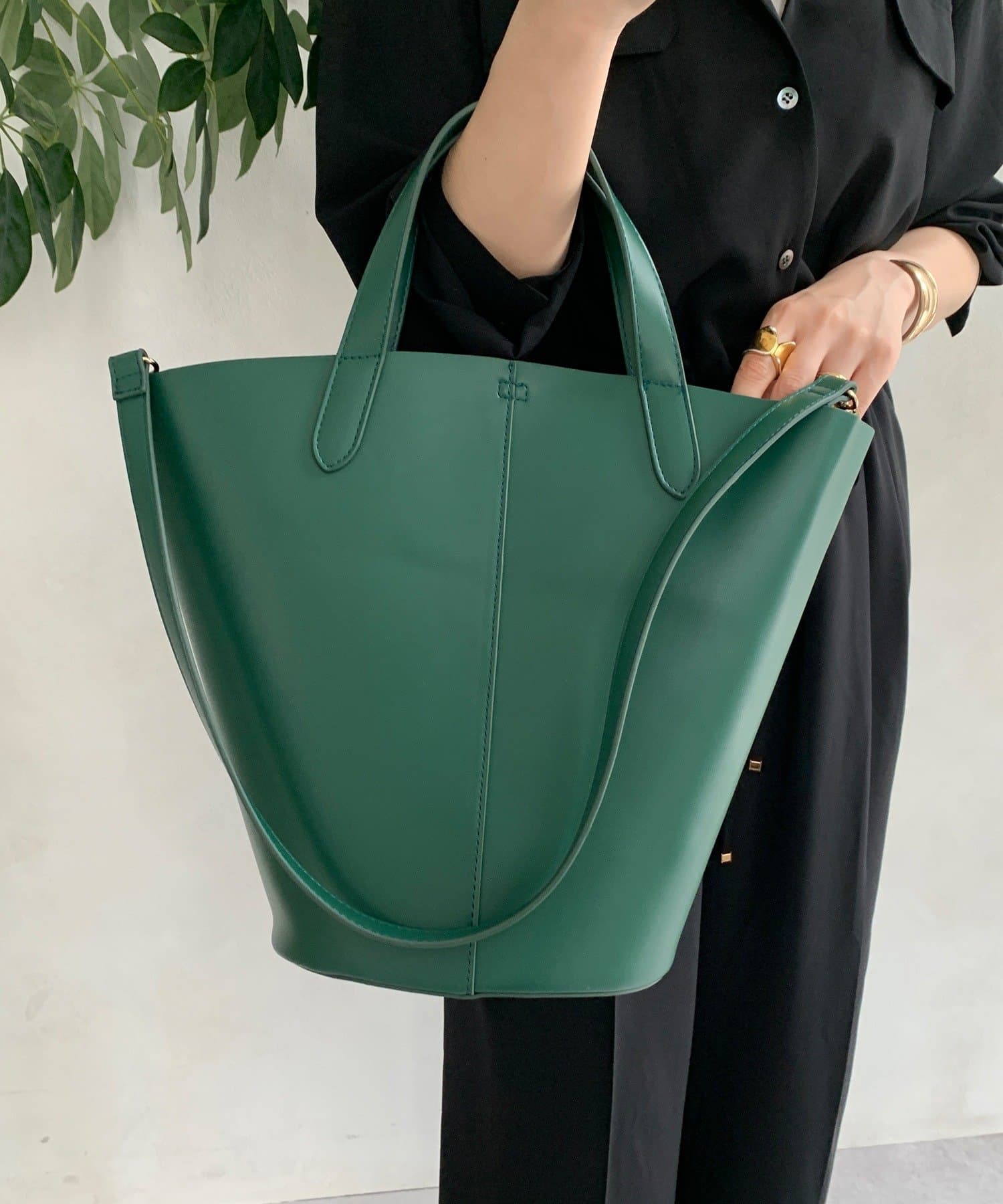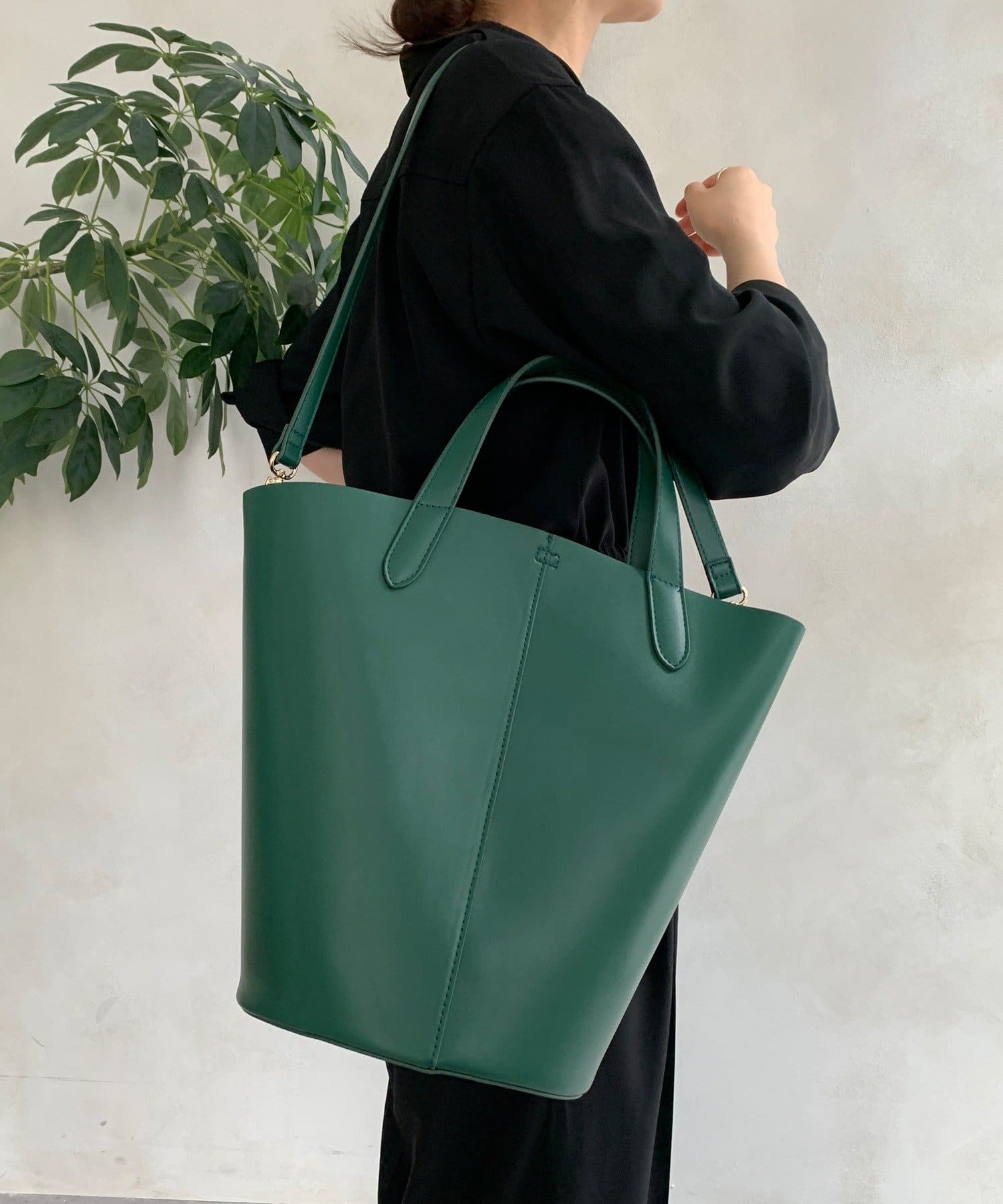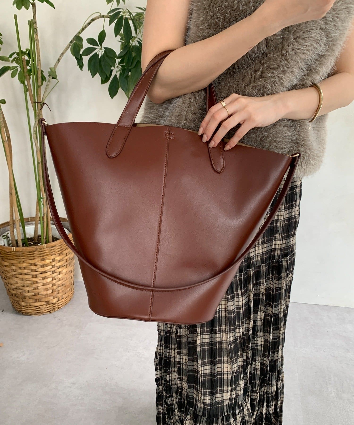 洗練されたシンプルさが魅力のバケット型トートバッグ。深みのあるカラーが可愛い。