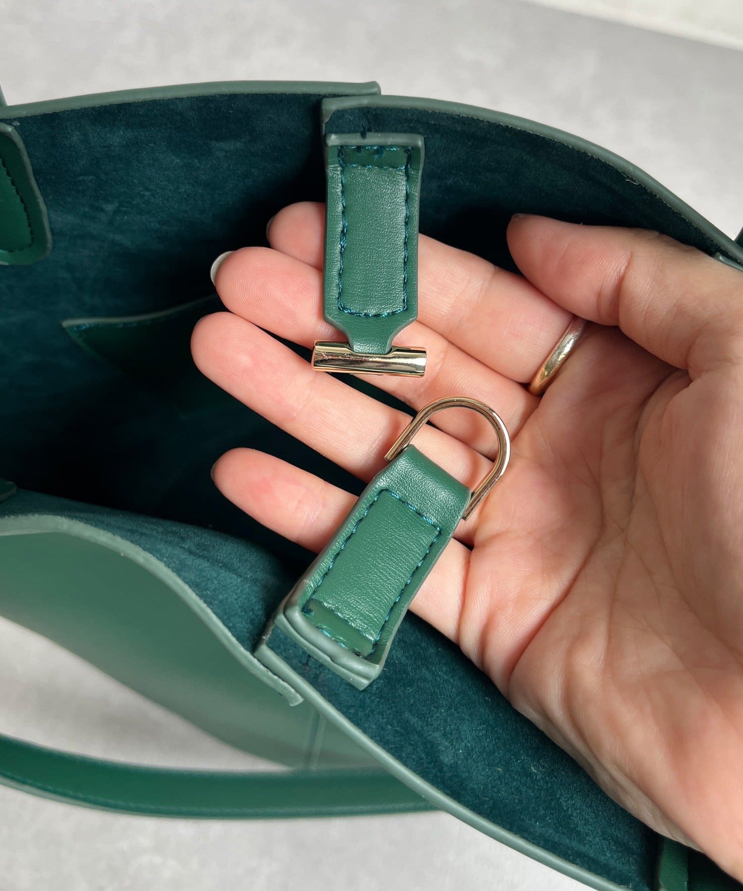 短めのハンドルに加え取り外し可能なショルダーストラップ付きで、シーンに合わせた使い分けが可能です。