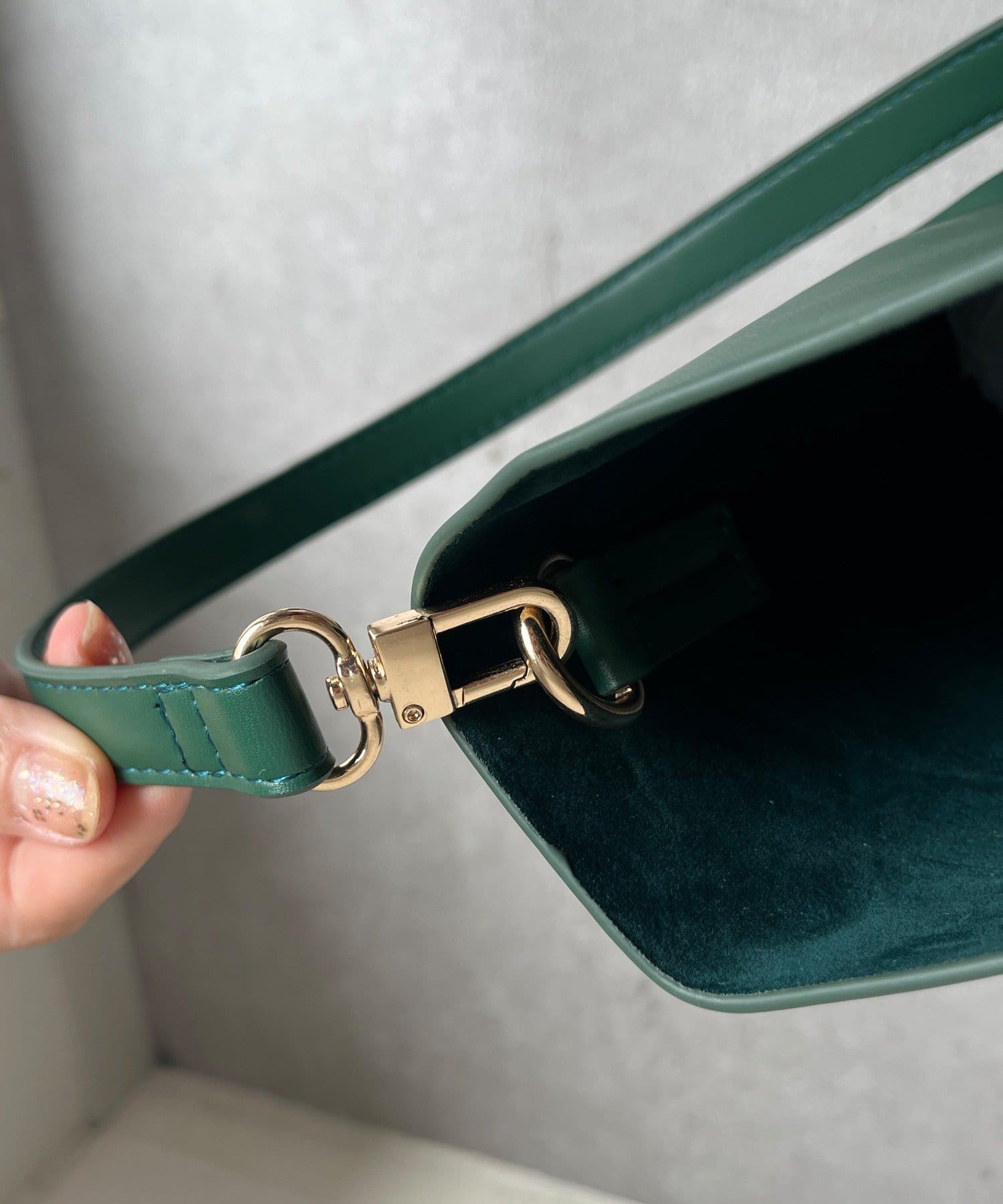 なめらかな質感のフェイクレザーを使用し一枚仕立てのシンプルで大人っぽい雰囲気に仕上がっています。
