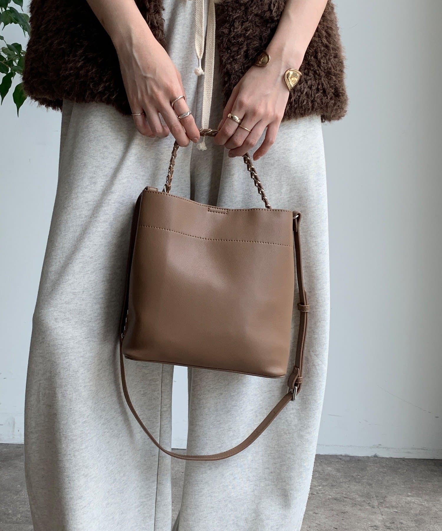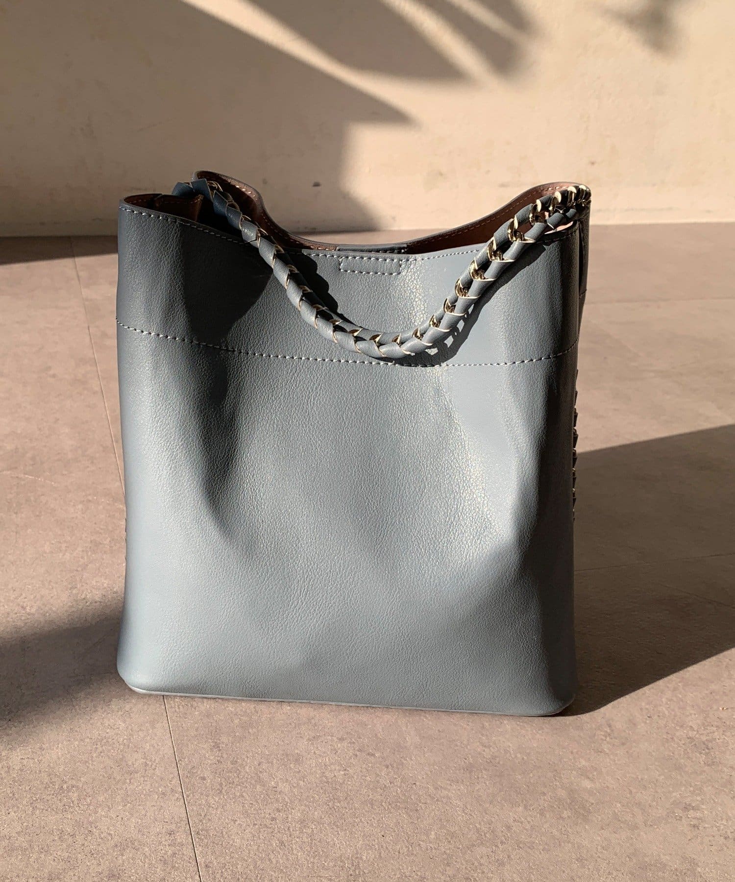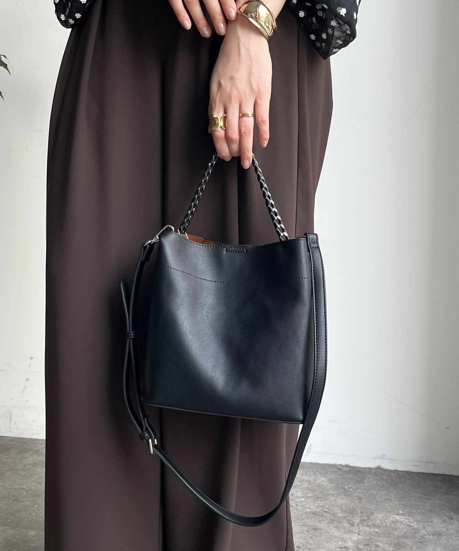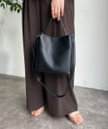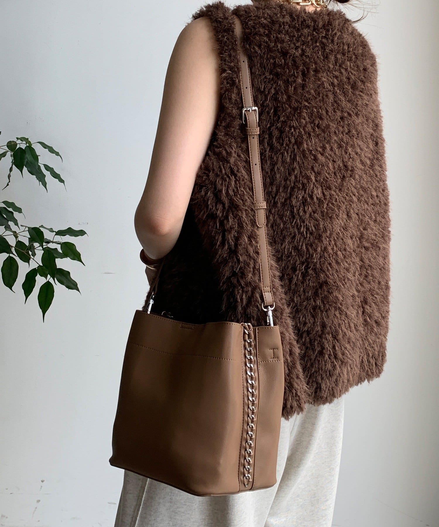 サイドのかがりチェーンがデザインポイントの2wayトートバッグ。