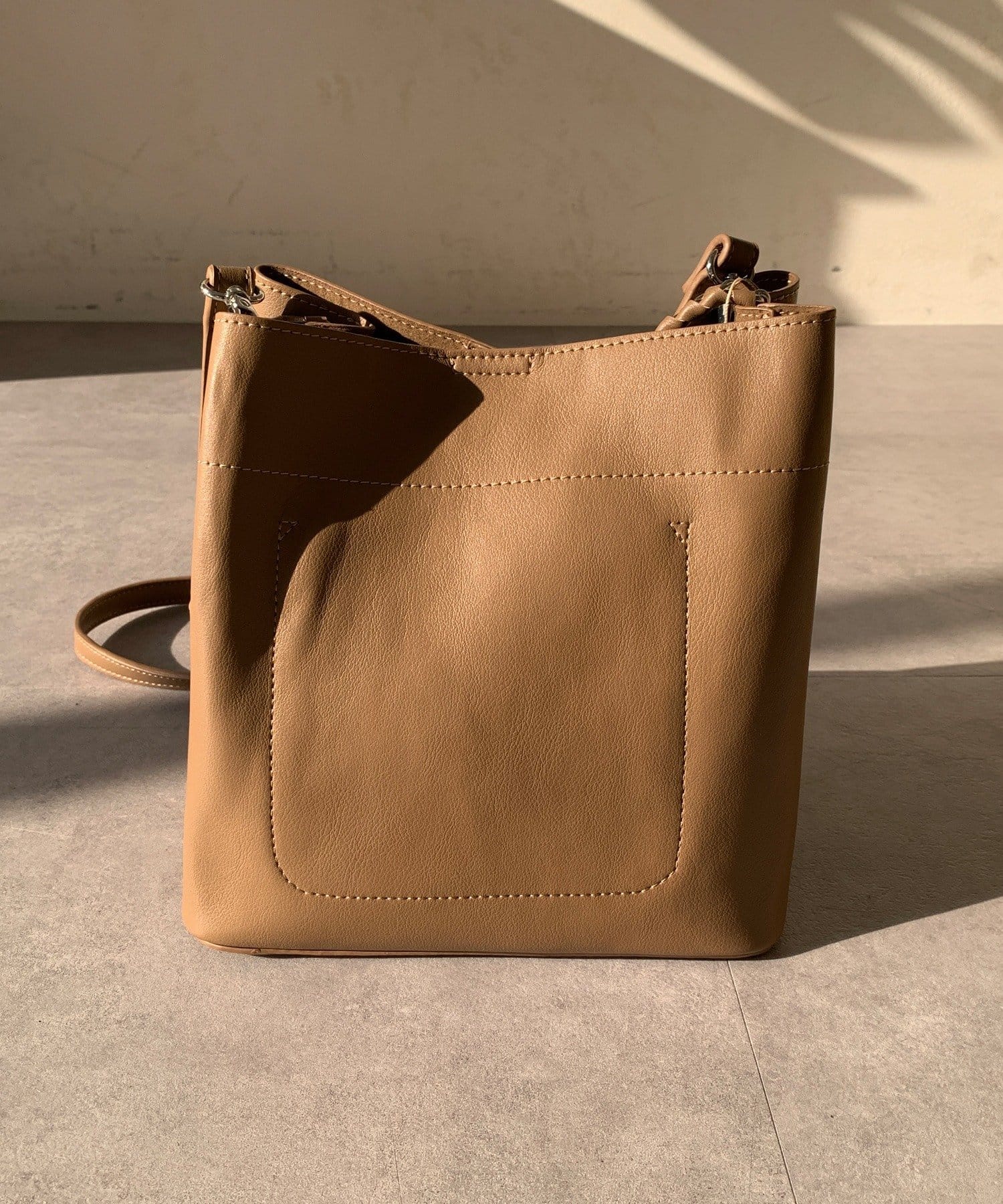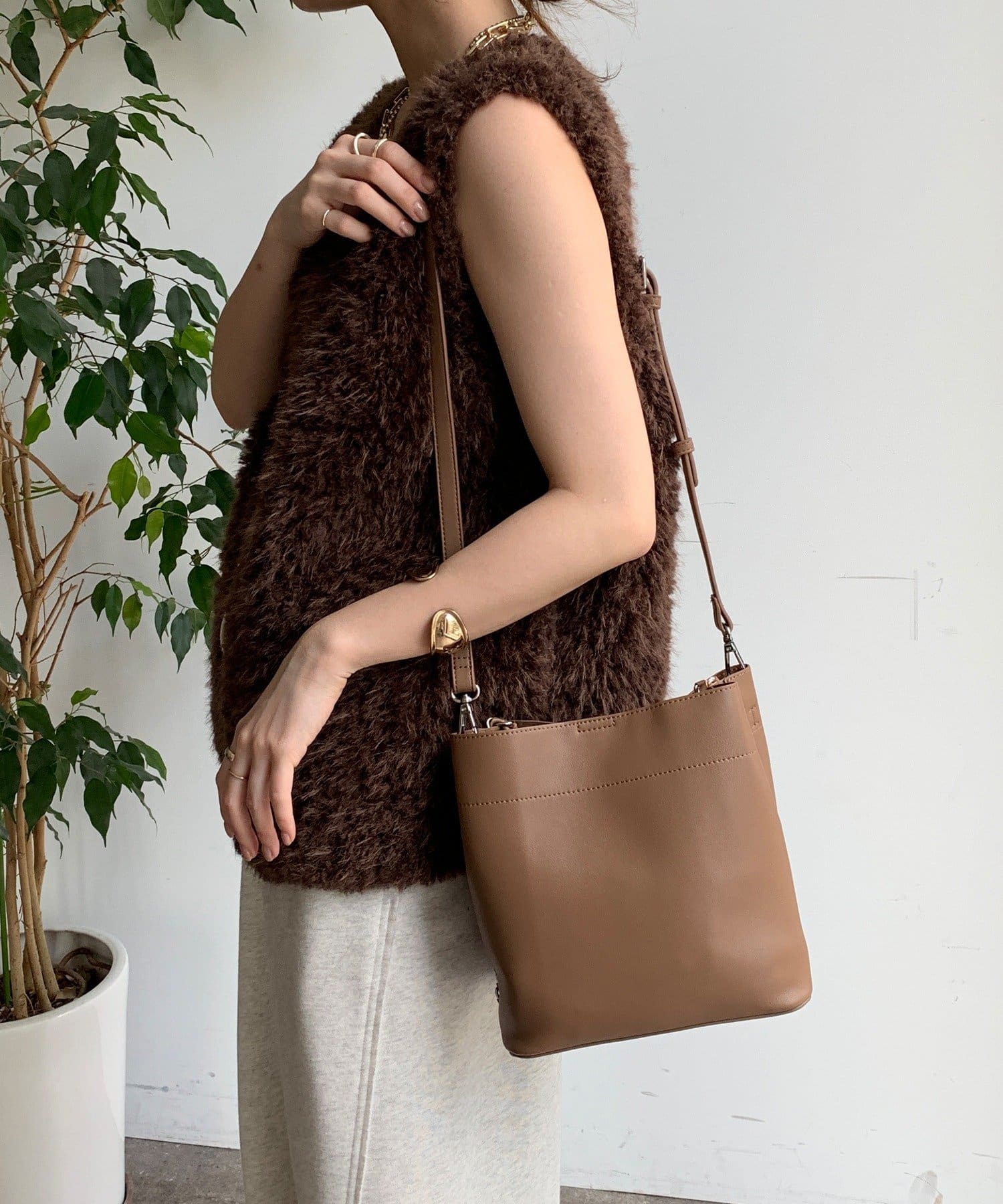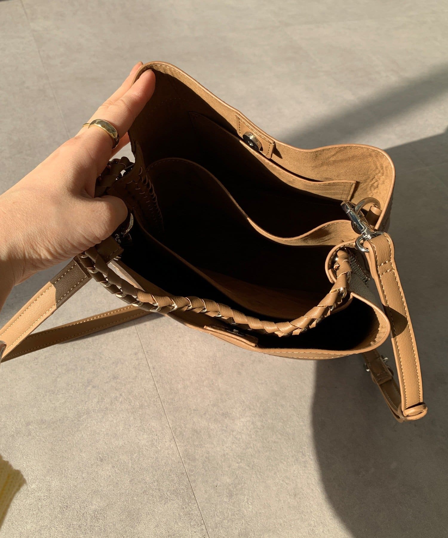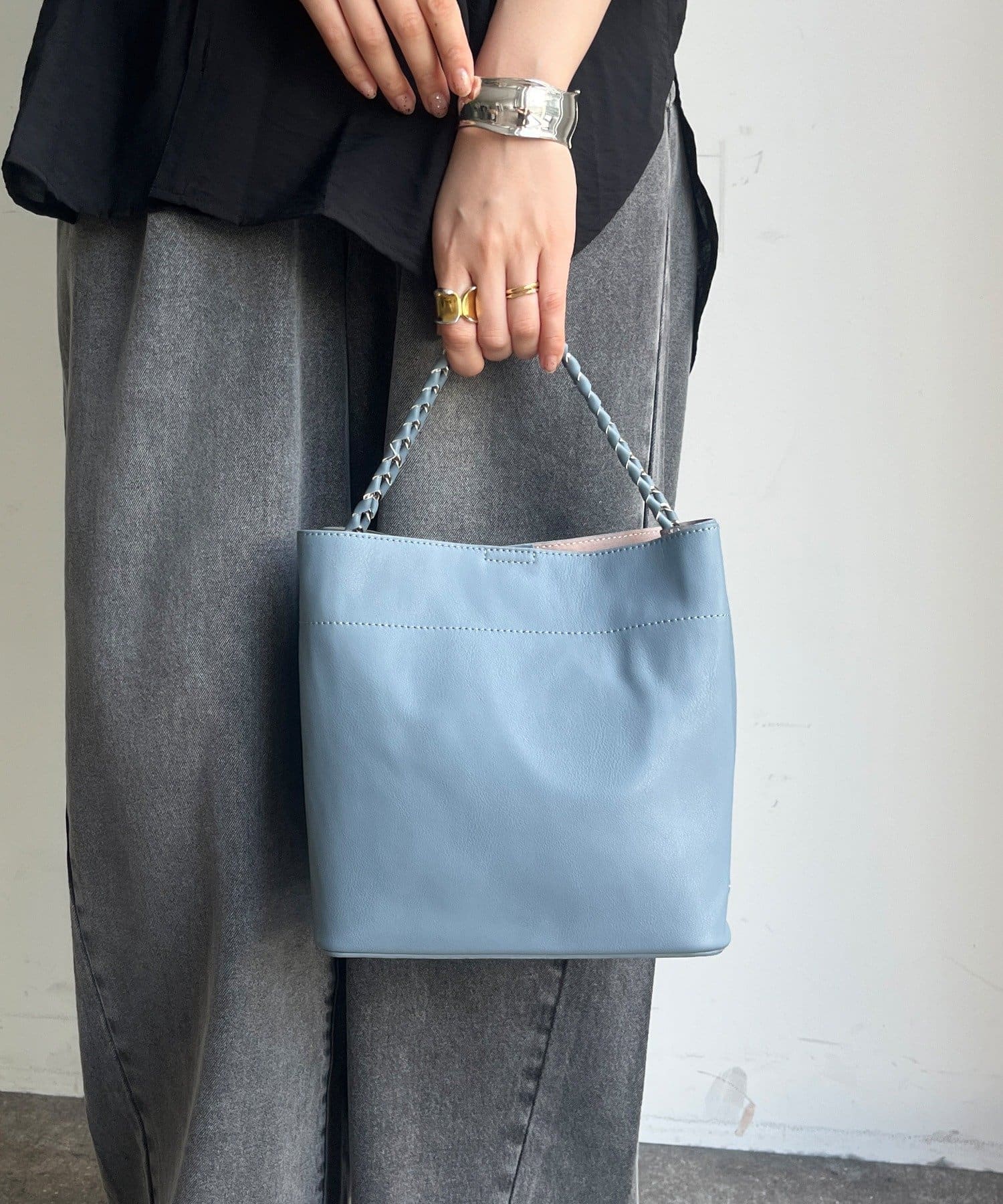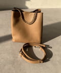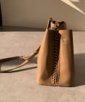 サイドのかがりチェーンがデザインポイントの2wayトートバッグ。