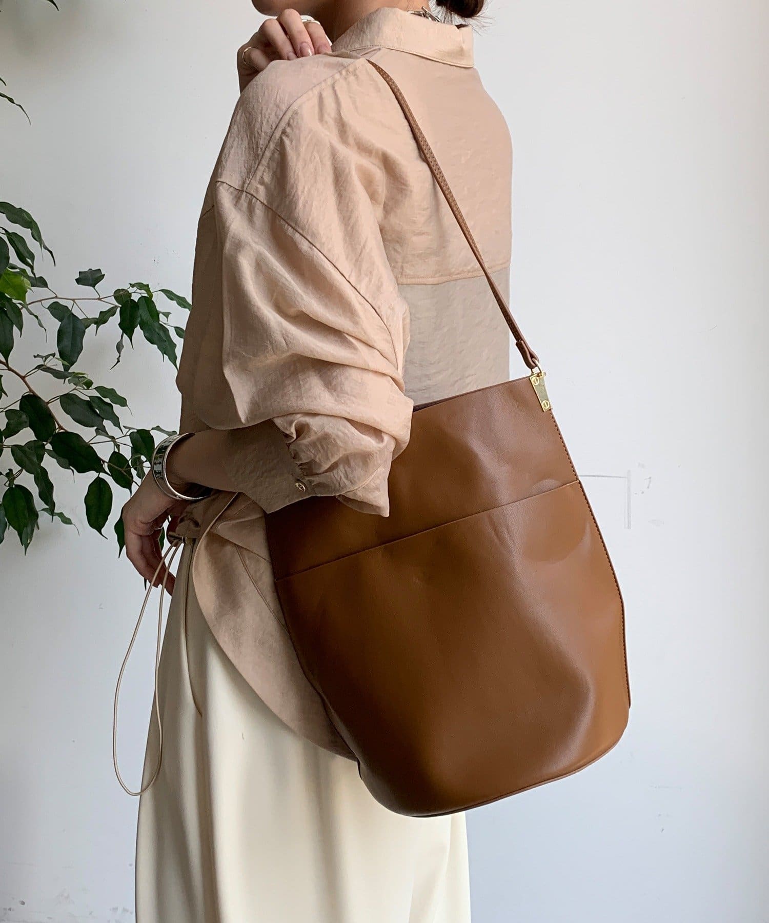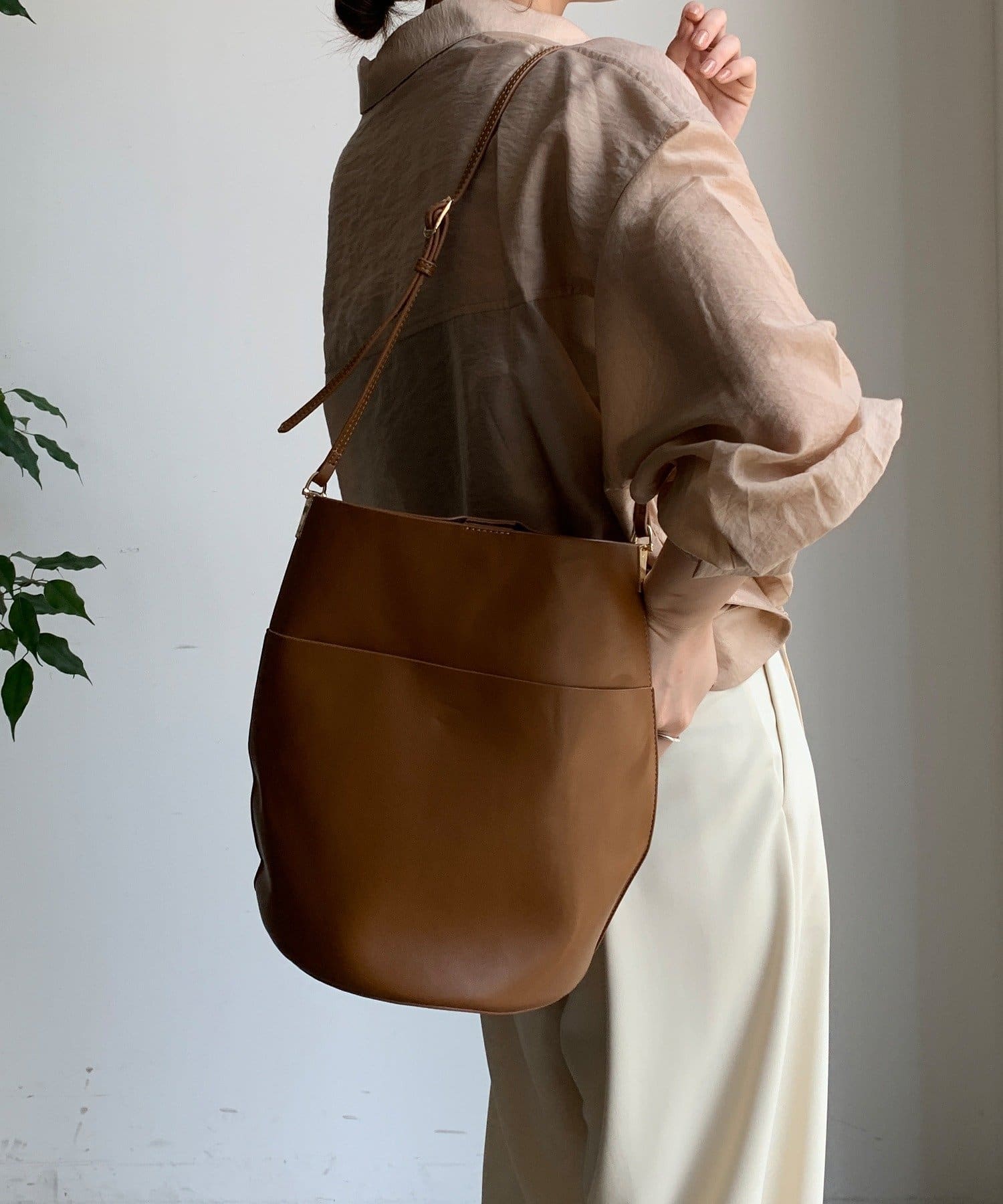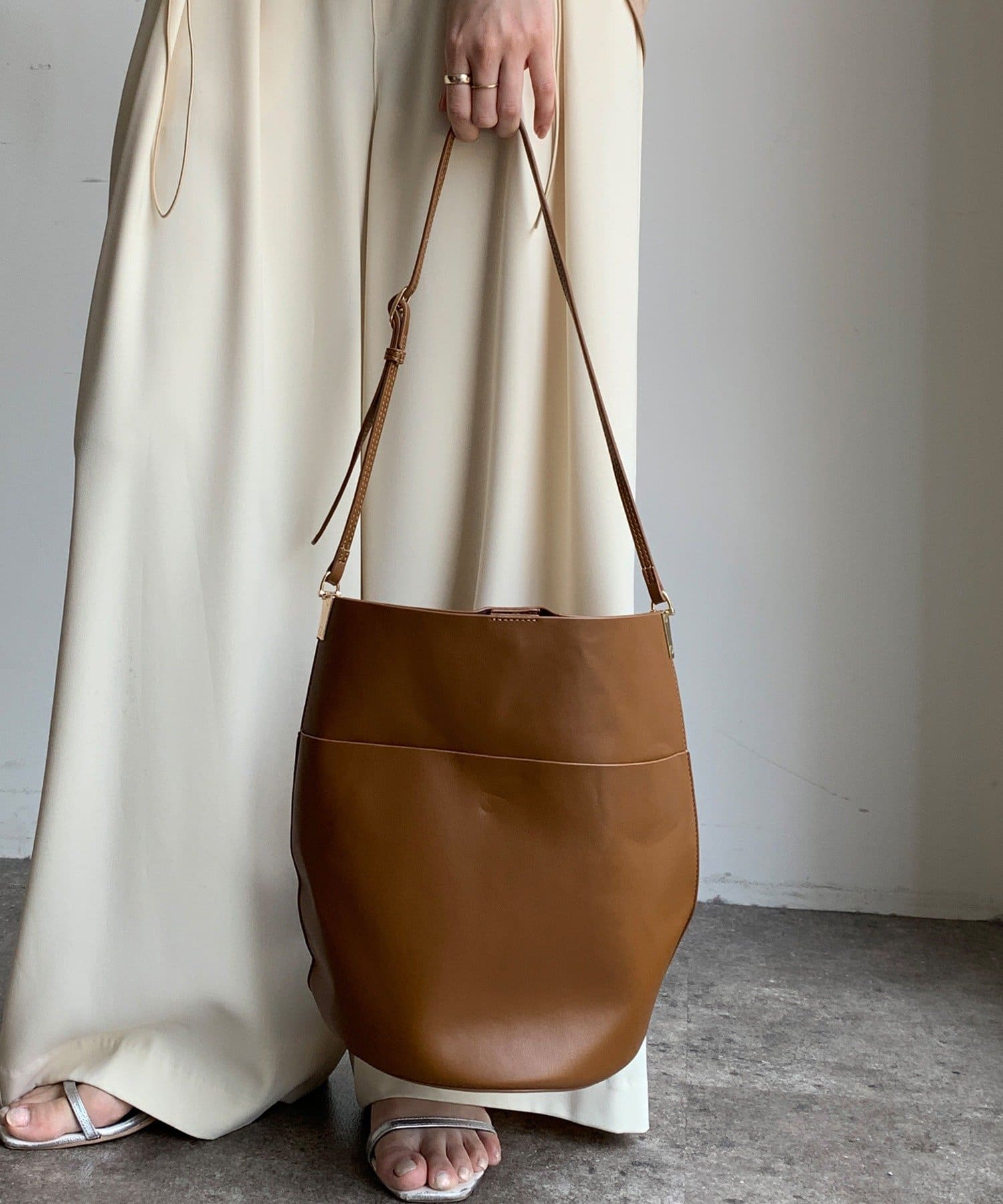 丸みのあるフォルムで、見た目以上の収納力。長財布・ポーチ・スマホなどもすっきり入ります。