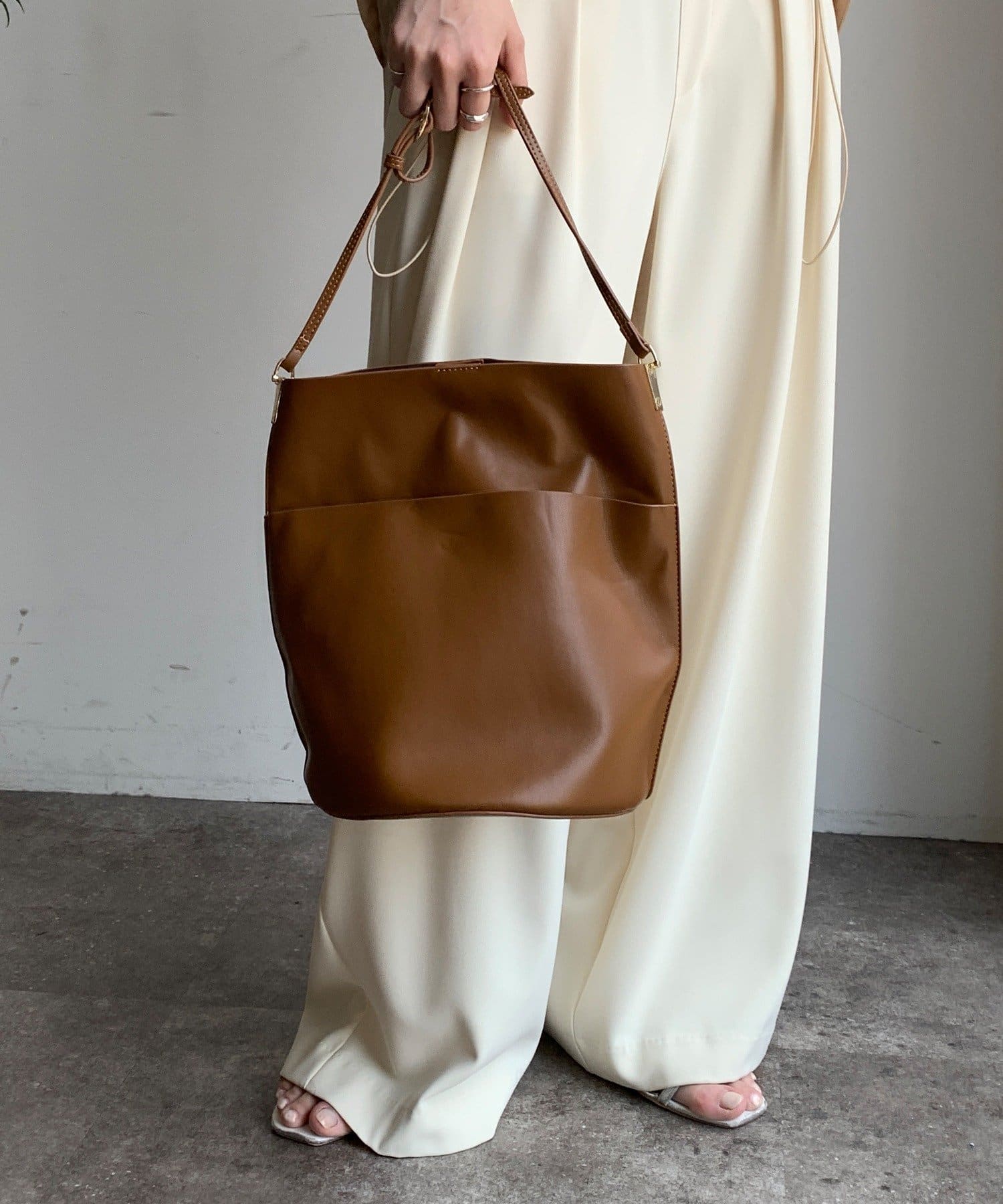 置いた時に形が崩れず、自立するのも嬉しいポイント。バッグの中身も取り出しやすいです。