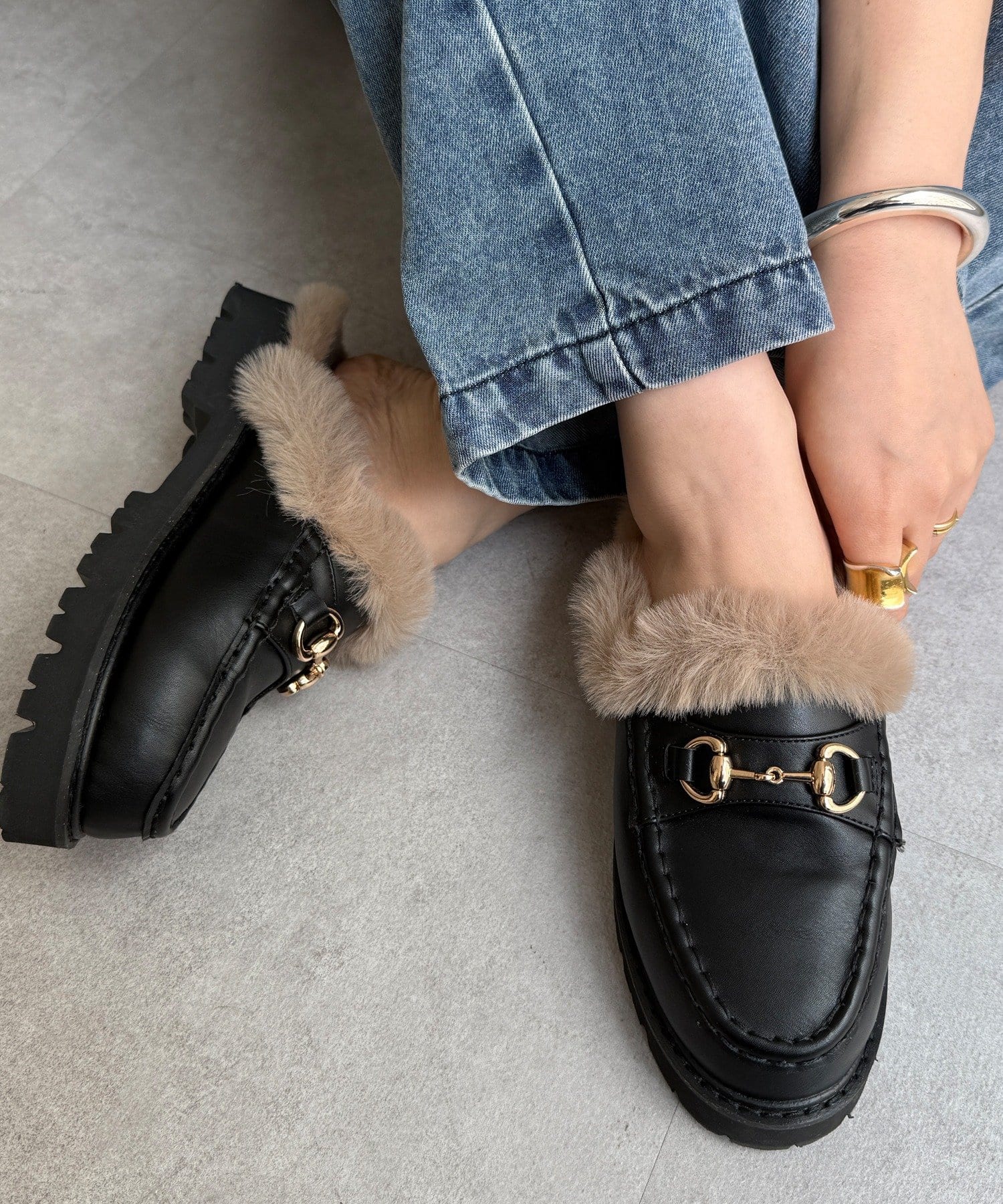 今季らしいファーのデザインが足元にポイントを添えてくれる一品。