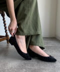トレンドのベロア調素材やドット柄は足元から取り入れると一気に旬顔に◎
