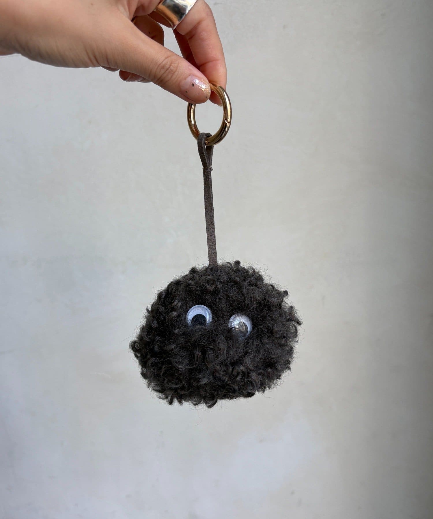 ふわふわのファーにちょこんとついた、つぶらな瞳がポイント。